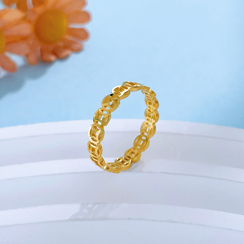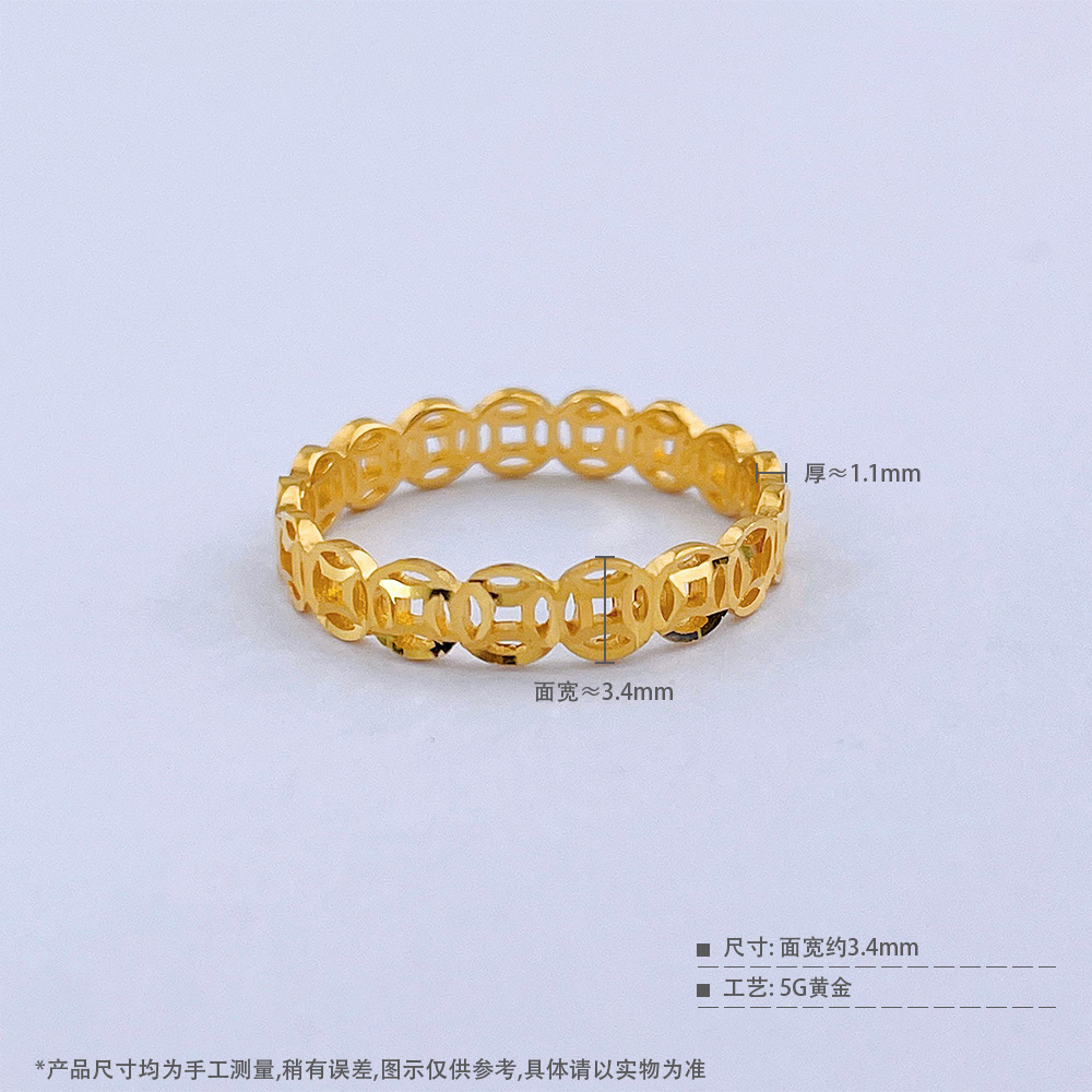 【限时克减150元】足金999 #招财进宝 5G黄金镂空国潮古风铜钱造型戒财源滚滚招财金币戒指圈戒(面宽约3.2-3.6mm)(AG5GJZ00330)预售产品下单后不退款不退货不换货不补差价