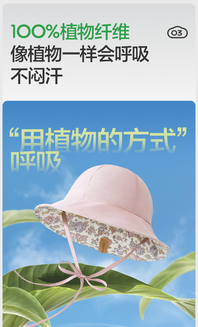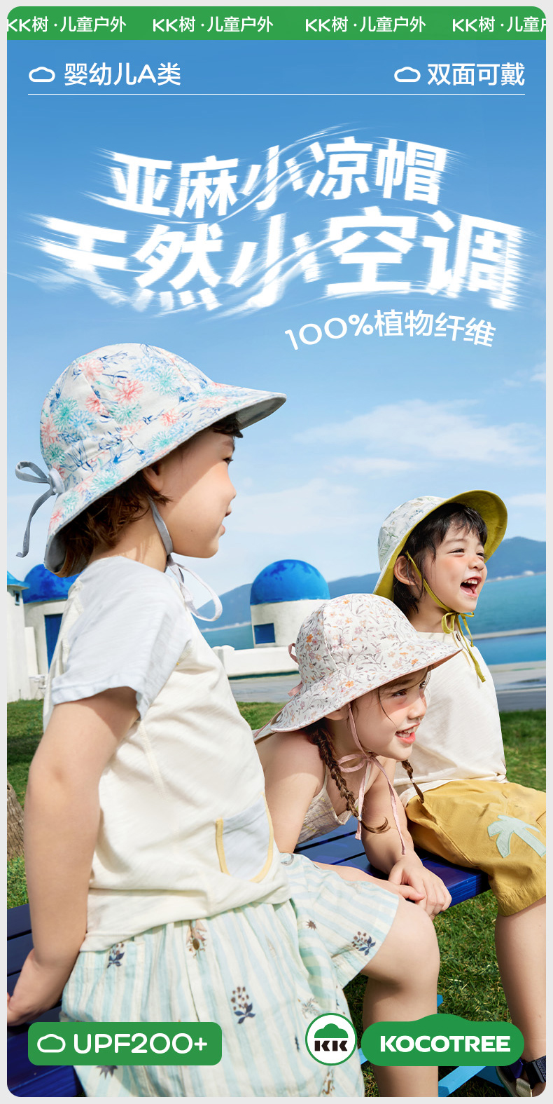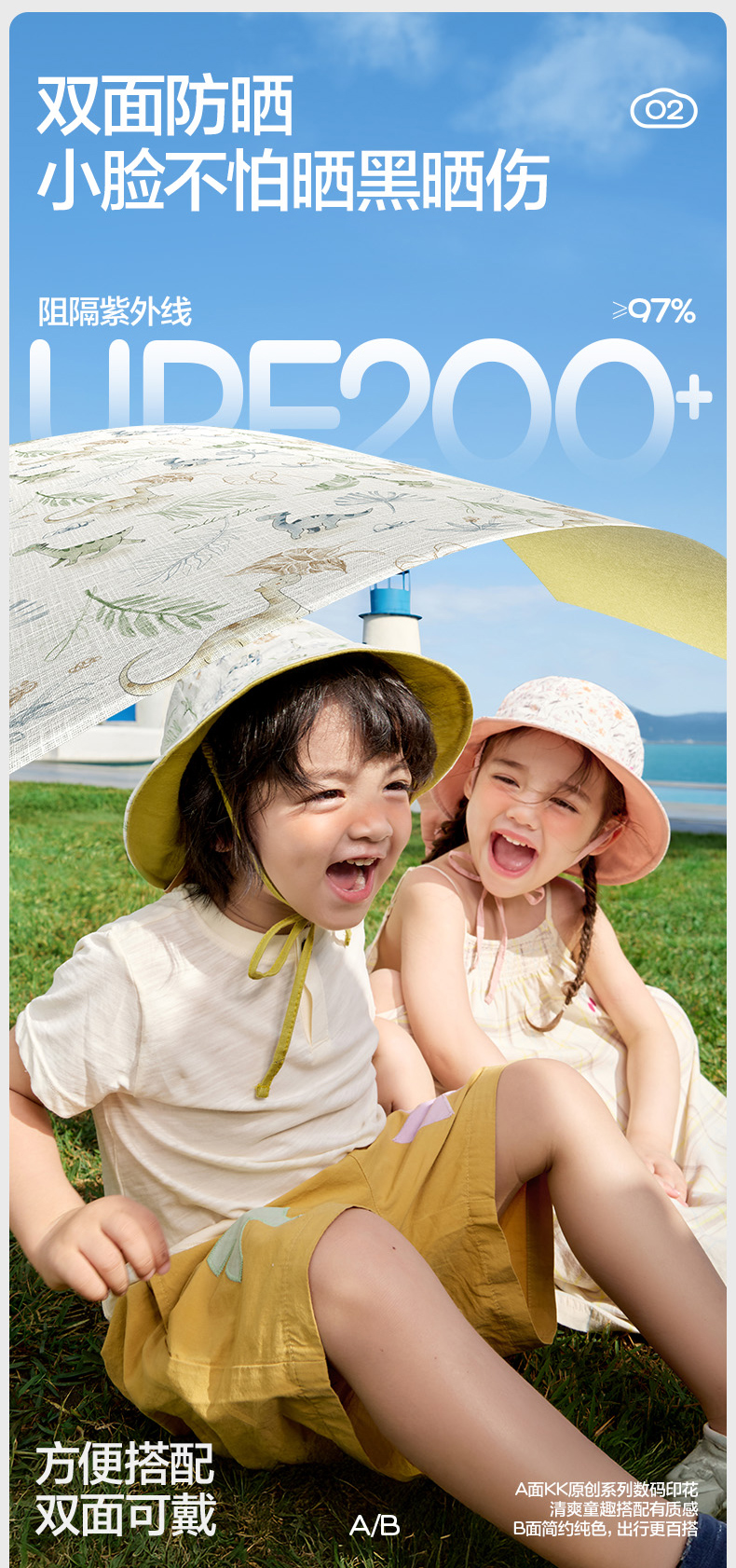 【云优选】KK树宝宝防晒帽双面可戴防紫外线渔夫盆帽婴儿亚麻超轻薄遮阳帽亚麻小凉帽