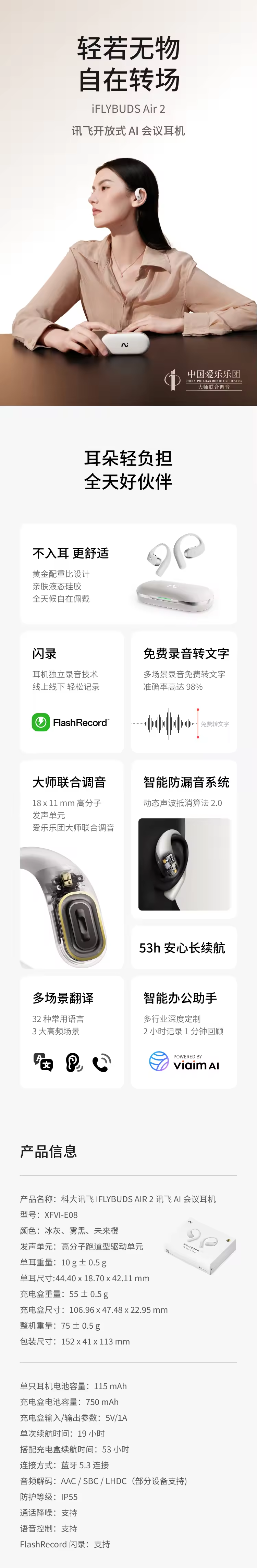 IFLYTEK科大讯飞 IFLYBUDS AIR 2 讯飞 AI 会议耳机