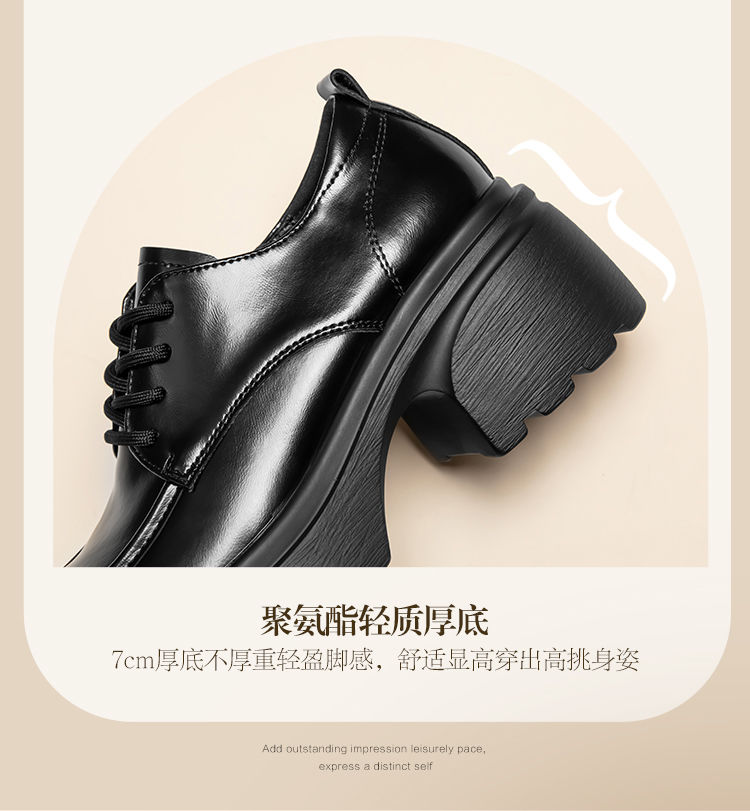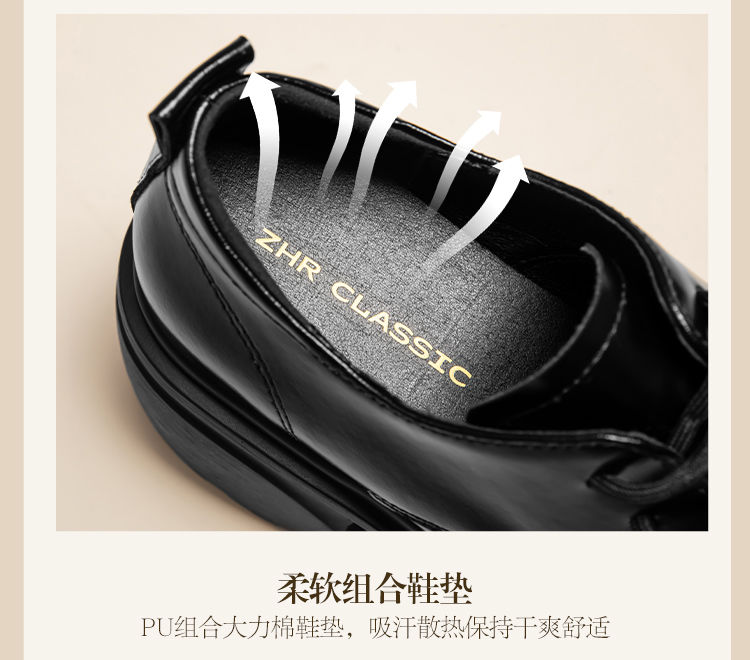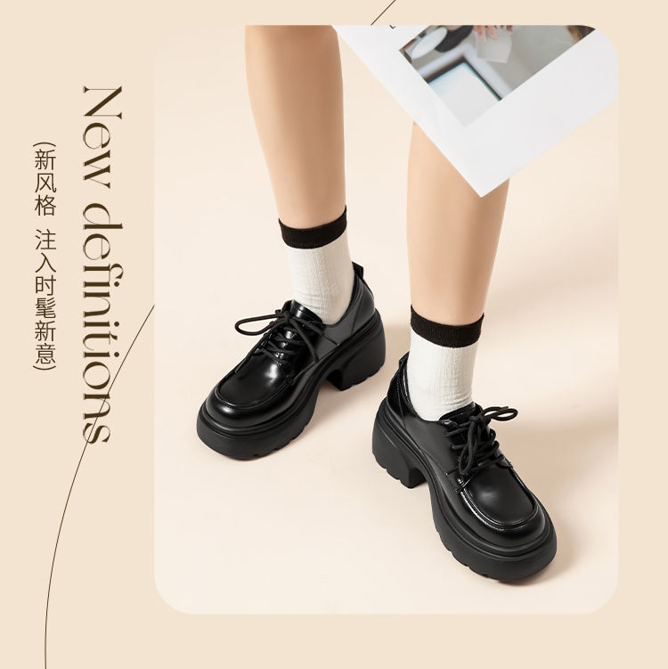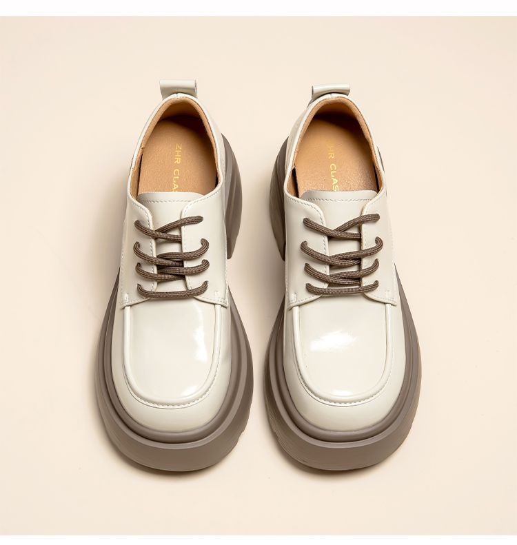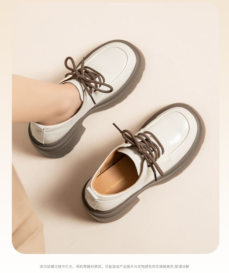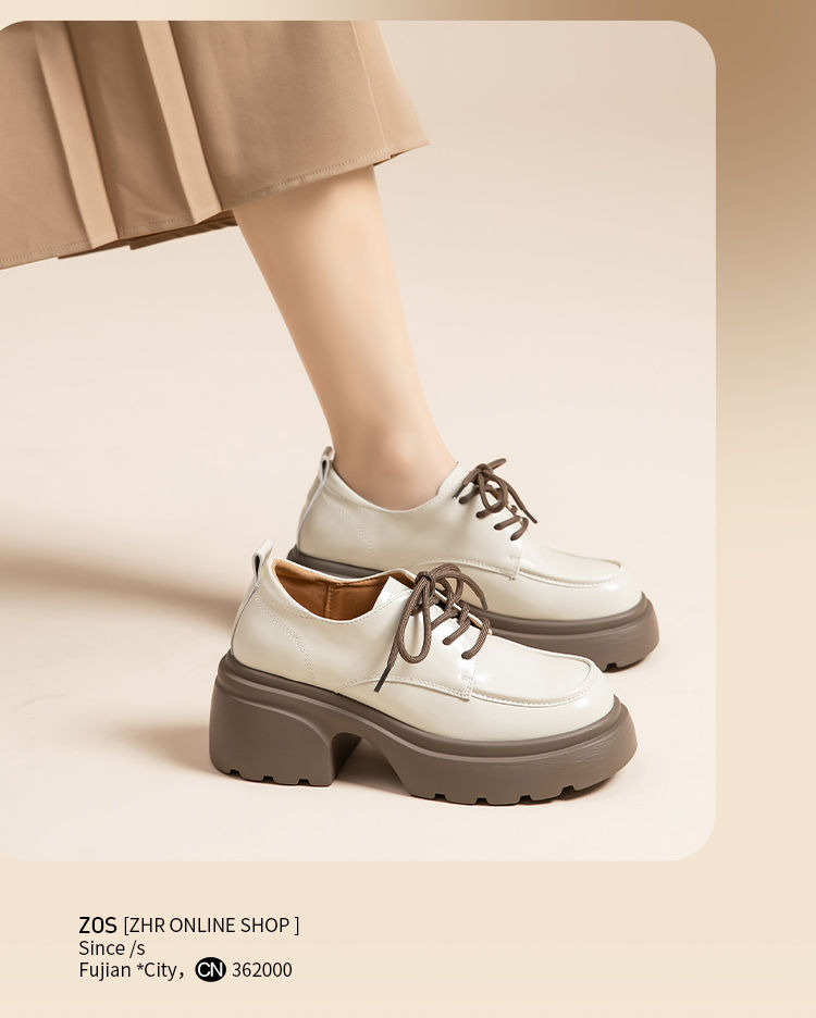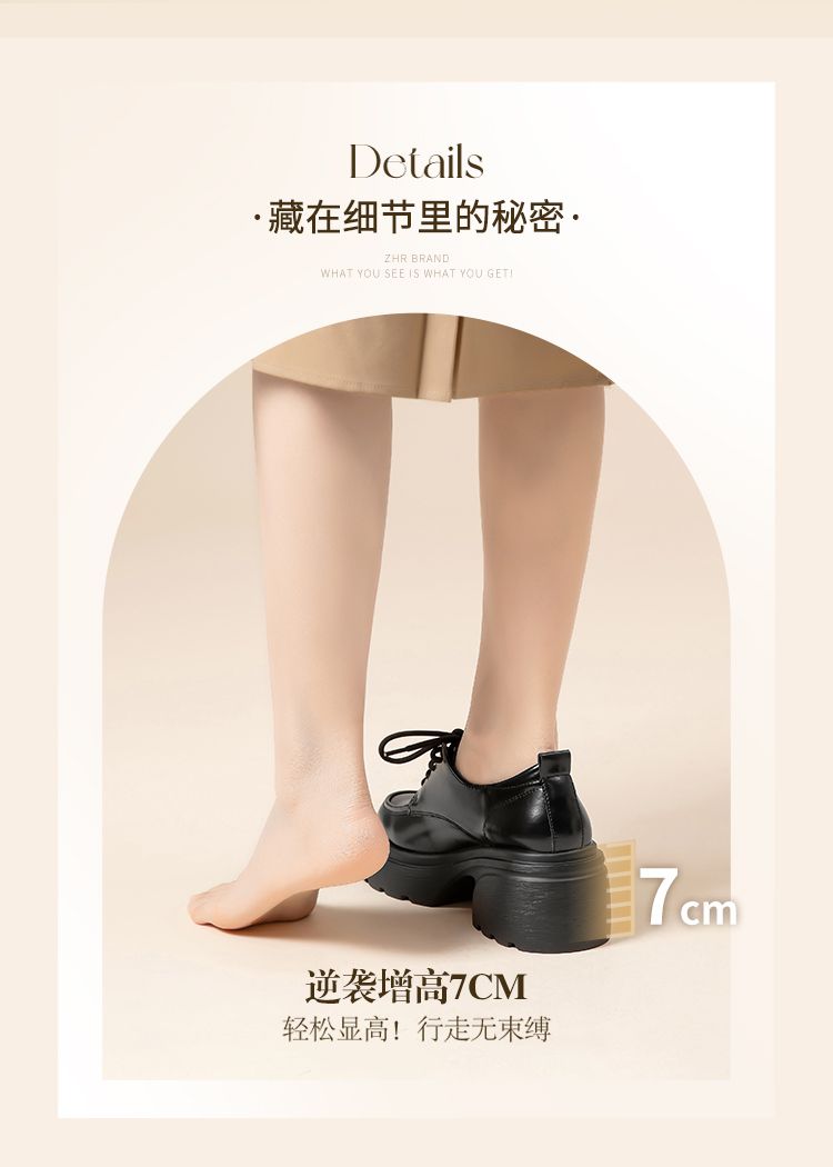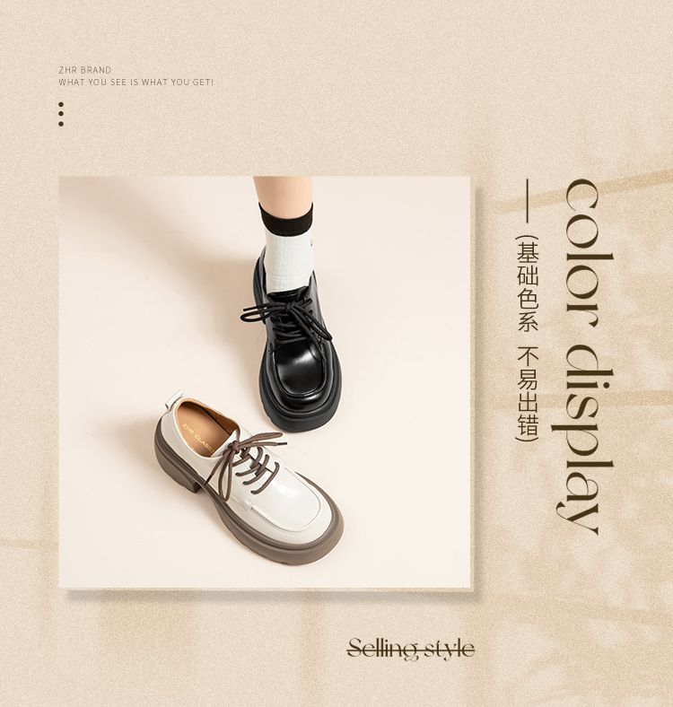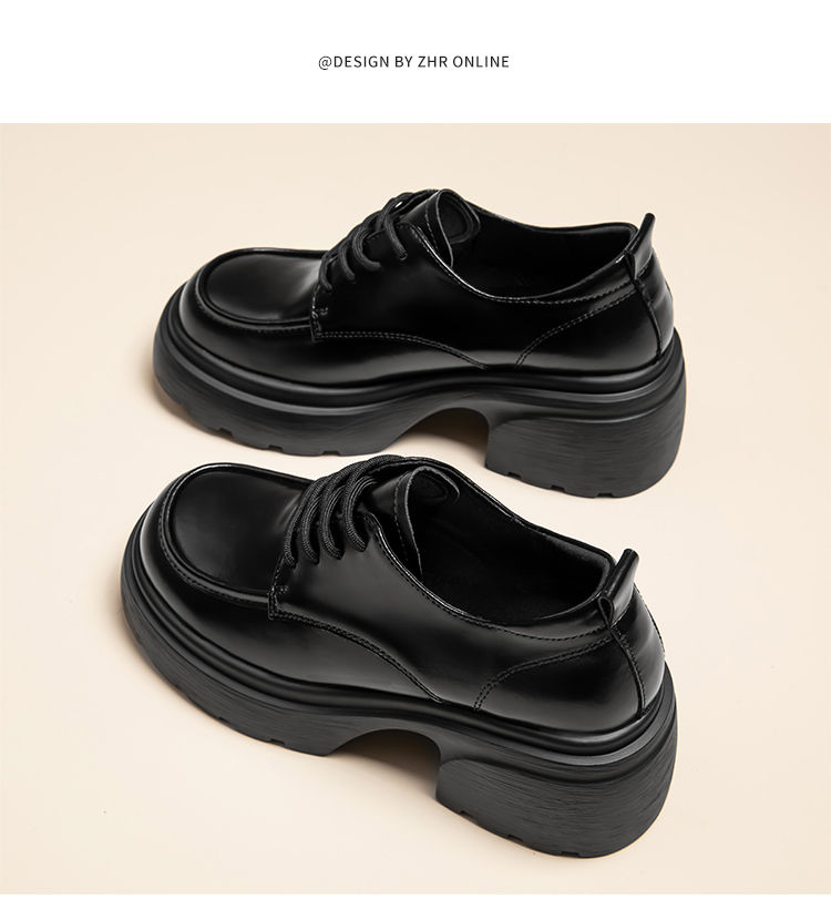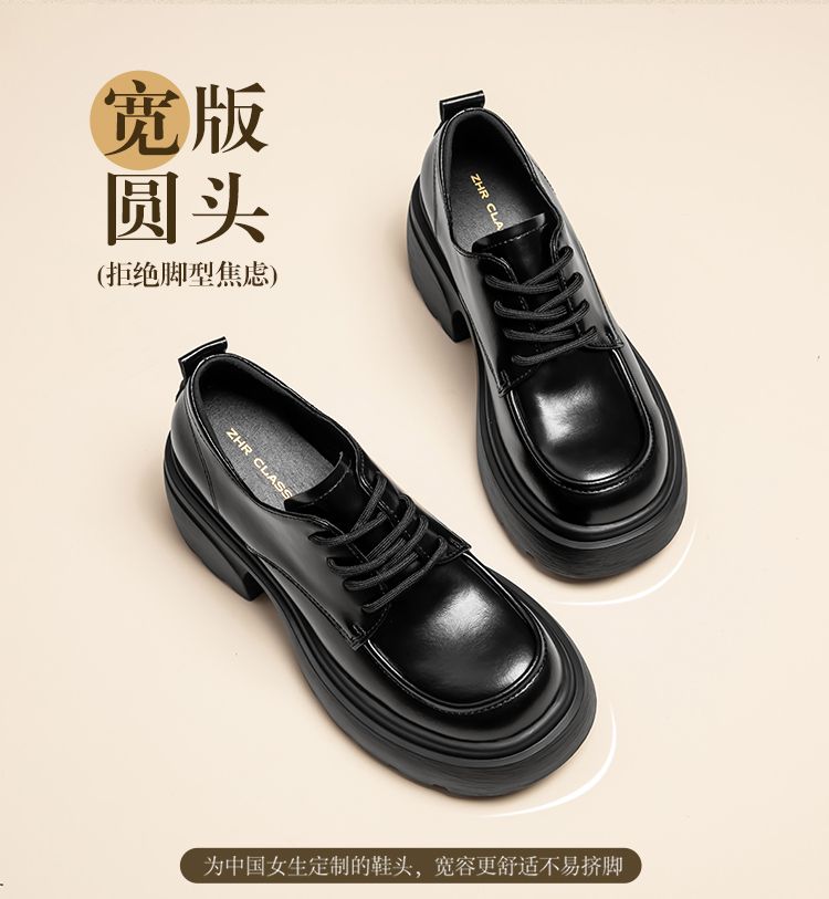 ZHR英伦单鞋女2024新款松糕复古厚底显高皮鞋百搭系带通勤乐福鞋