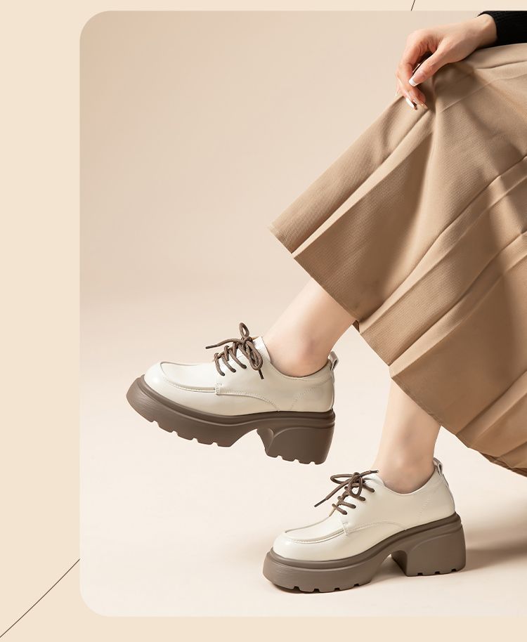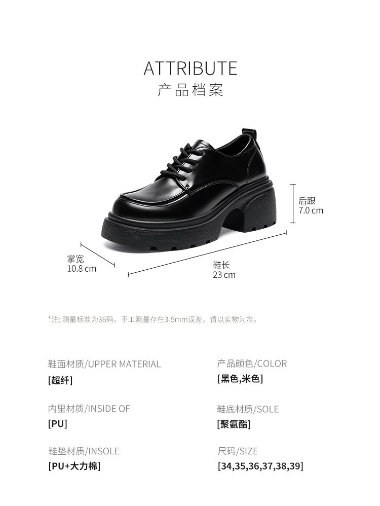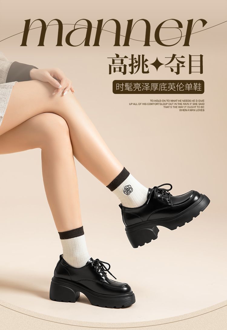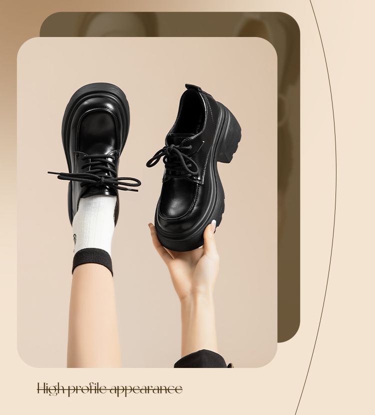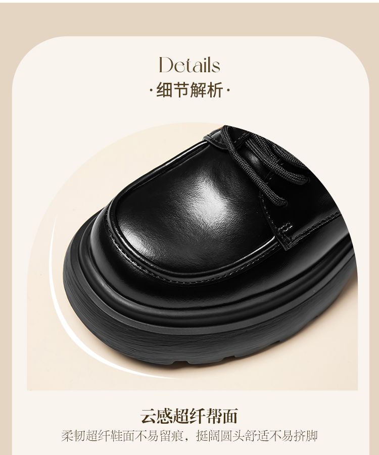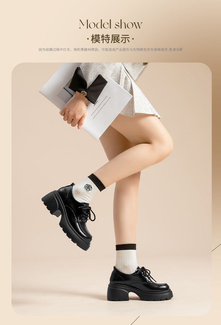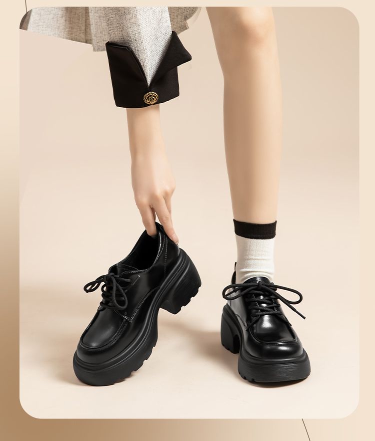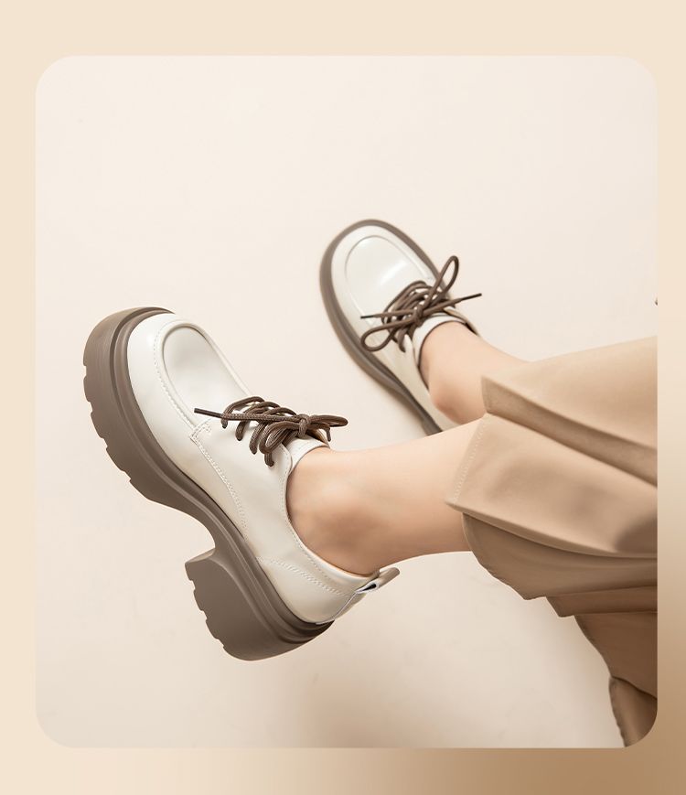 ZHR英伦单鞋女2024新款松糕复古厚底显高皮鞋百搭系带通勤乐福鞋