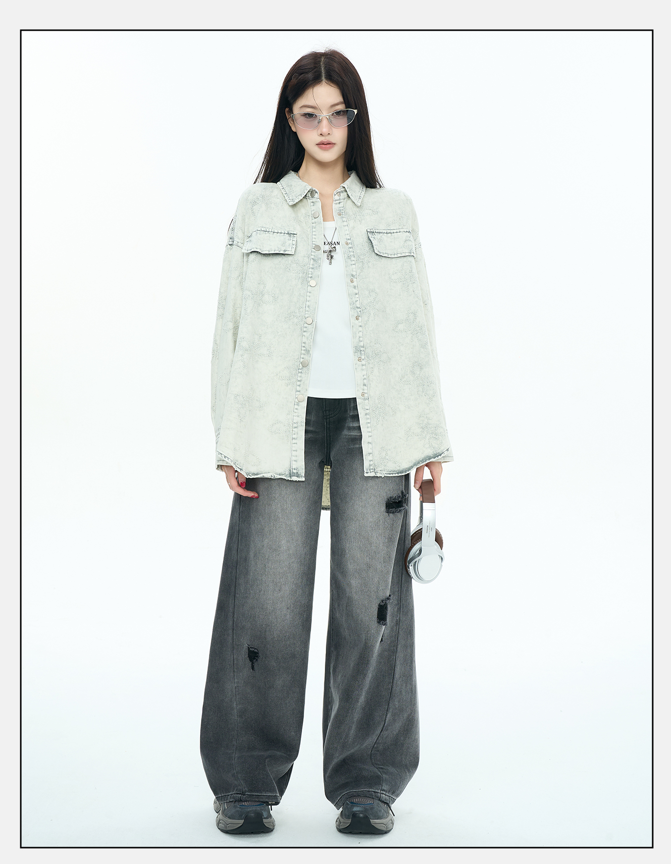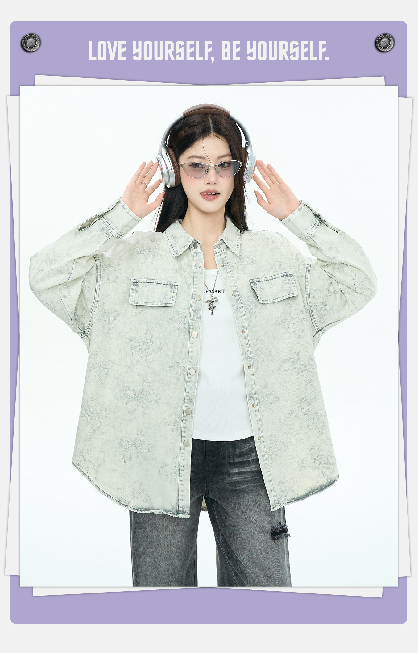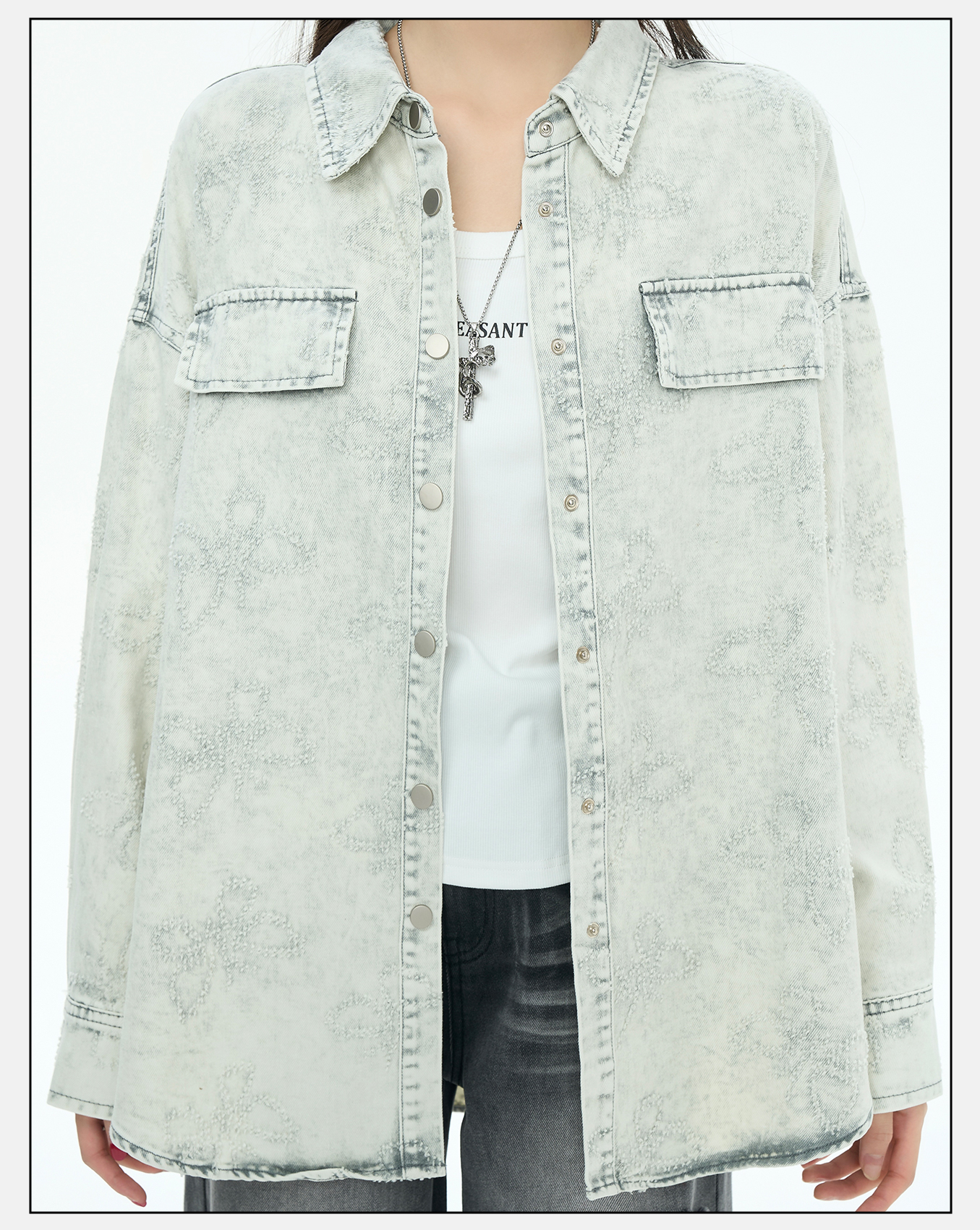 P&X设计师女装2025秋季复古潮流牛仔短款衬衫 825305263 浅灰