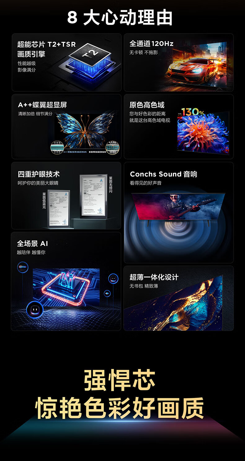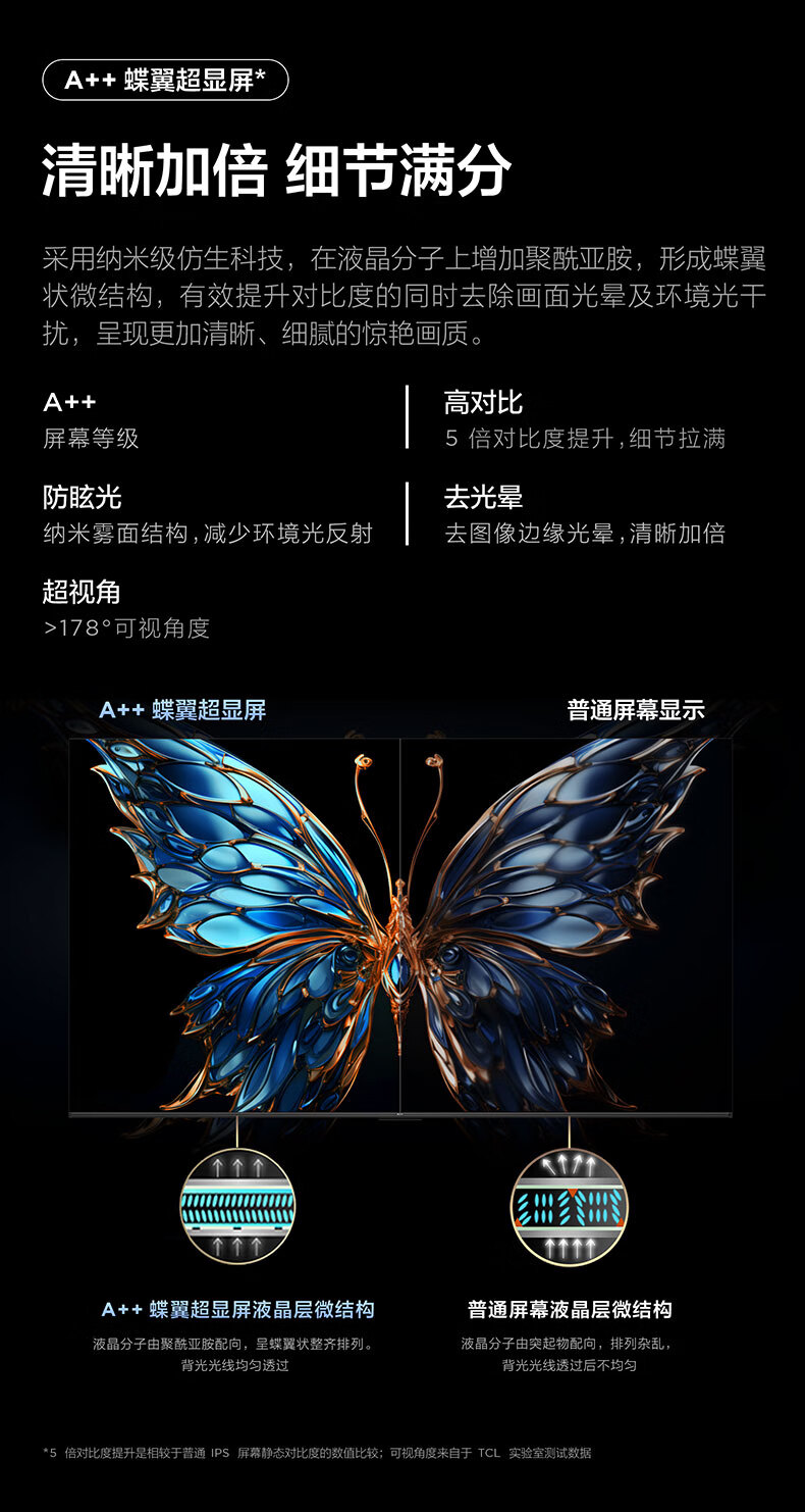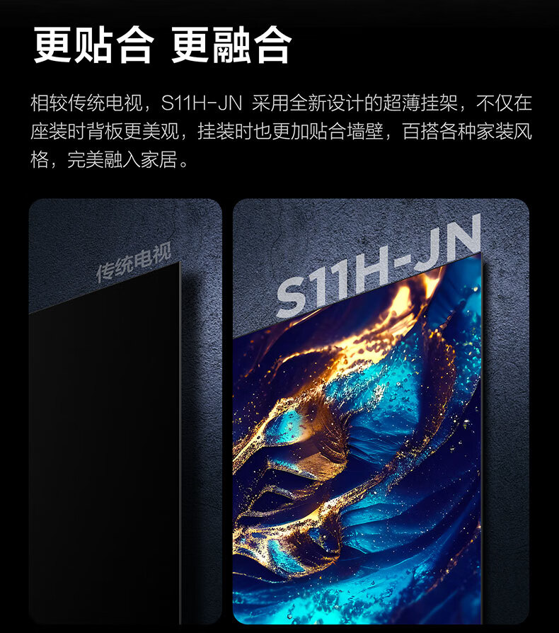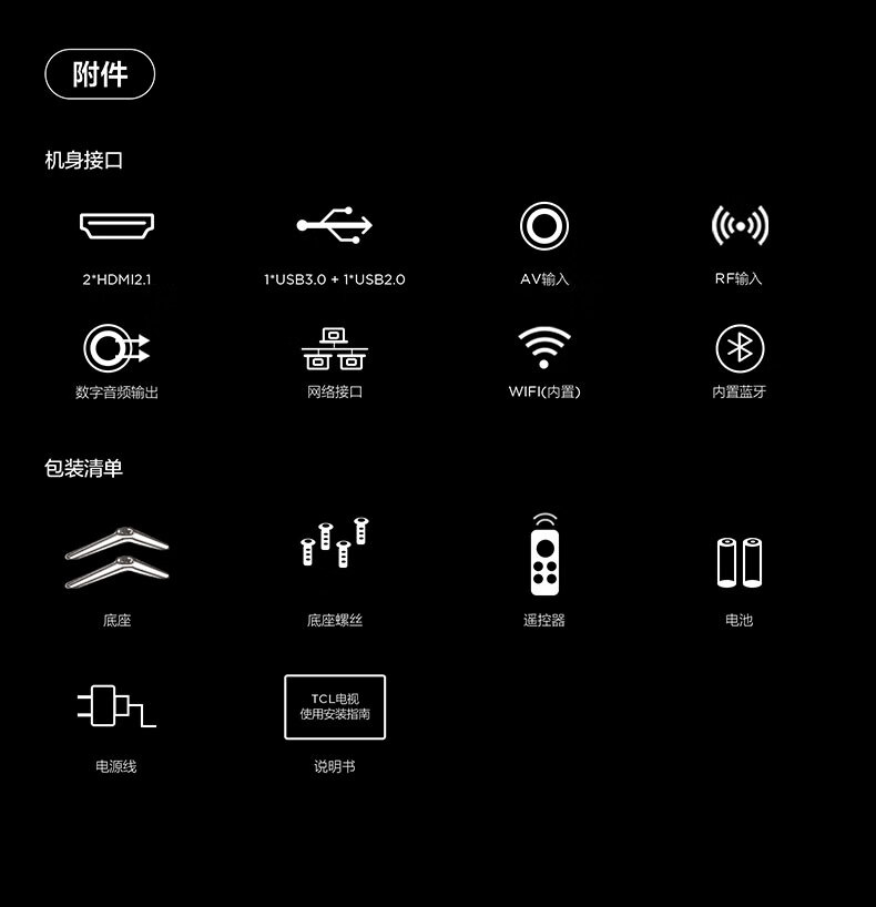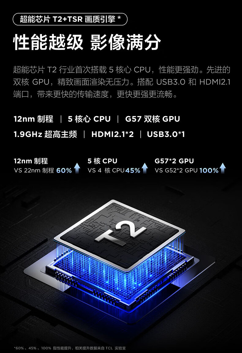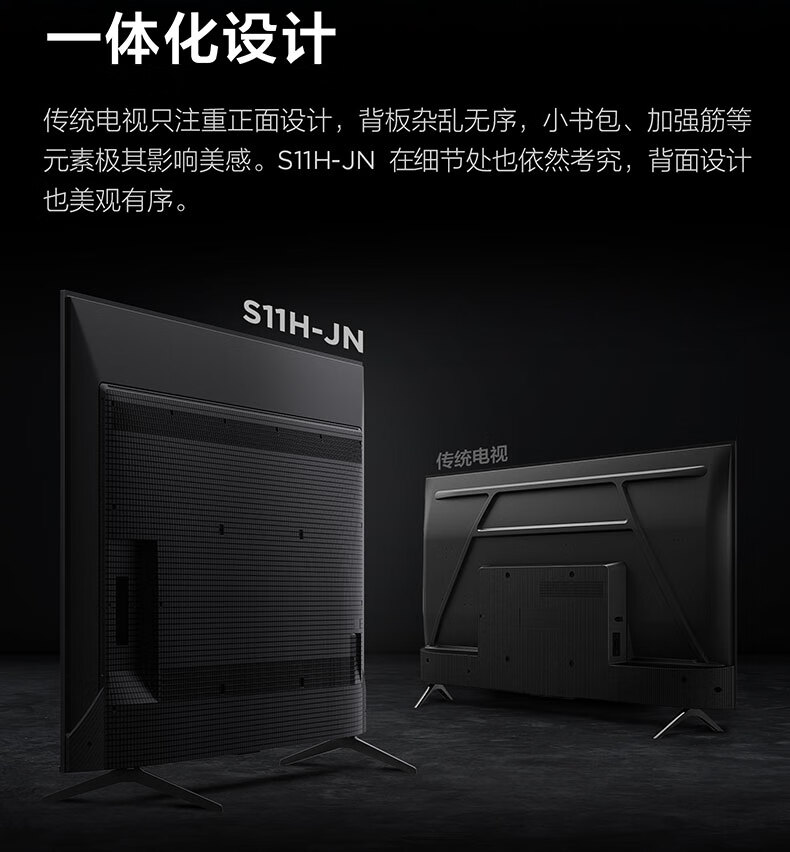 TCL电视_S11H-JN_超能芯片T2_超薄一体化设计_全通道120Hz_A蝶翼超显屏_原色高色域_超薄疾速电视_75英寸_官方标配