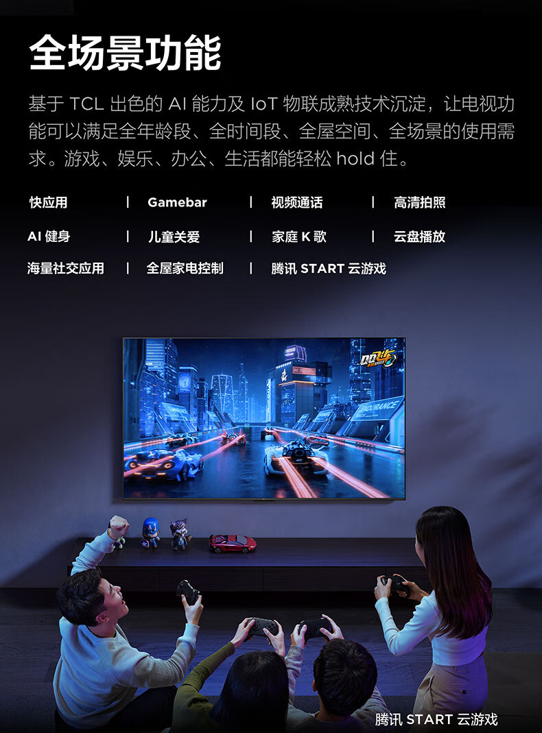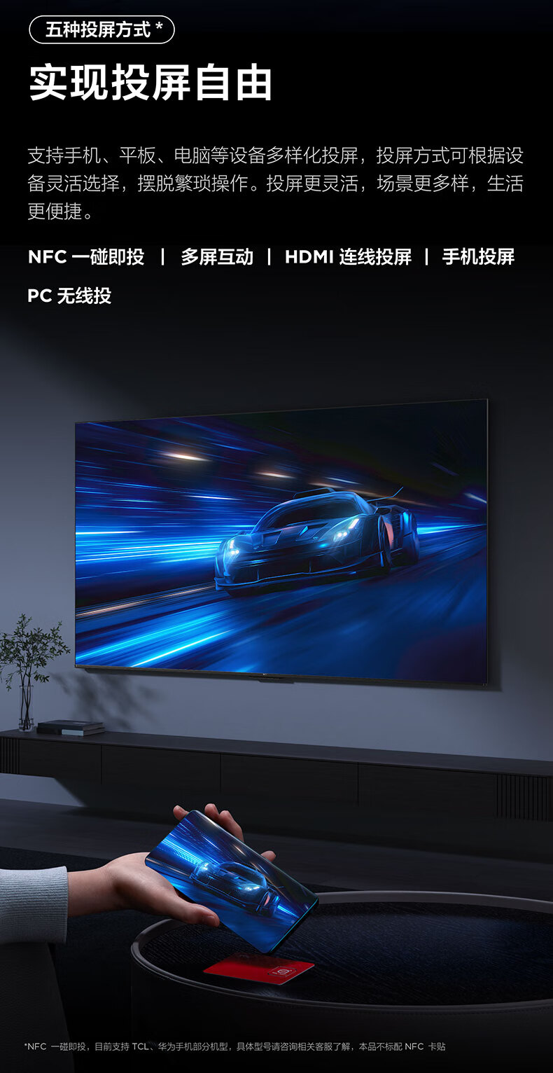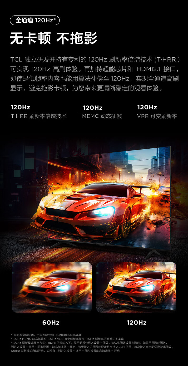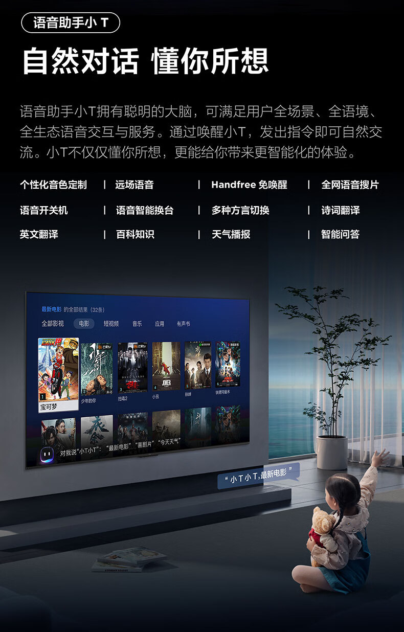 TCL电视_S11H-JN_超能芯片T2_超薄一体化设计_全通道120Hz_A蝶翼超显屏_原色高色域_超薄疾速电视_75英寸_官方标配