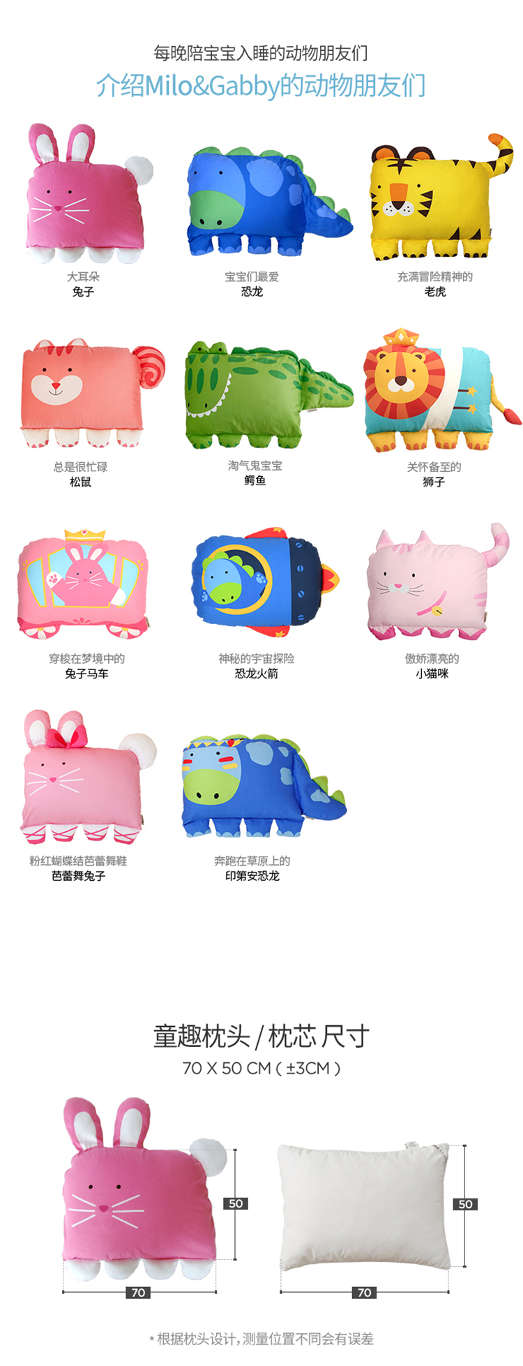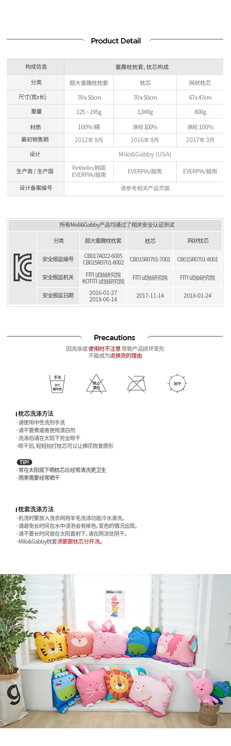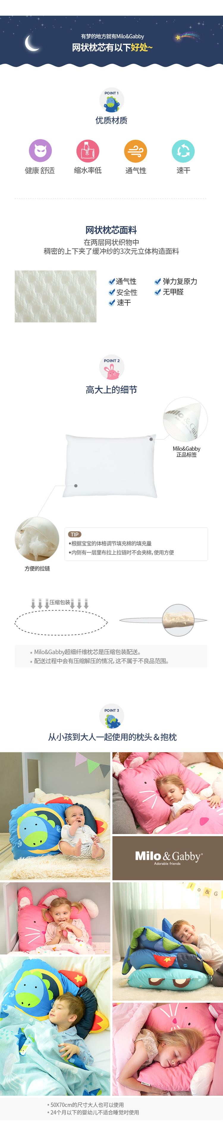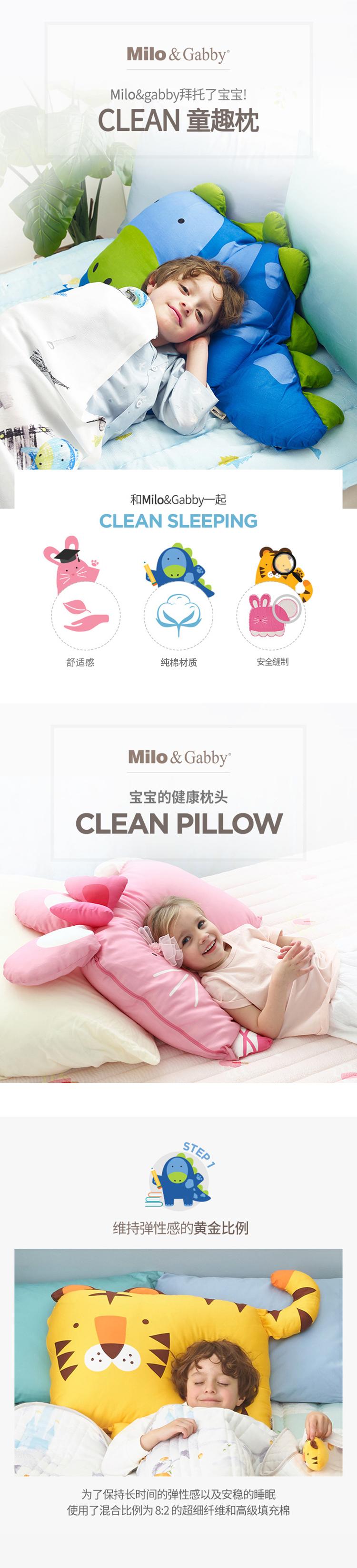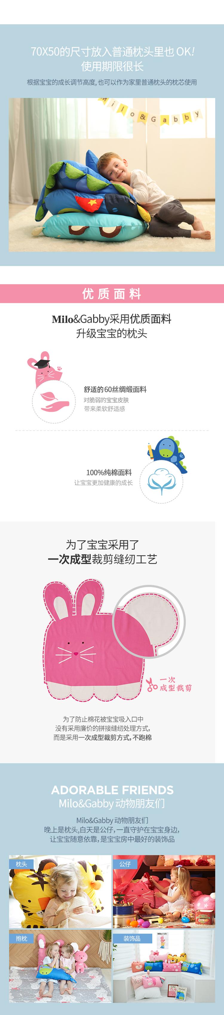 韩国Milo&Gabby3岁童趣枕卡通安抚抱枕枕套枕芯