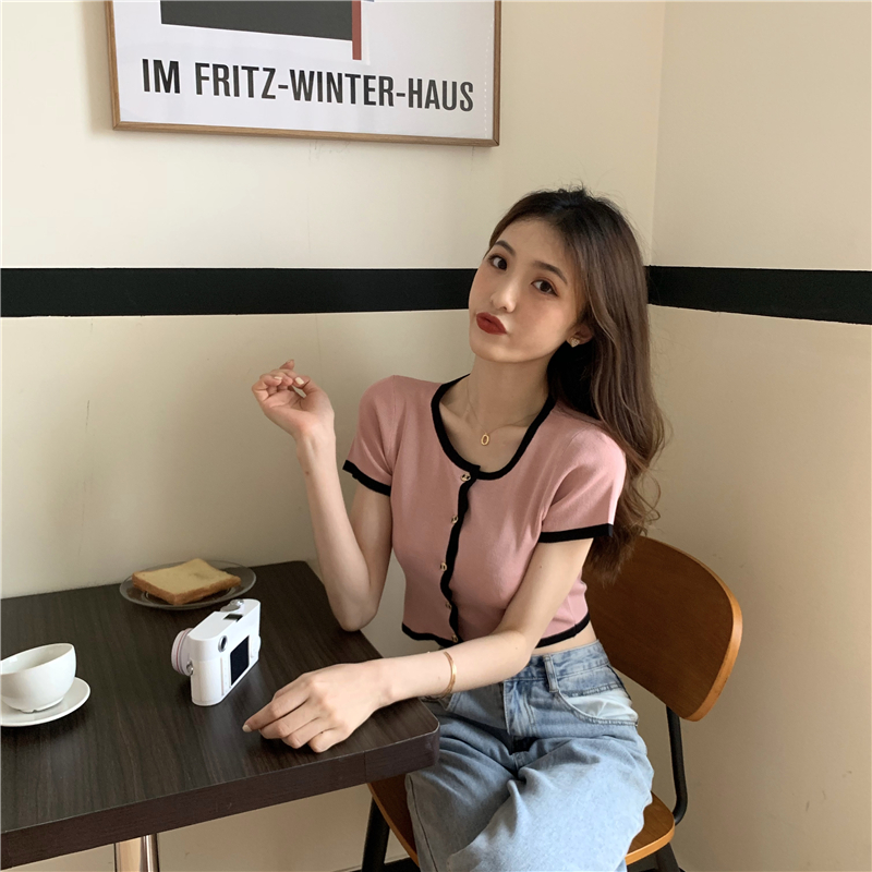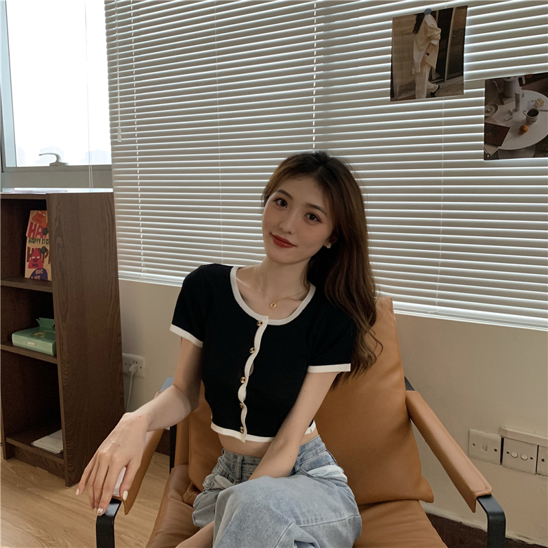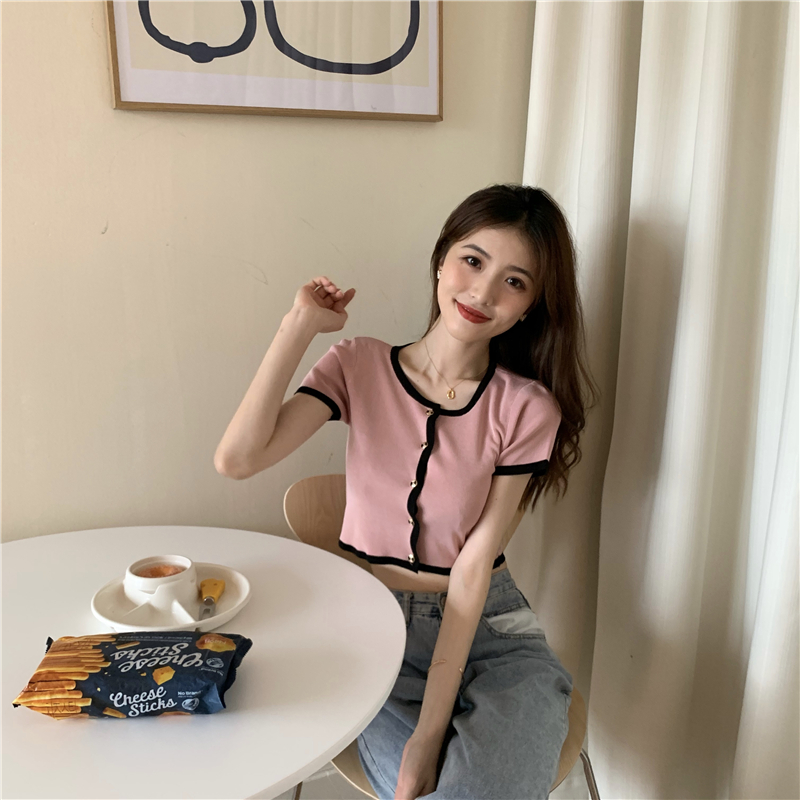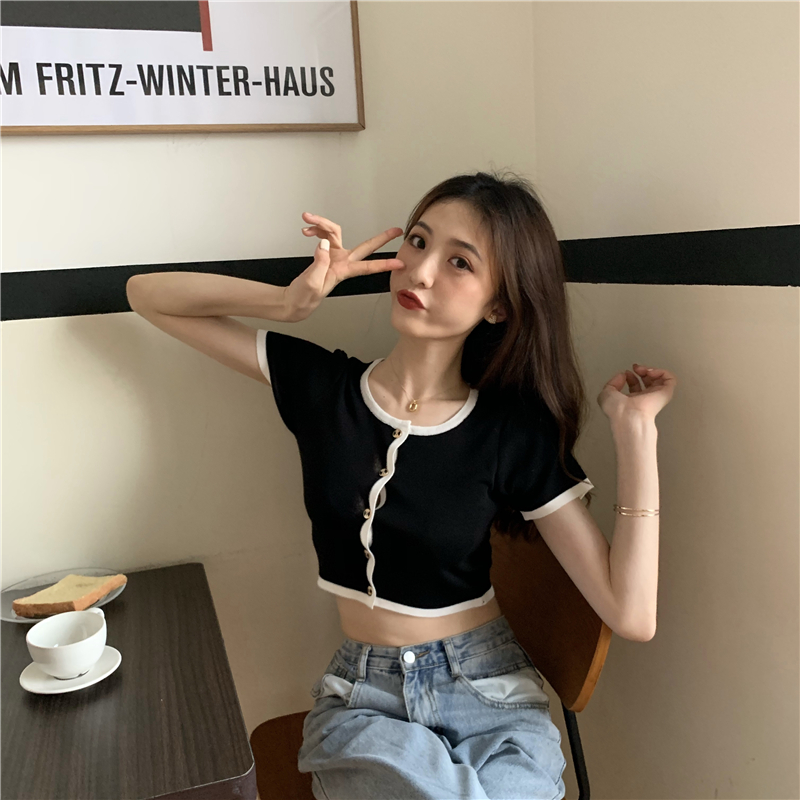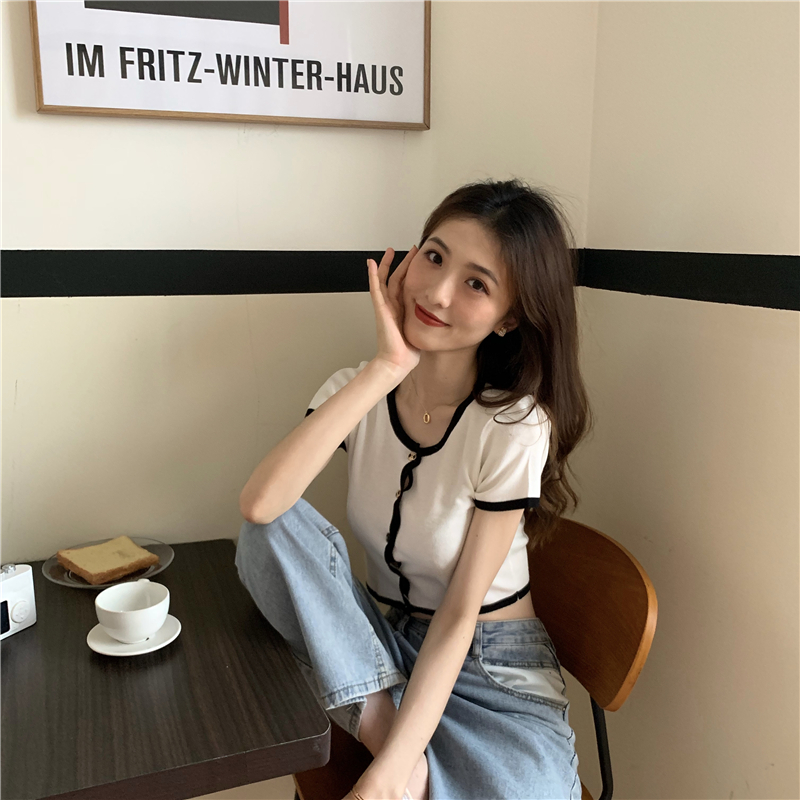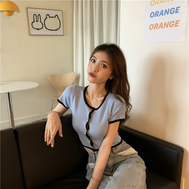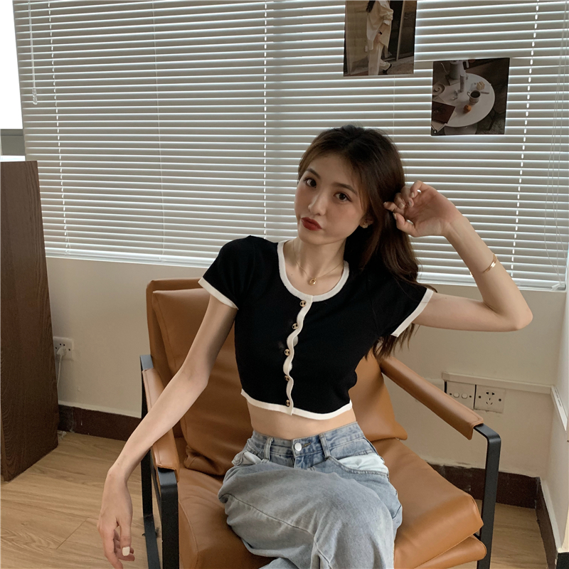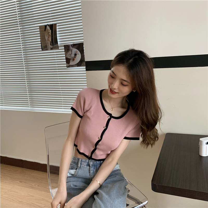 2021夏季新款ins露脐短款冰丝针织修身开衫简约短袖上衣女潮服饰女装出游清凉上衣七夕情人节