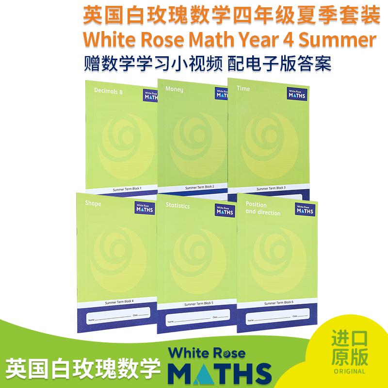 预售 【中商原版】英国白玫瑰数学练习册四年级夏季套装6册 White Rose Math Year 4 Summer Block 1-6 小学小数图形学习英文原版