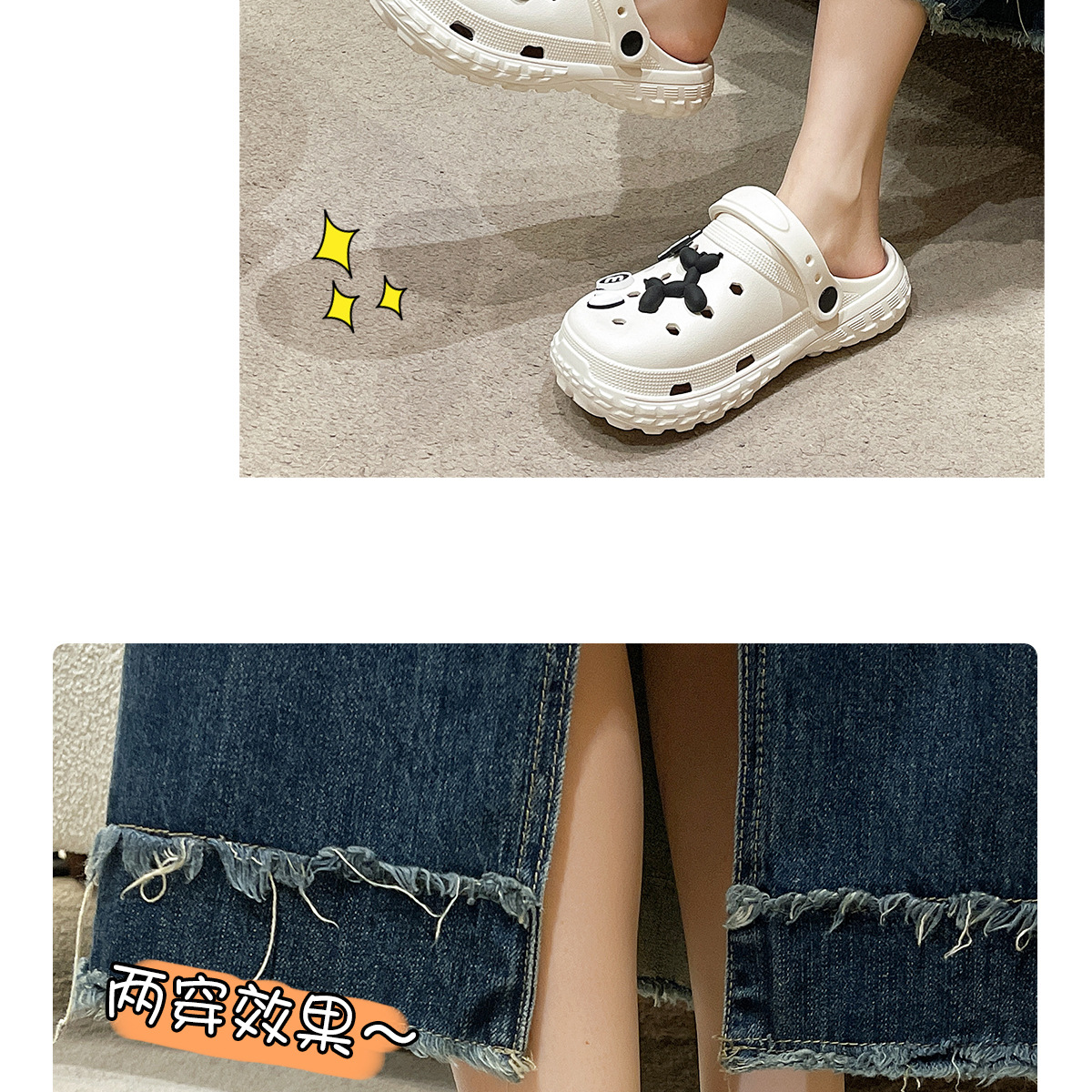 卡通可爱洞洞鞋女款2024新款外穿夏季增高防滑大码情侣凉拖鞋包头