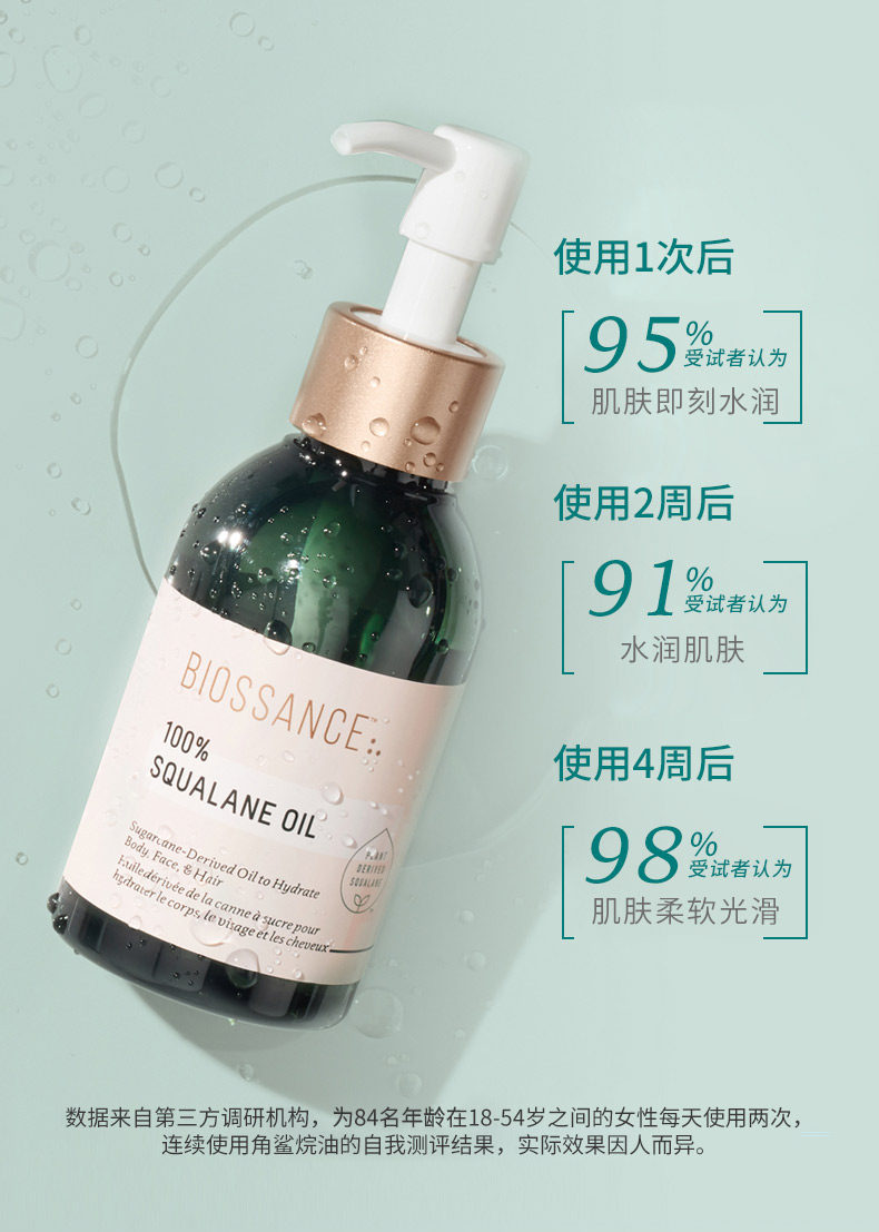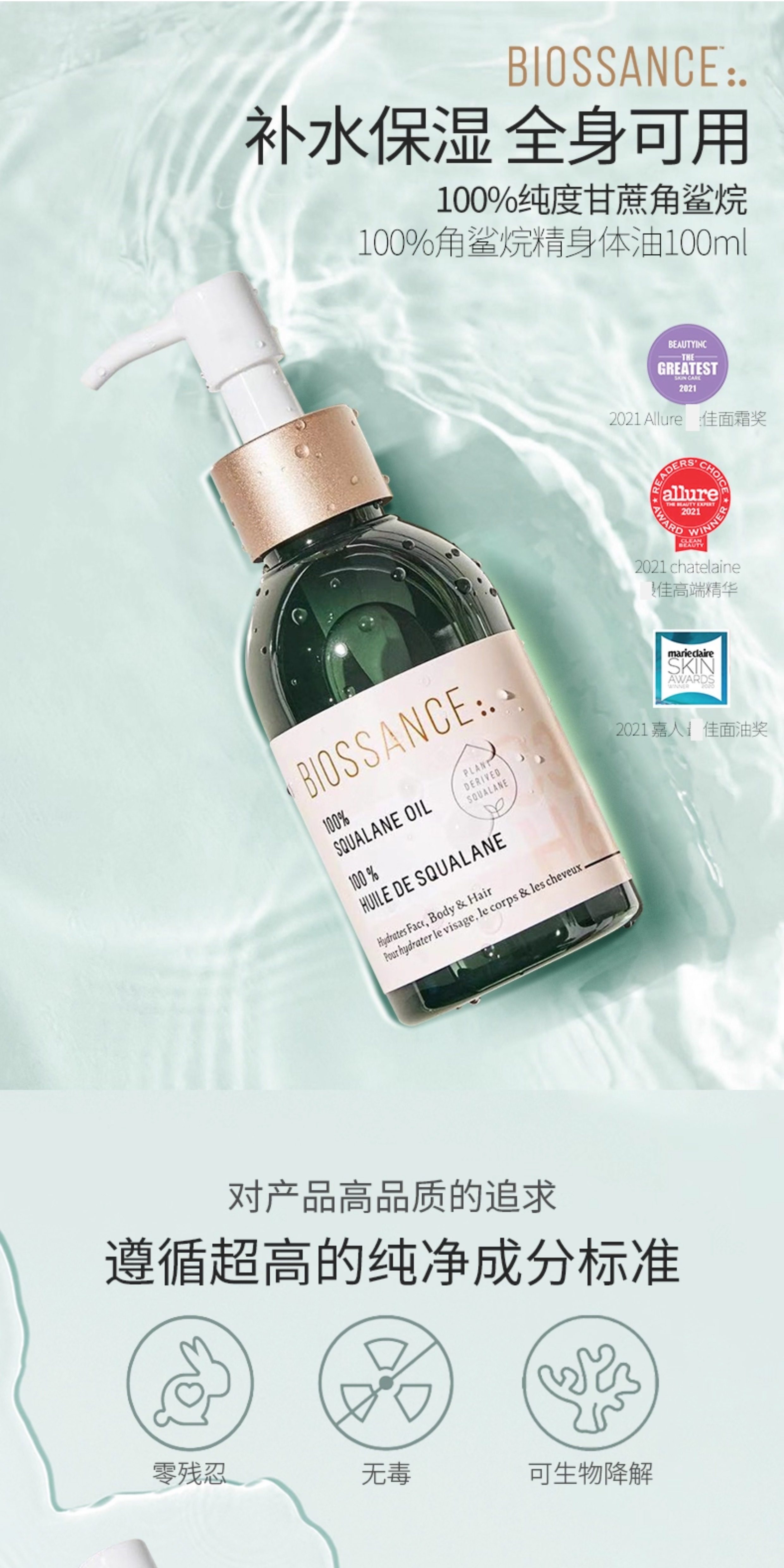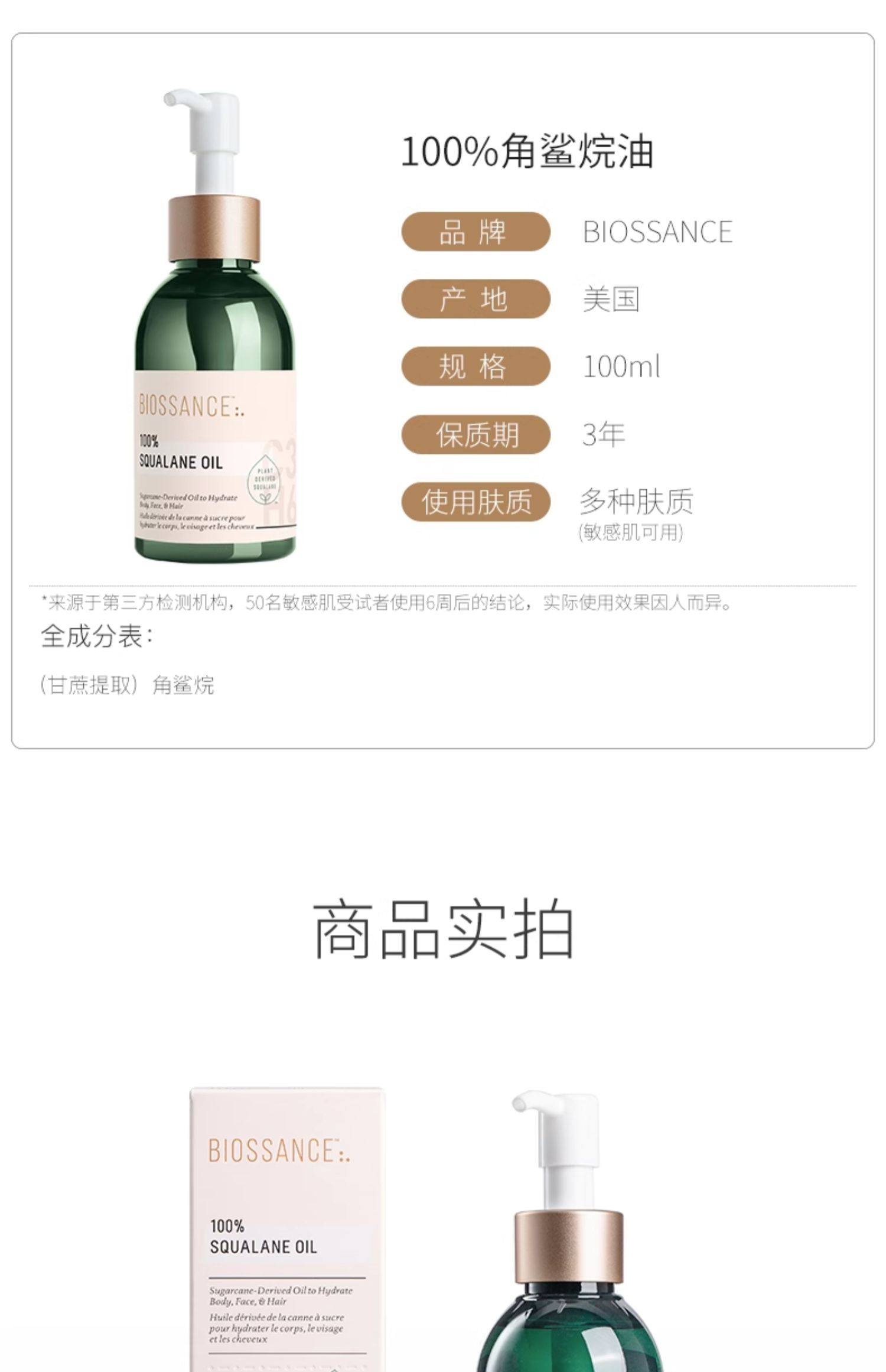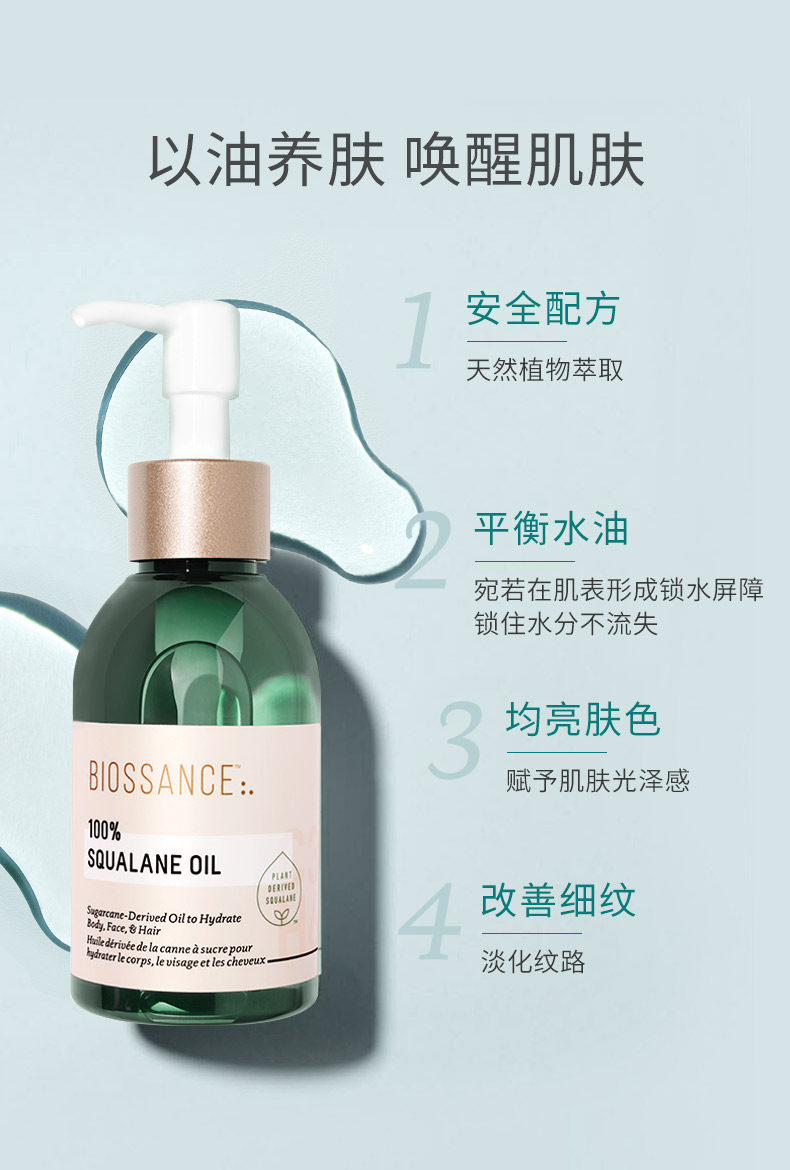 Biossance角鲨烷100%精华面油 纯植物修护保湿护肤油全身油100ml