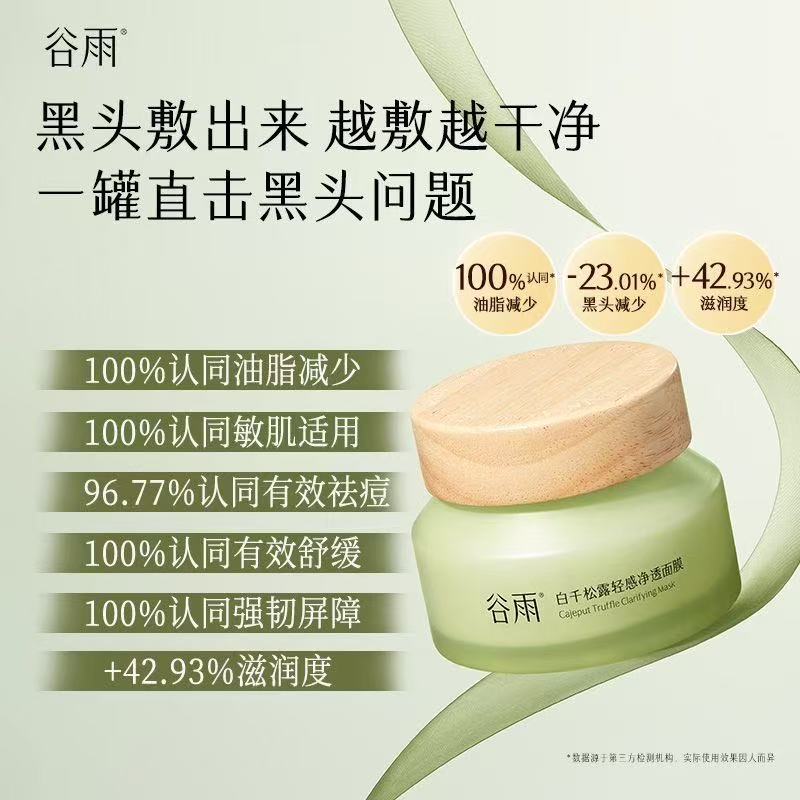 谷雨白千松露泥膜100G 深层清洁毛孔涂抹面膜控油减少黑头细腻肌肤女