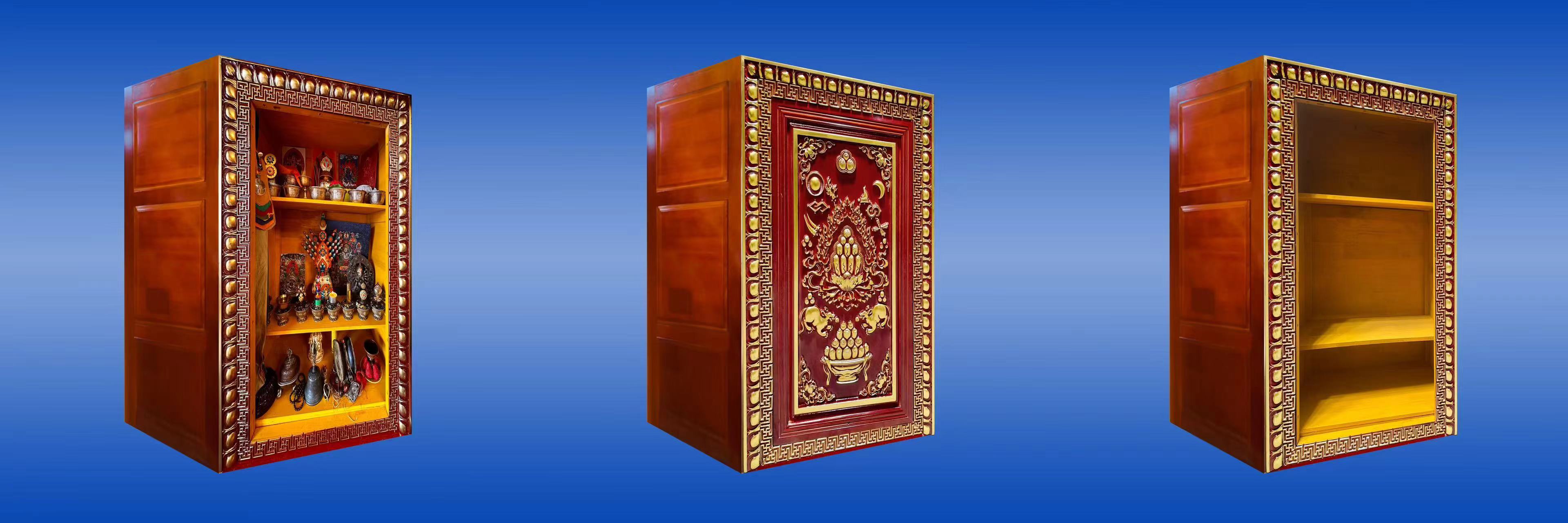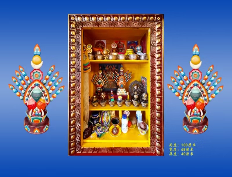 实木雕花三密成就宝箱实木佛龕柜门可遮挡内部法宝私密性较好高度100cm宽度68cm厚度40cm