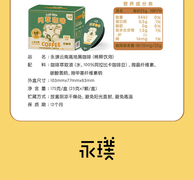 永璞 云南高地黑咖啡液 175g(25g*7)
