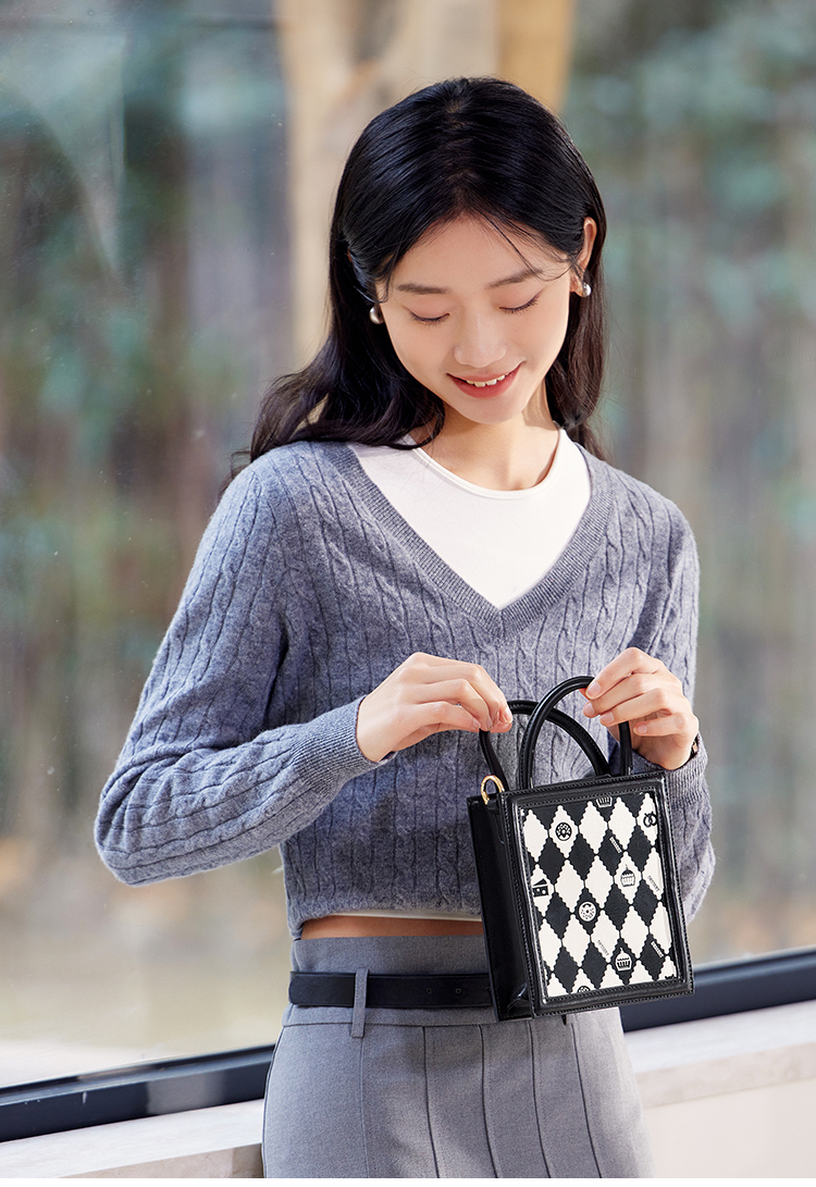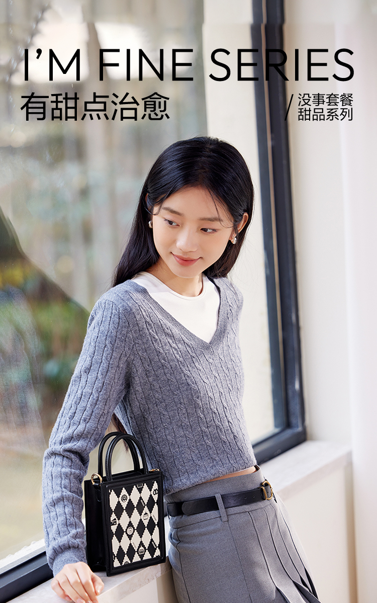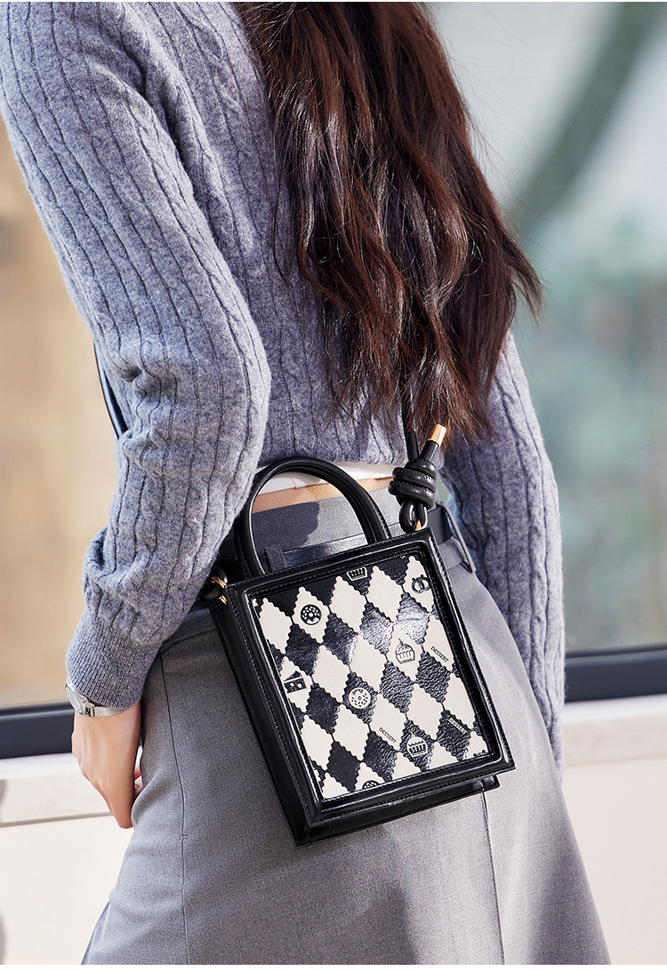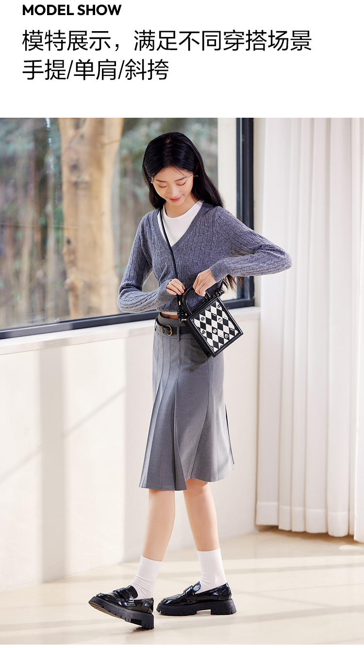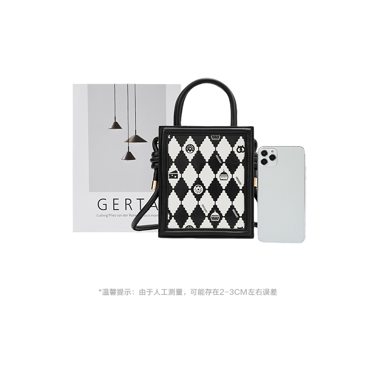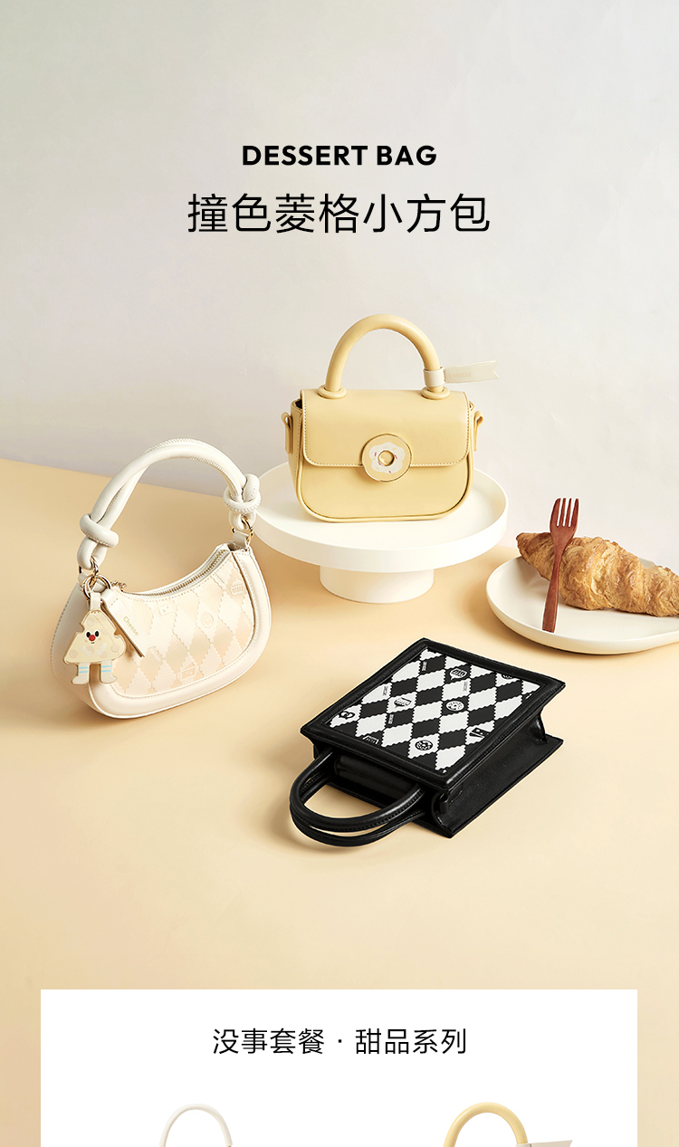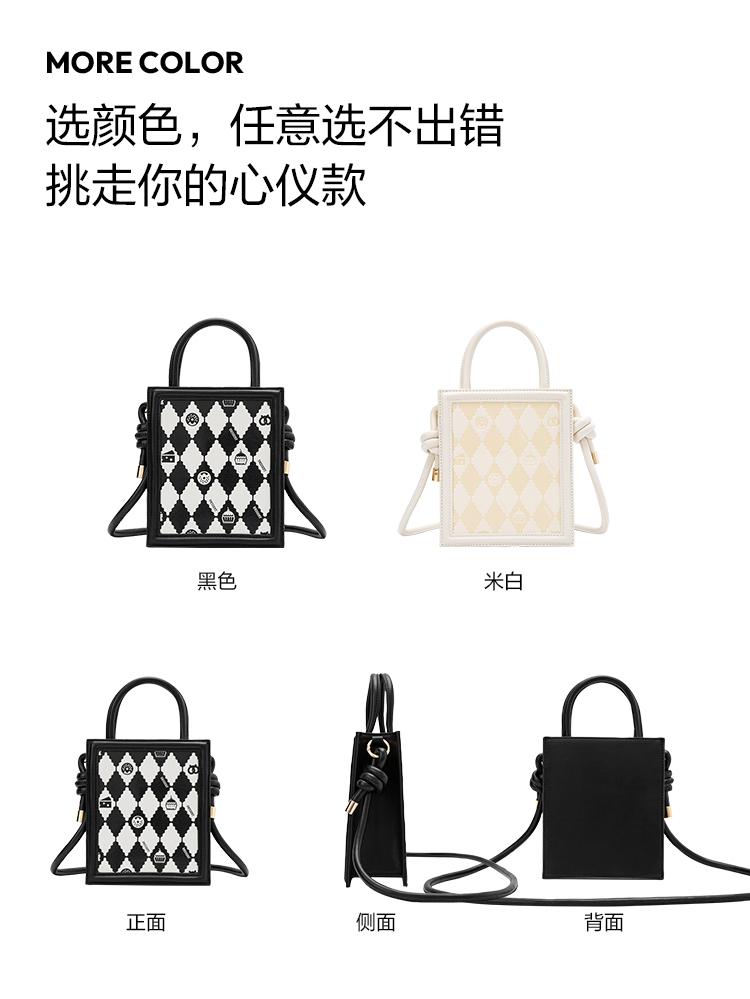 森马包包斜挎包女新款撞色菱格单肩包小巧手提包时尚小方包