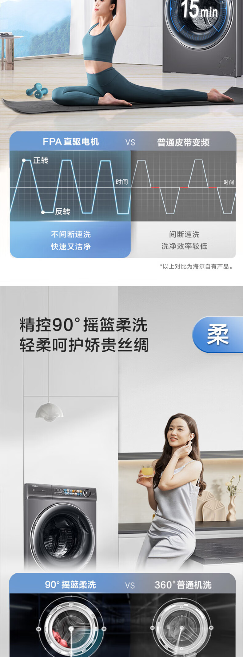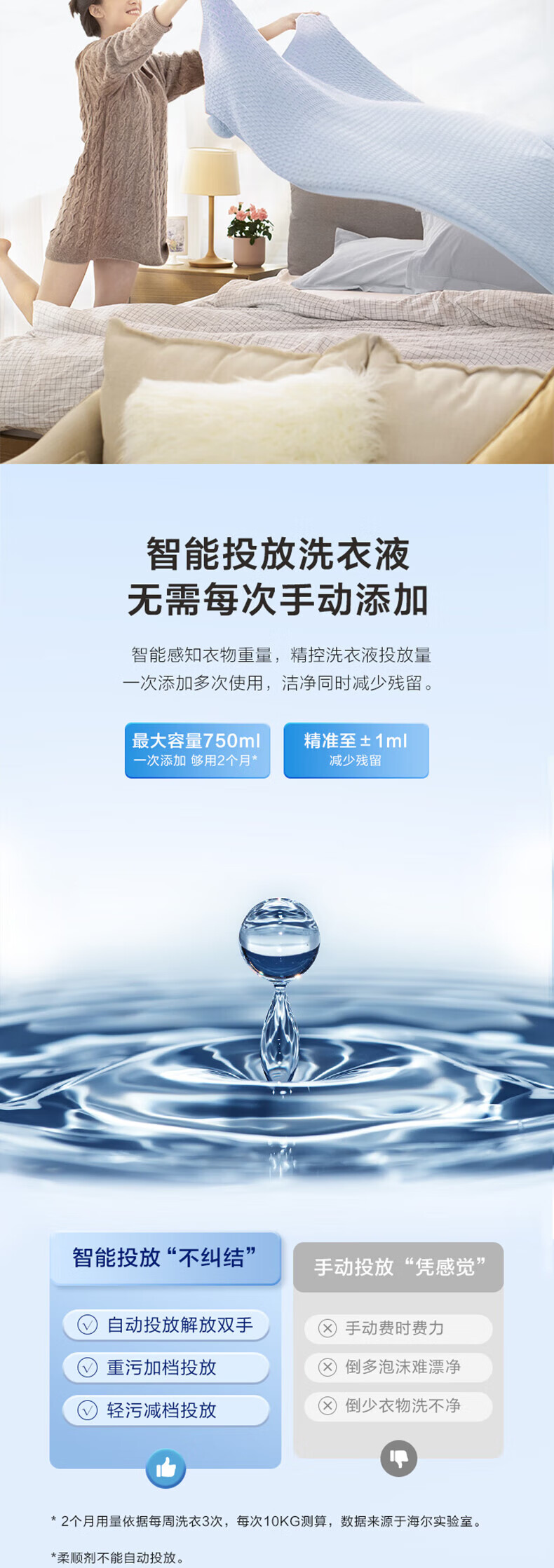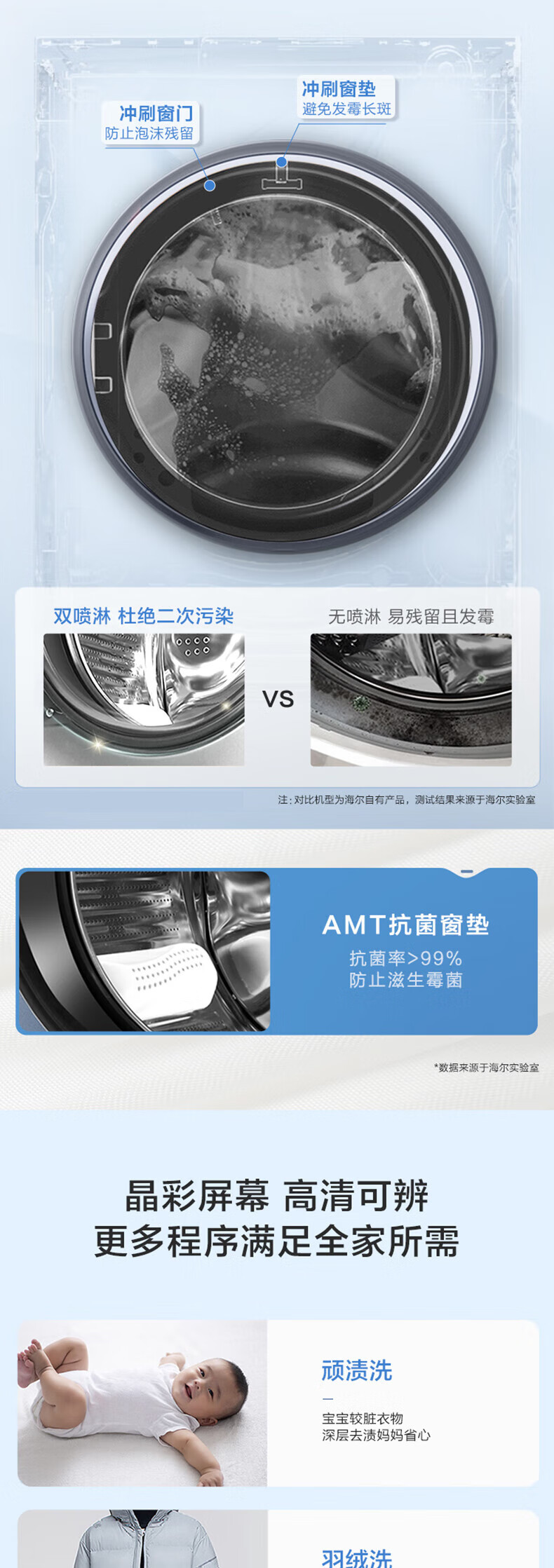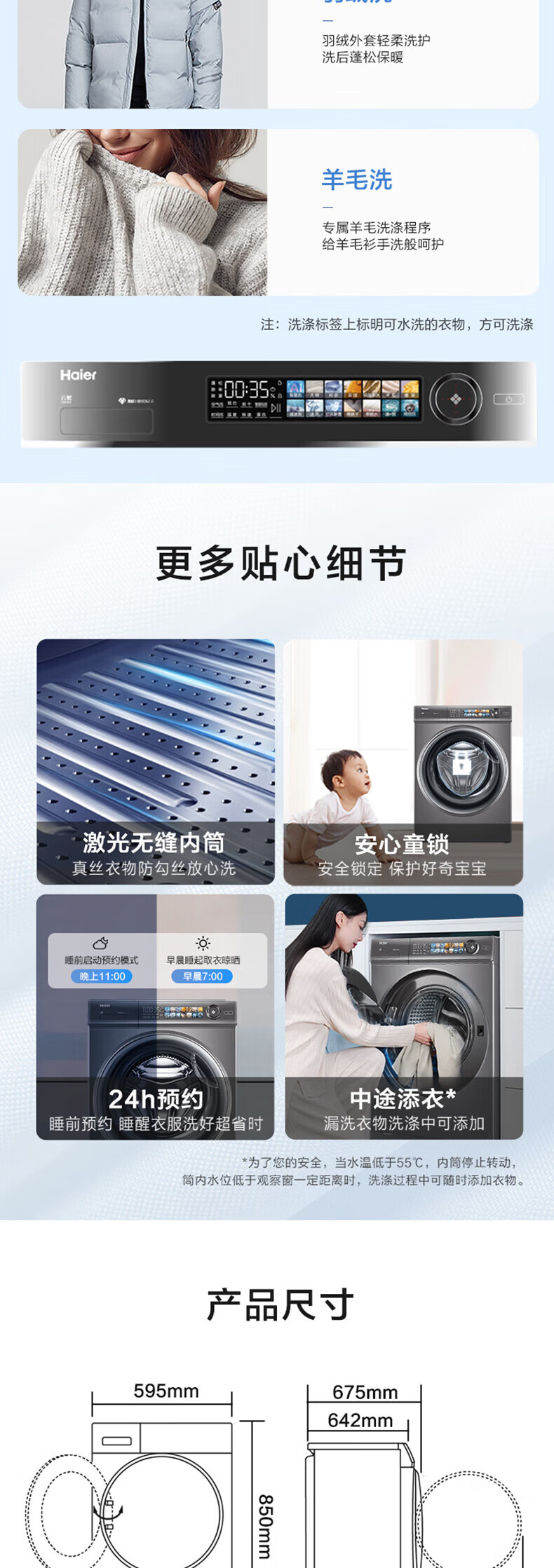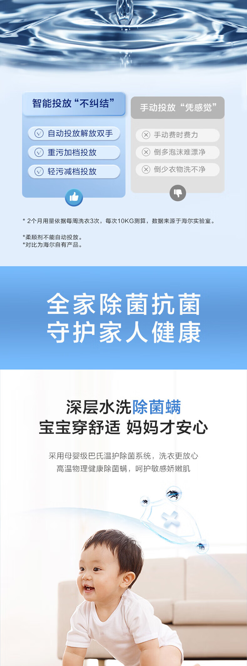 【2023新品】海尔精华洗直驱变频滚桶洗衣机058全自动10KG一级能效智能投放除菌除螨家用洗衣机