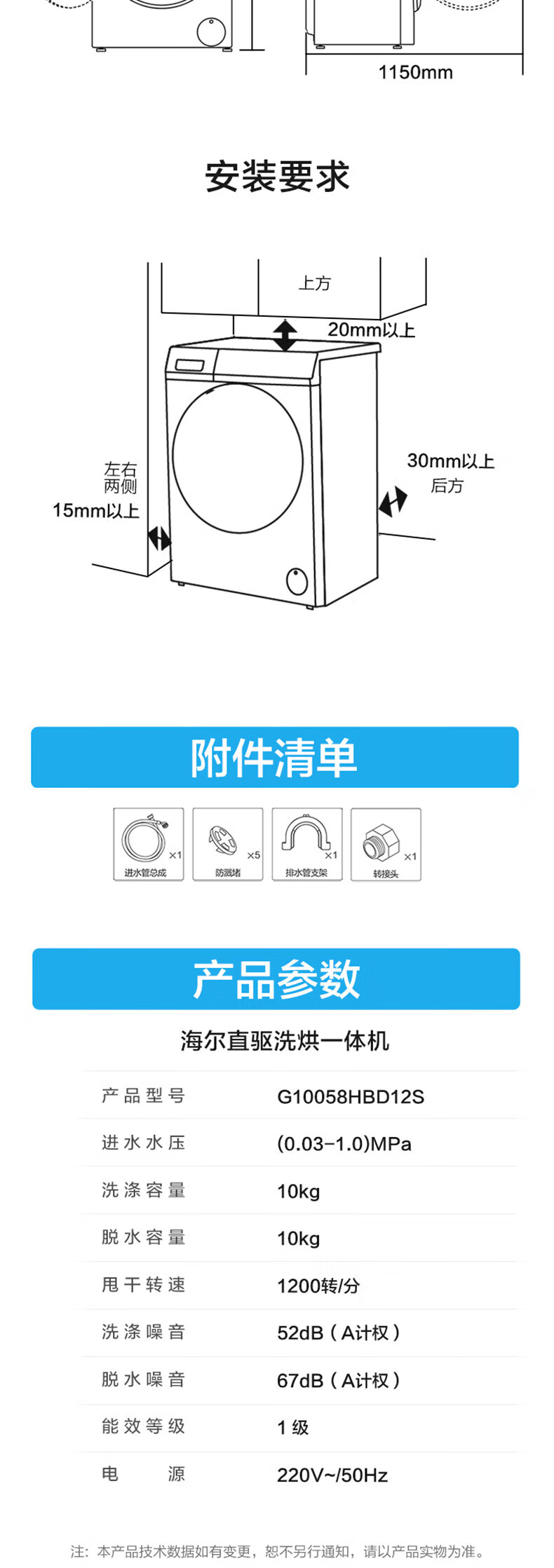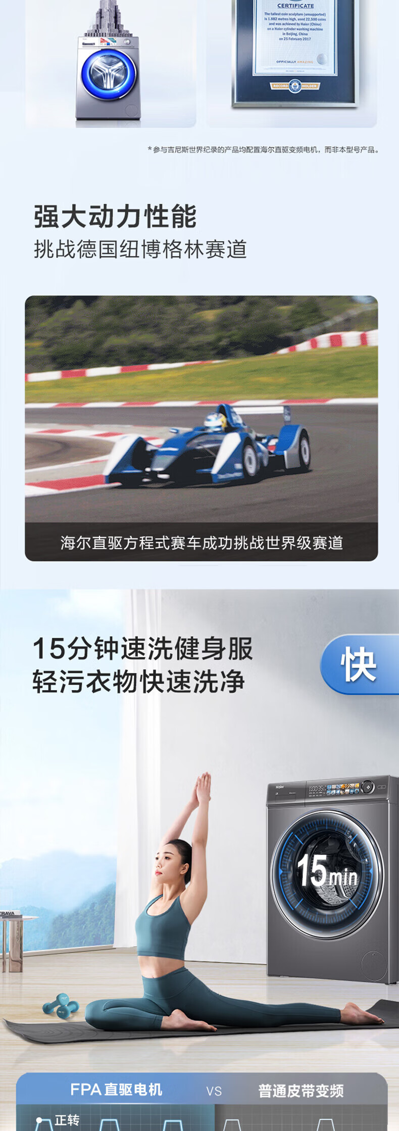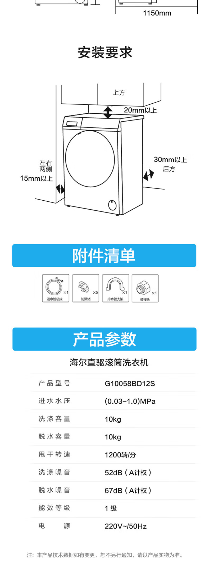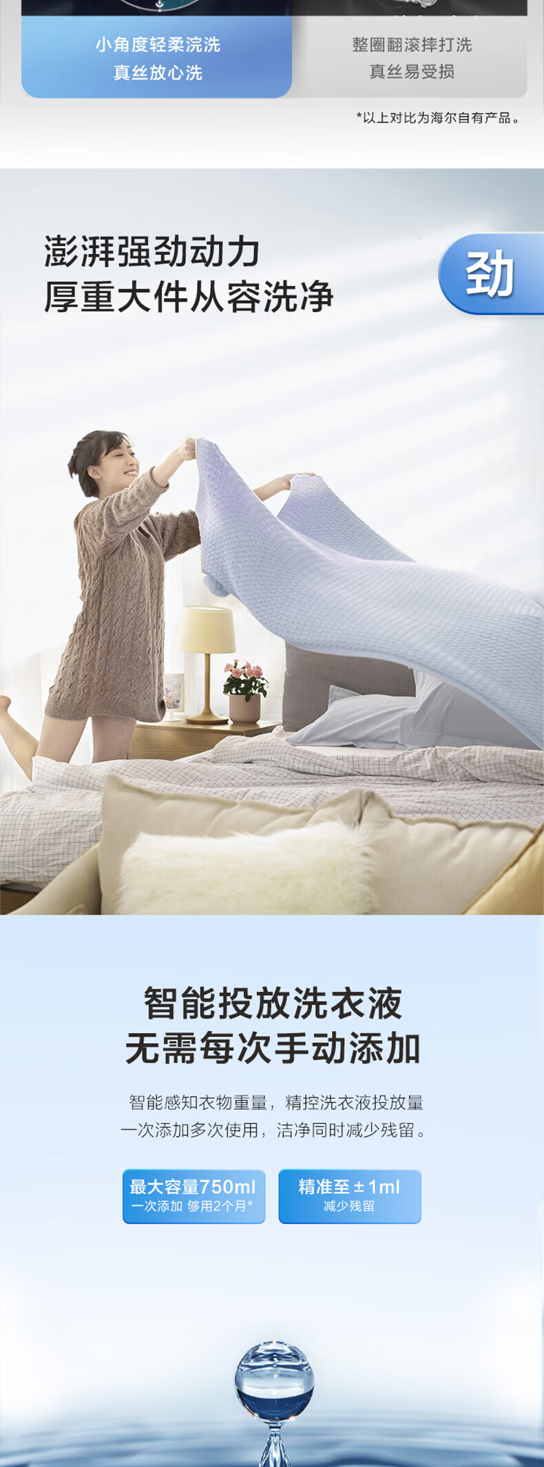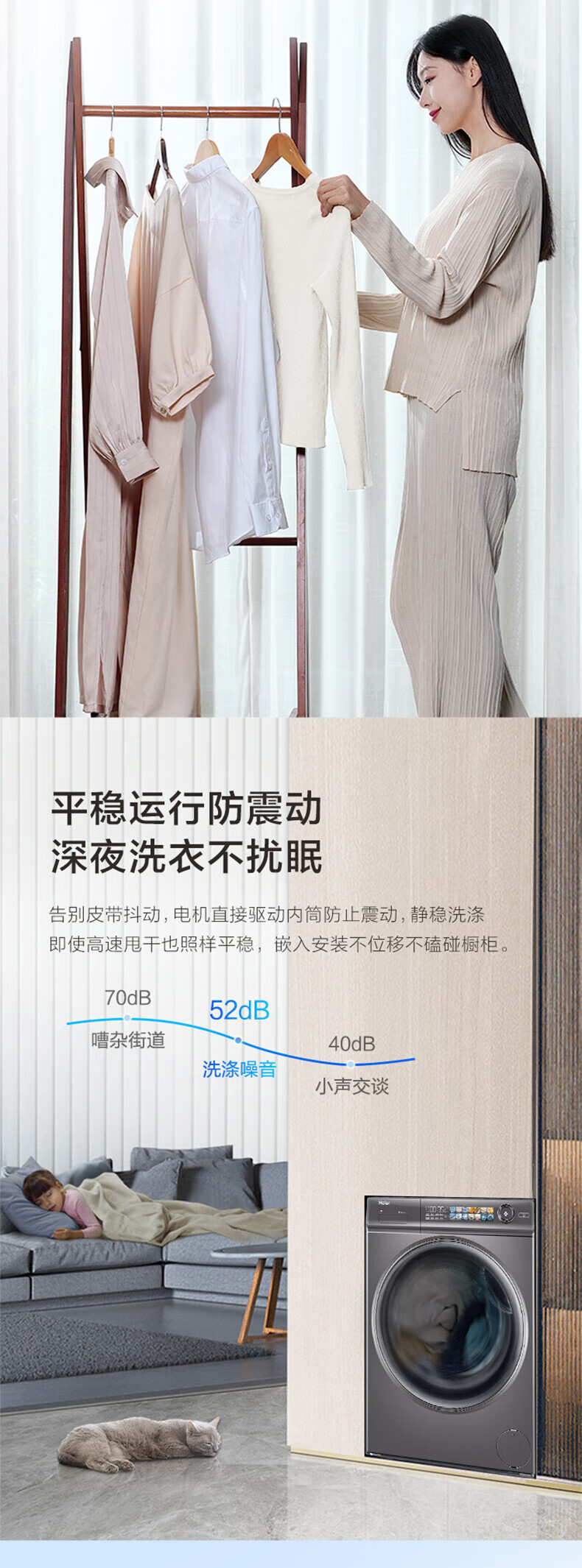 【2023新品】海尔精华洗直驱变频滚桶洗衣机058全自动10KG一级能效智能投放除菌除螨家用洗衣机