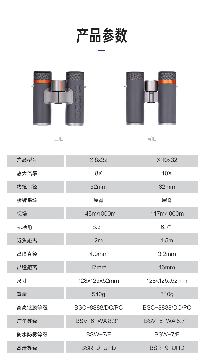 博冠X系列望远镜 10x32 2020年iF设计奖 还原真实影像 微平场(目镜平场)视野宽广舒适 轻巧便携
