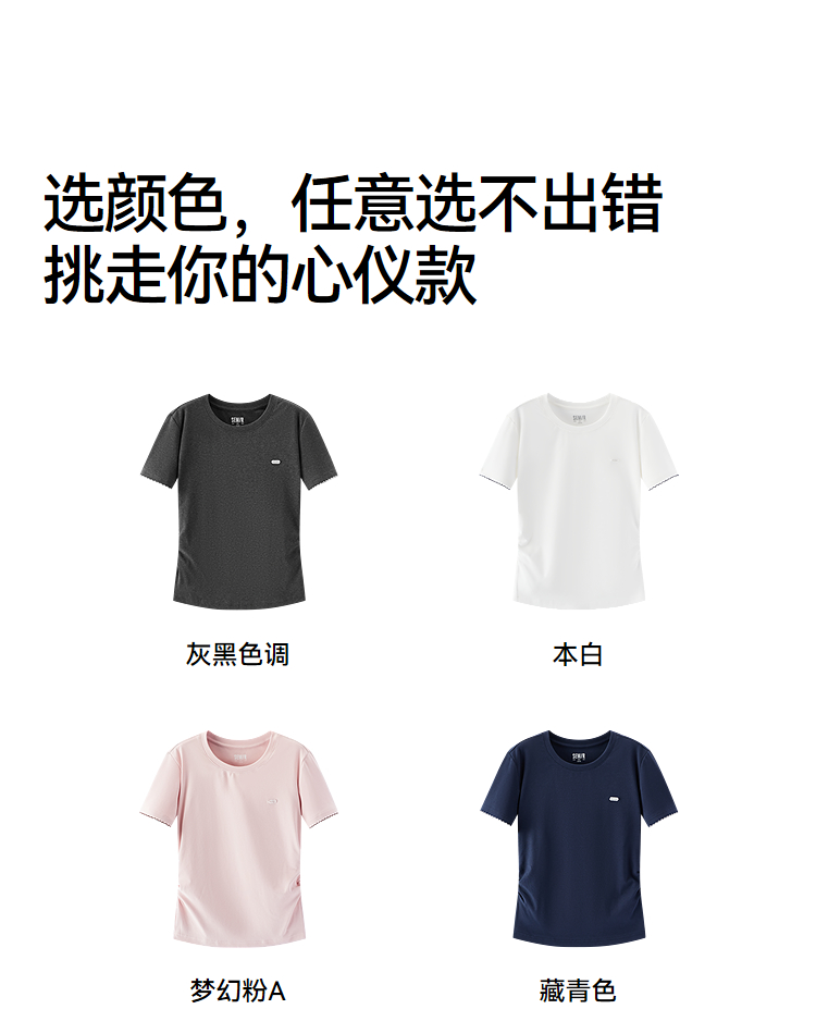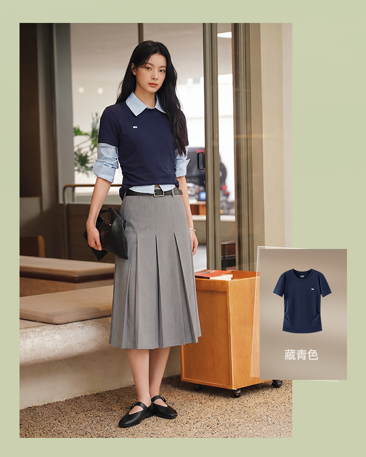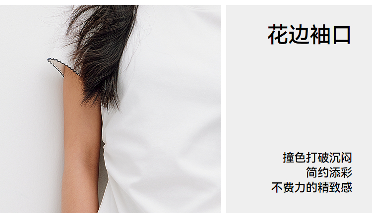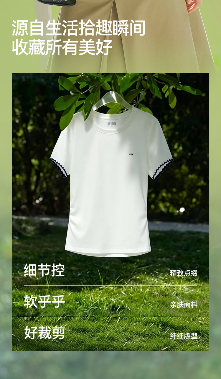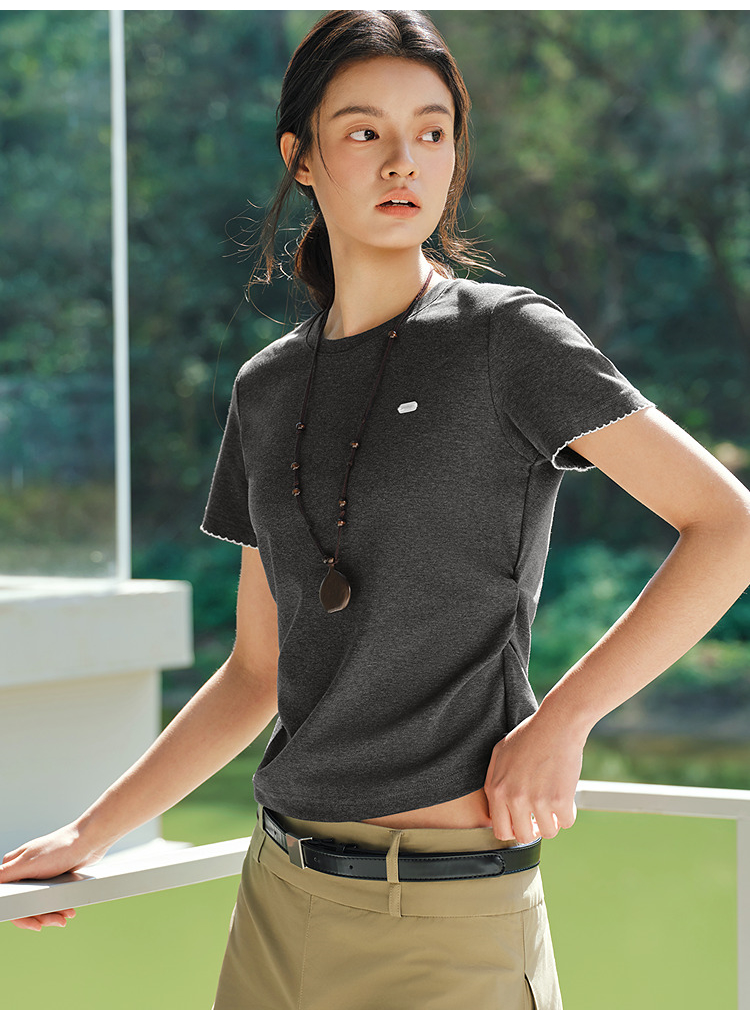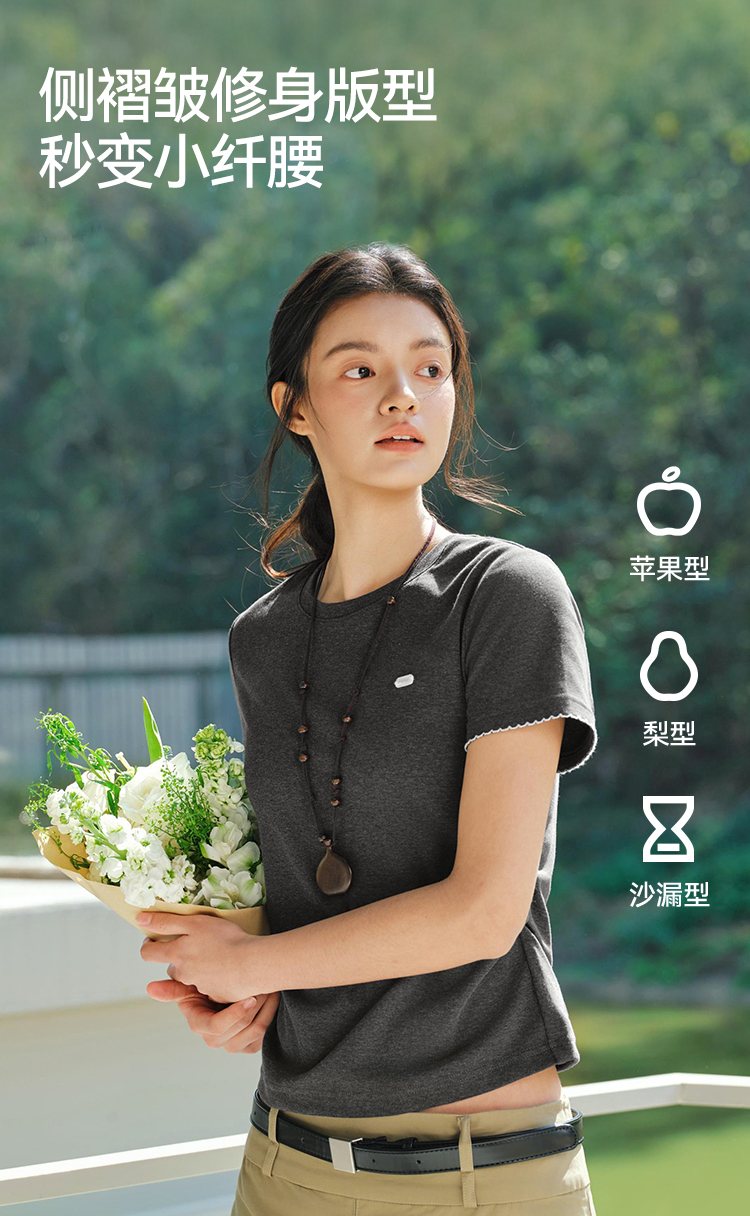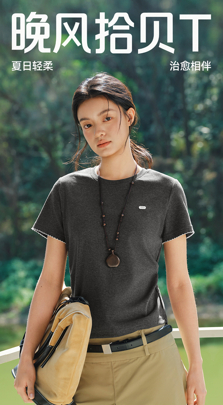 商场同款|森马短袖T恤女夏季修身褶皱撞色花边套头衫2026新款上衣