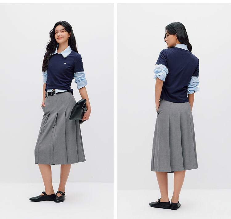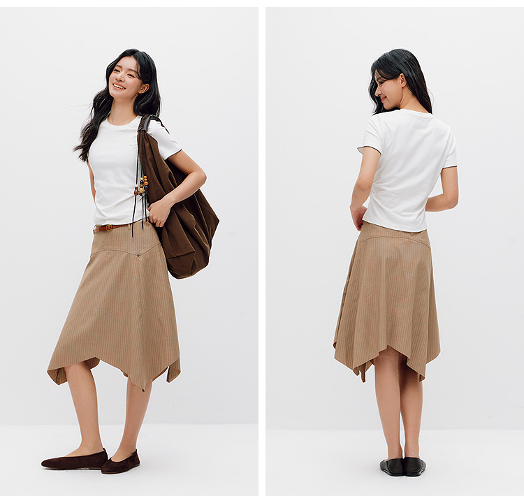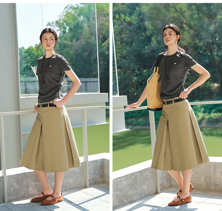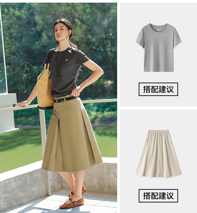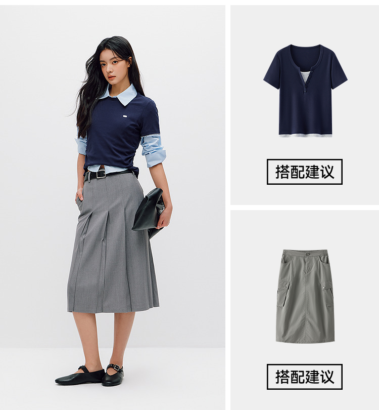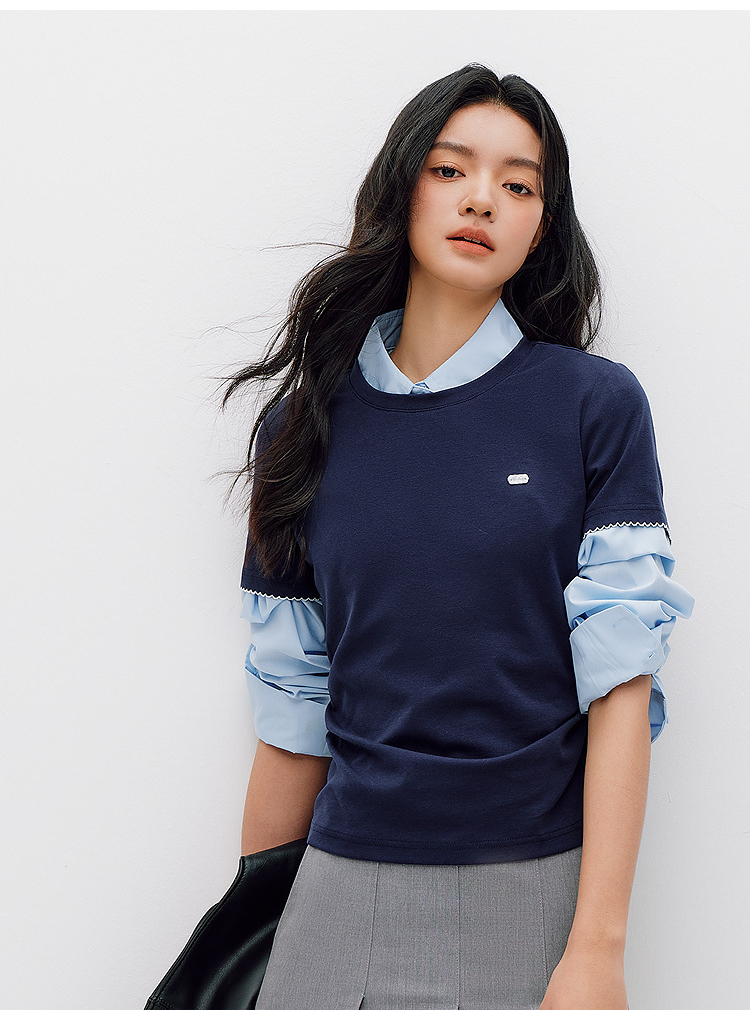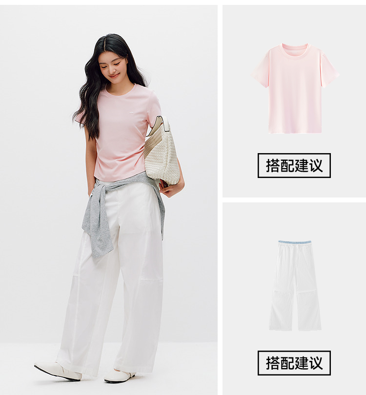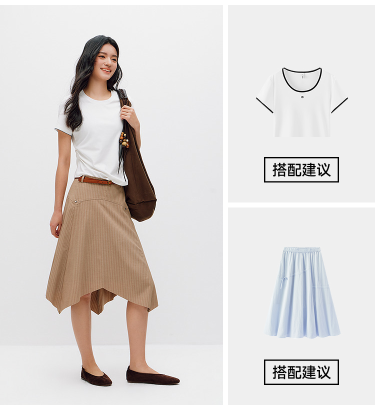商场同款|森马短袖T恤女夏季修身褶皱撞色花边套头衫2026新款上衣