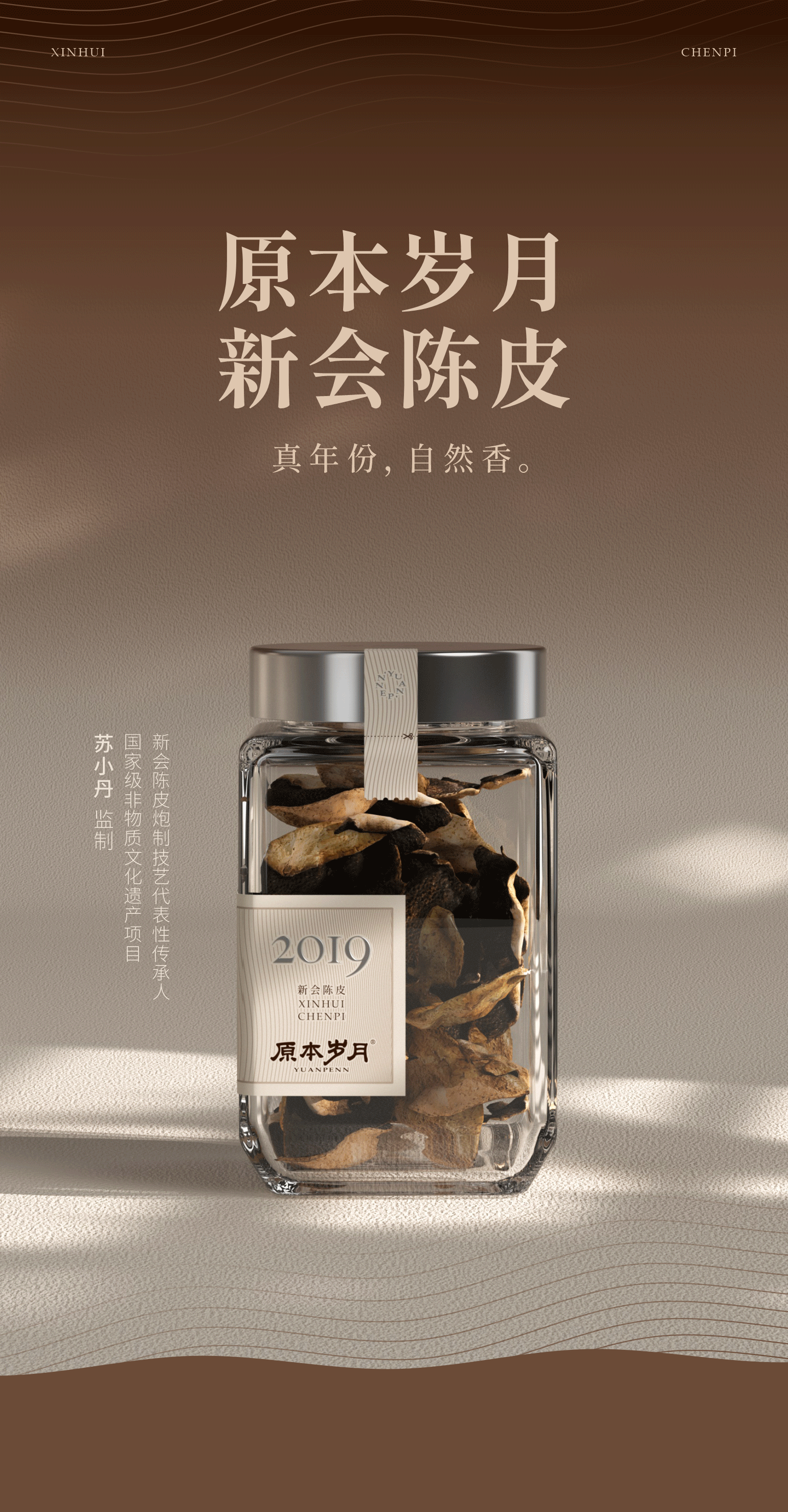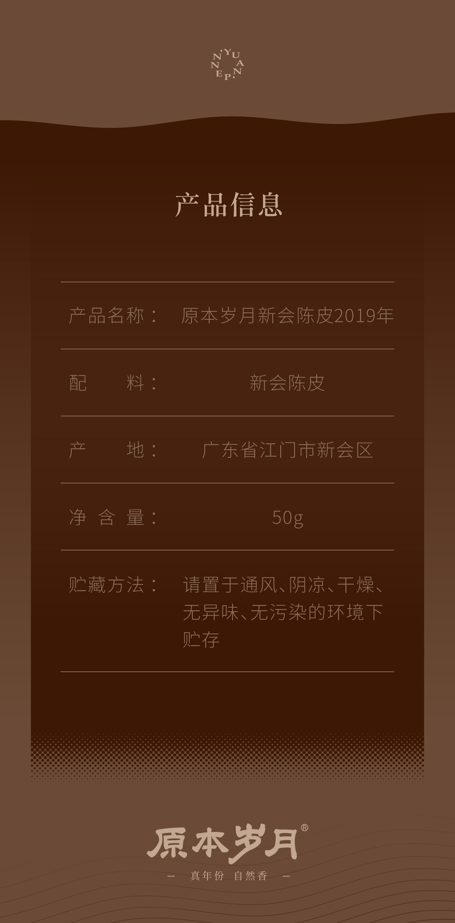 原本岁月新会陈皮2019年 50g/盒 大红皮 6年自然陈化 外皮油润 内囊泛黄 汤色透亮