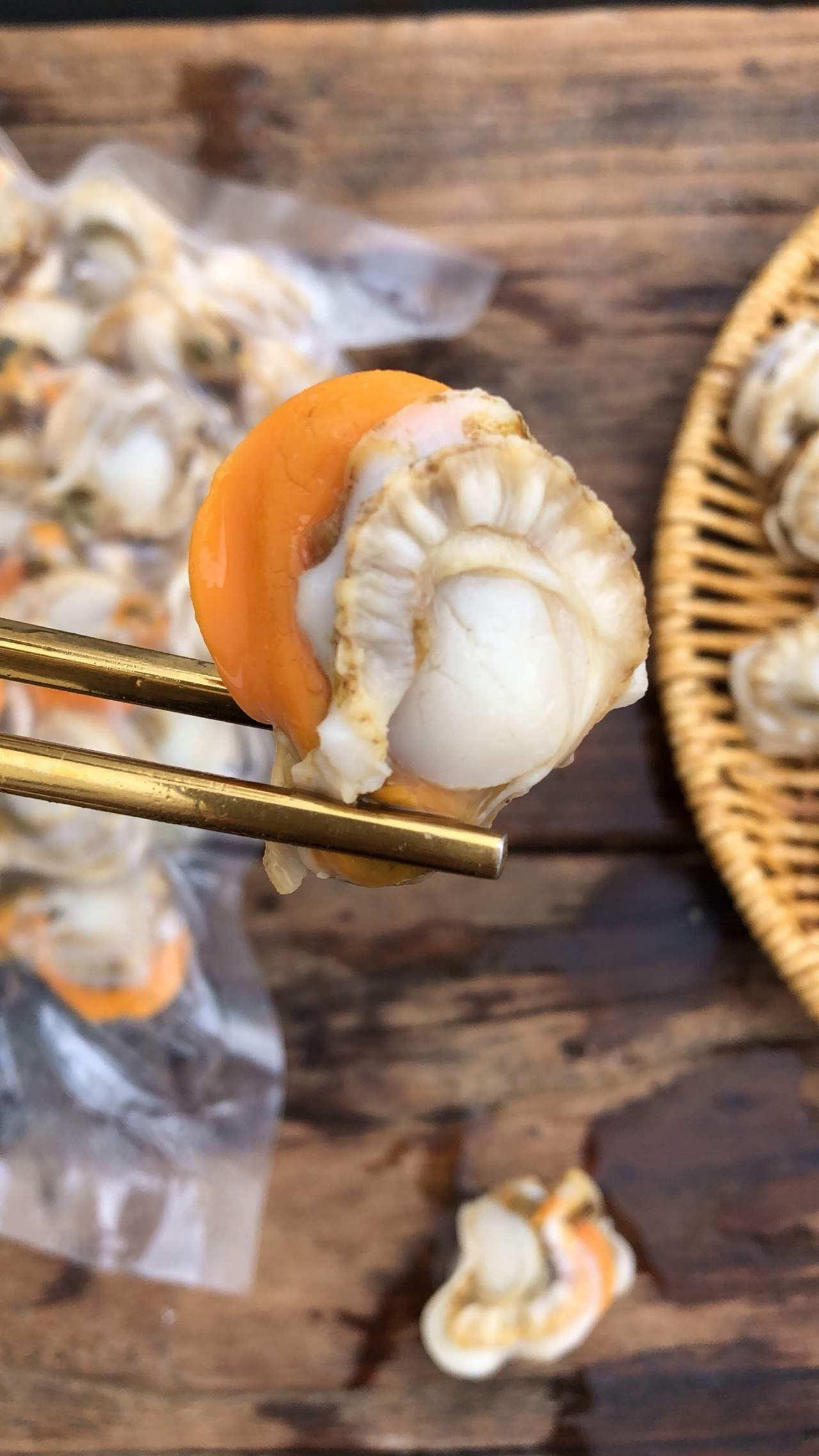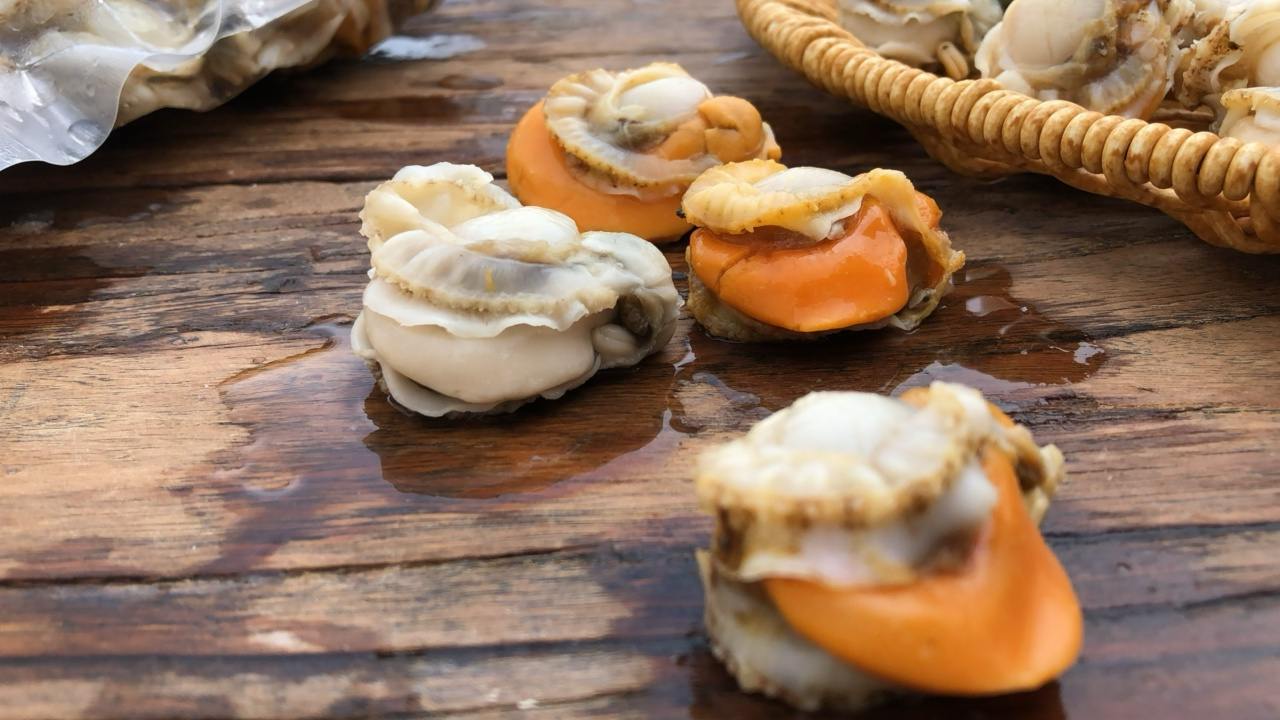 公贝带膏,母贝带黄,且肉质紧实,不会出现松散的情况!