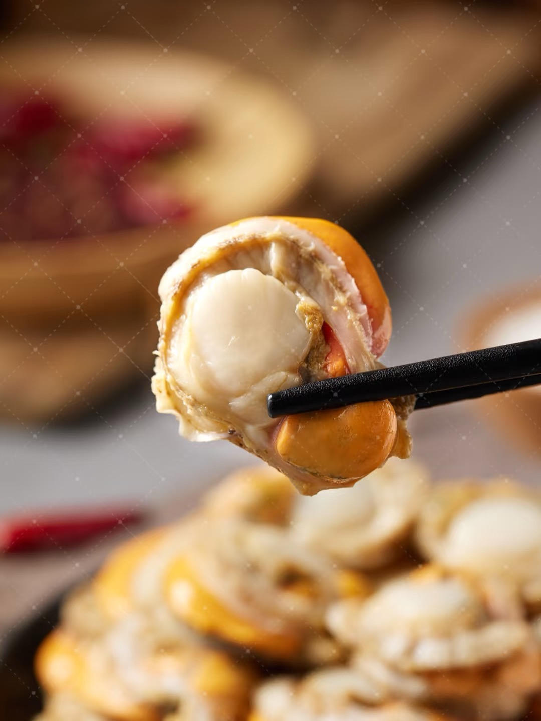 •鲜嫩多汁:栉孔扇贝的肉质鲜嫩,入口爽滑,轻轻一咬,汁水四溢,满满的海洋气息瞬间在口中爆发。