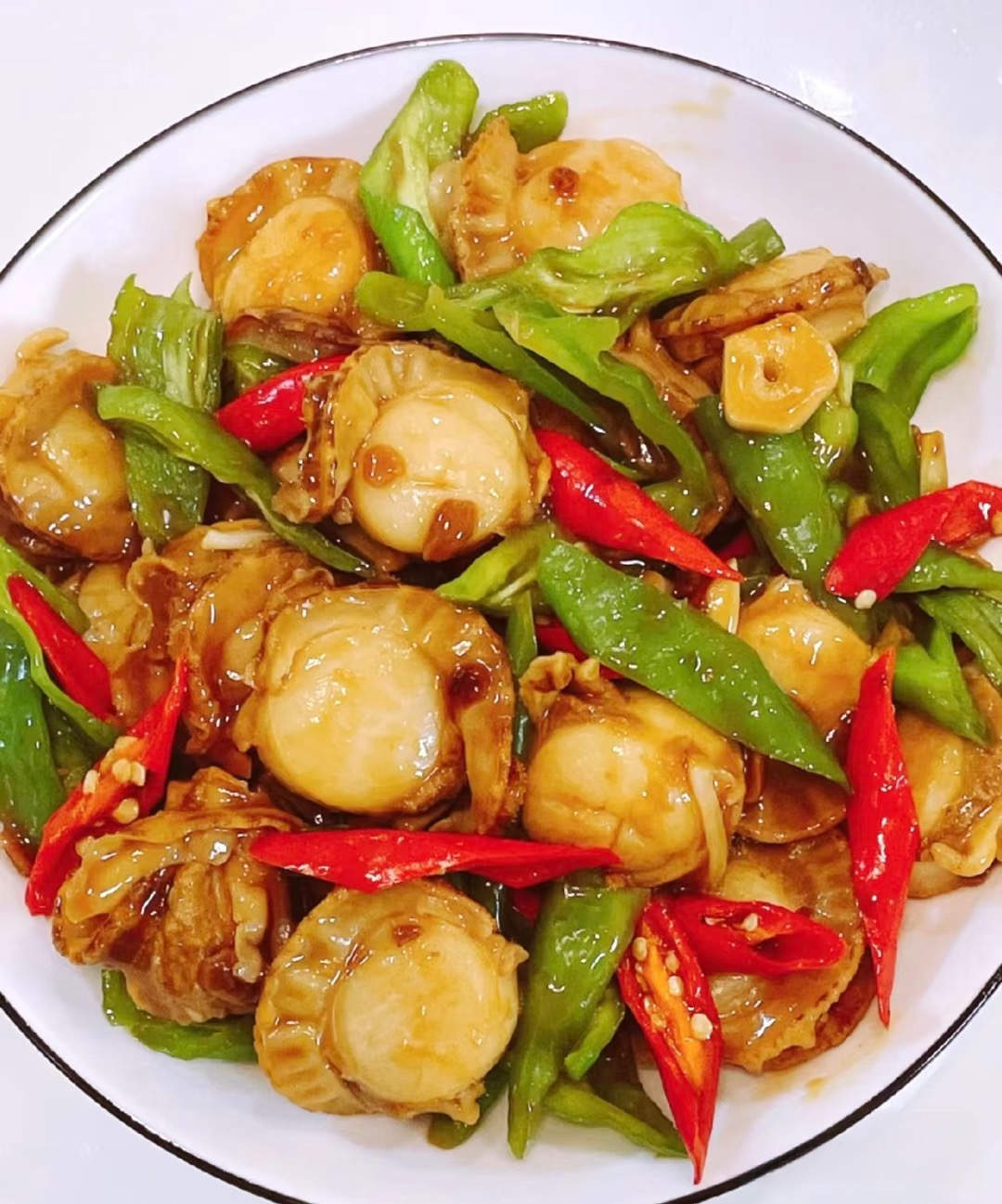 食材:扇贝肉、螺丝椒、红椒、葱姜蒜