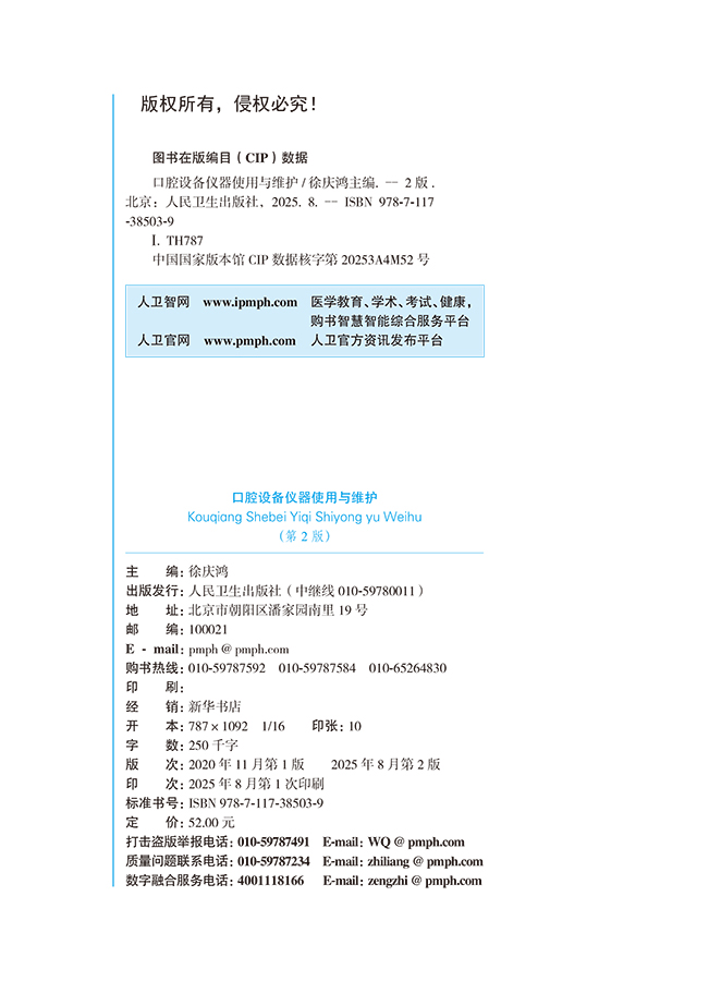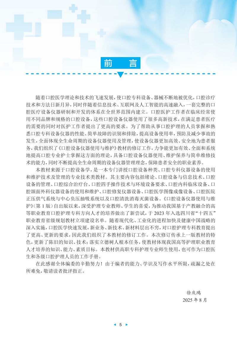 口腔设备仪器使用与维护 第2二版 改革创新试验教材 徐庆鸿 主编 供护理类专业用 改革创新教材 创新教材 专科 高职人民卫生出版社
