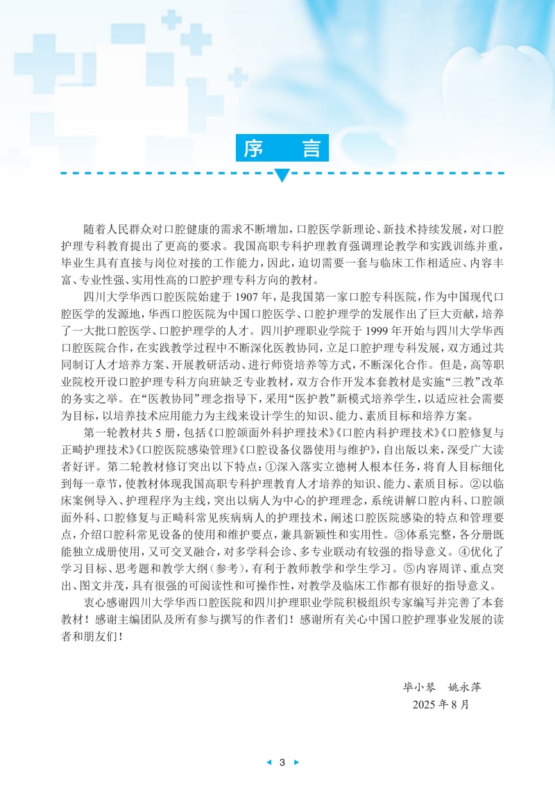 本教材是一套精准化针对口腔诊疗中常用的仪器设备为主要教学内容的教材,内容包括口腔设备学的发展史、口腔设备与信息技术、口腔设备的管理、口腔综合治疗台与牙科手机、口腔四手操作技术与环境设备要求、口腔内科临床设备、口腔颌面外科仪器设备、口腔修复仪器设备、口腔医学图像成像设备、口腔医院正压供气系统与中心负压抽吸系统以及口腔消毒灭菌设备等知识。口腔护理学生经过对本系列教材的学习,不仅能够掌握以上专业知识,而且能运用所学的相关操作技术,在口腔临床进行相关护理工作。