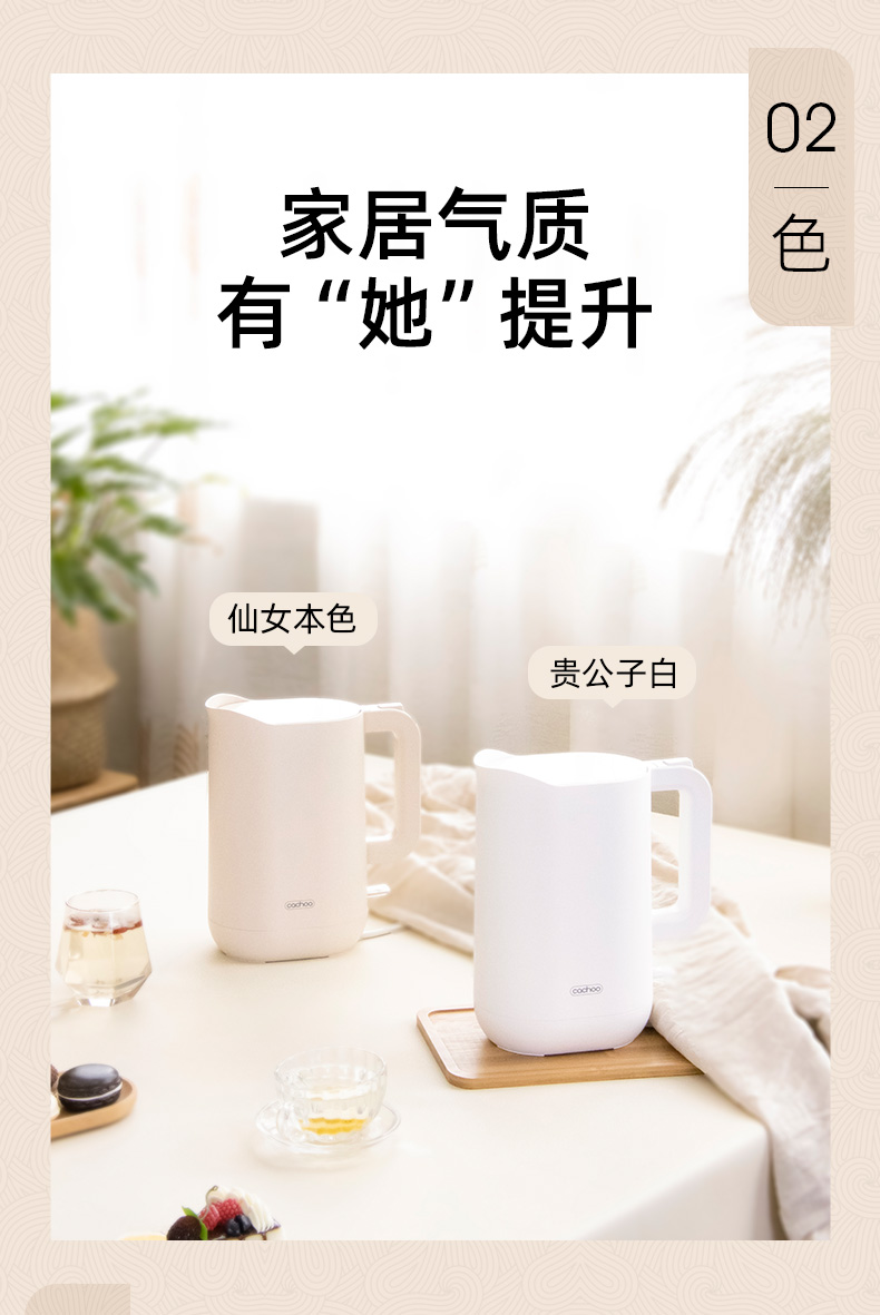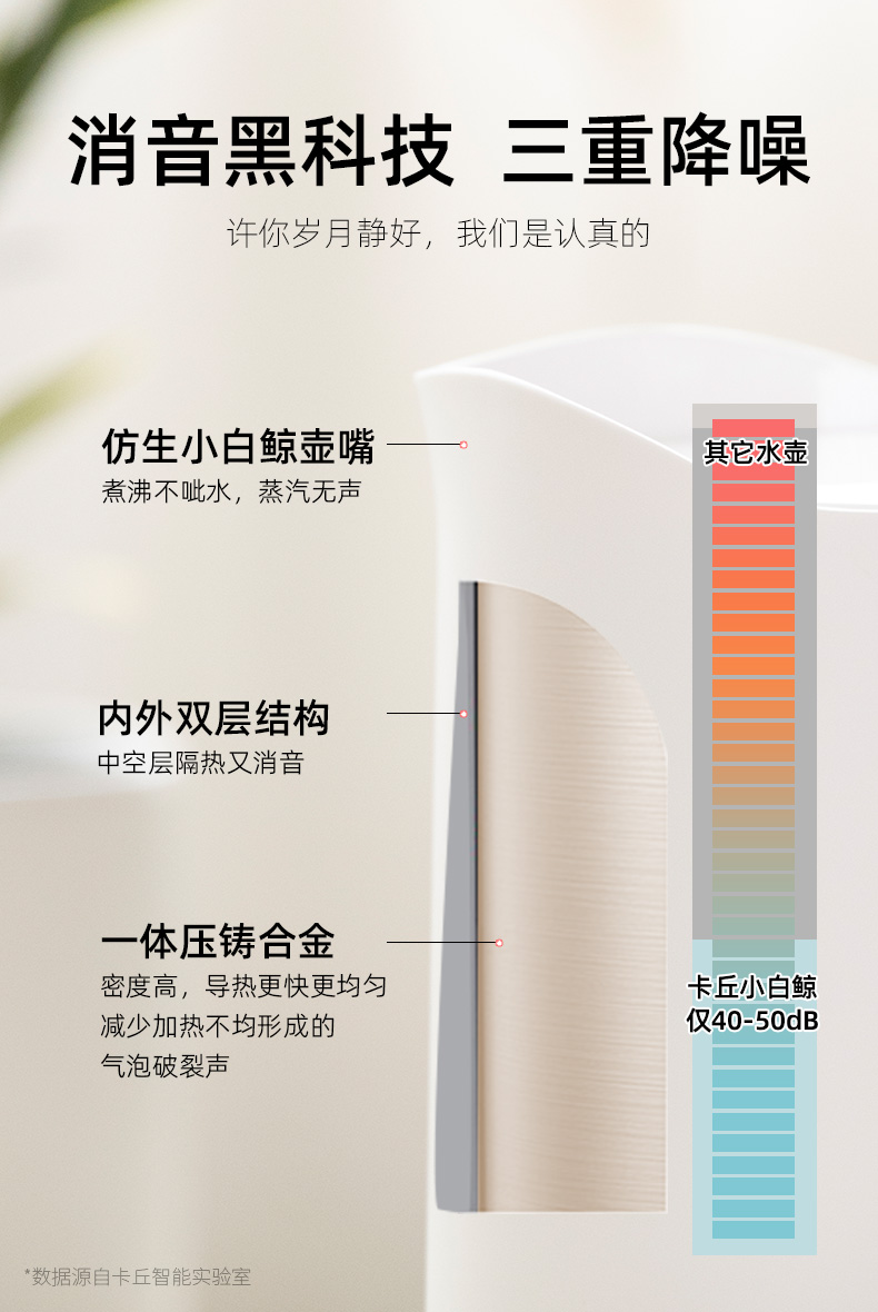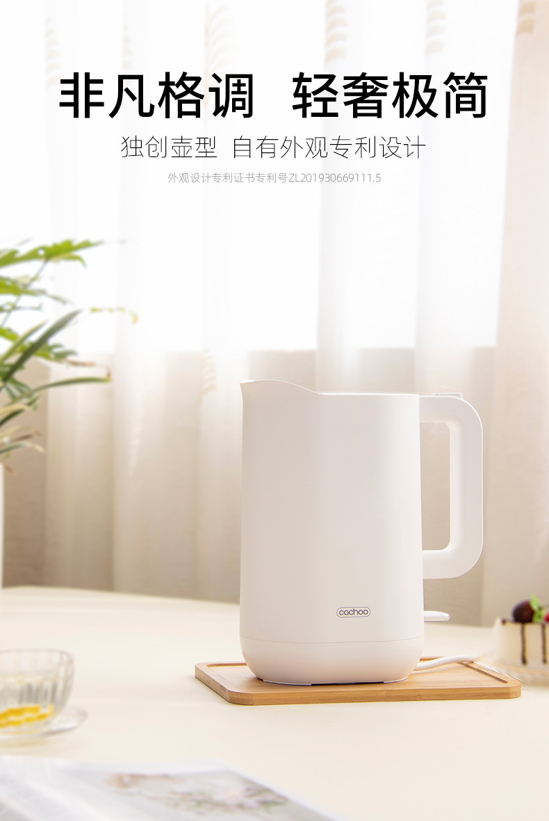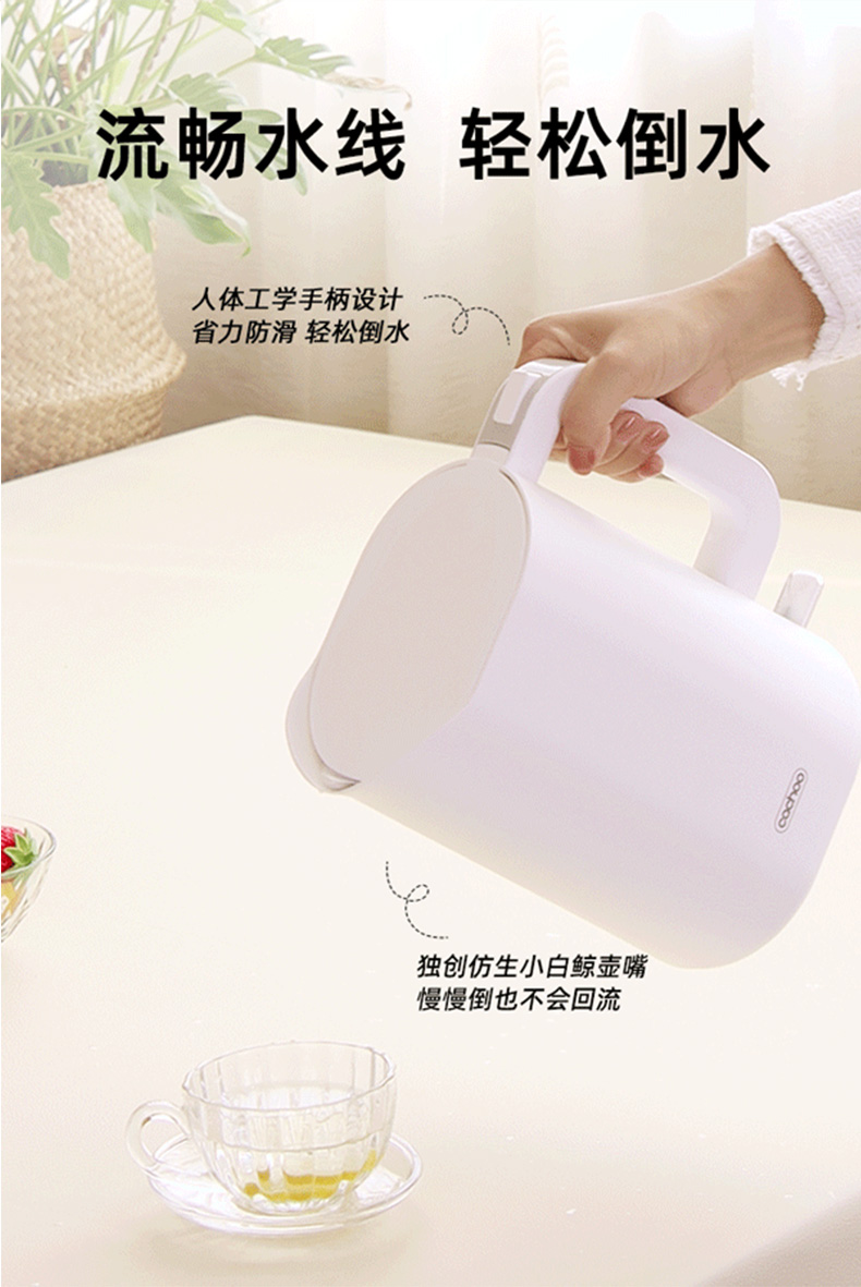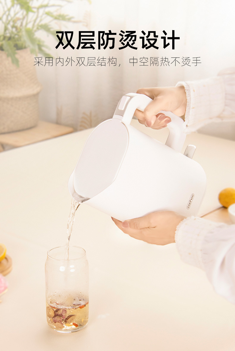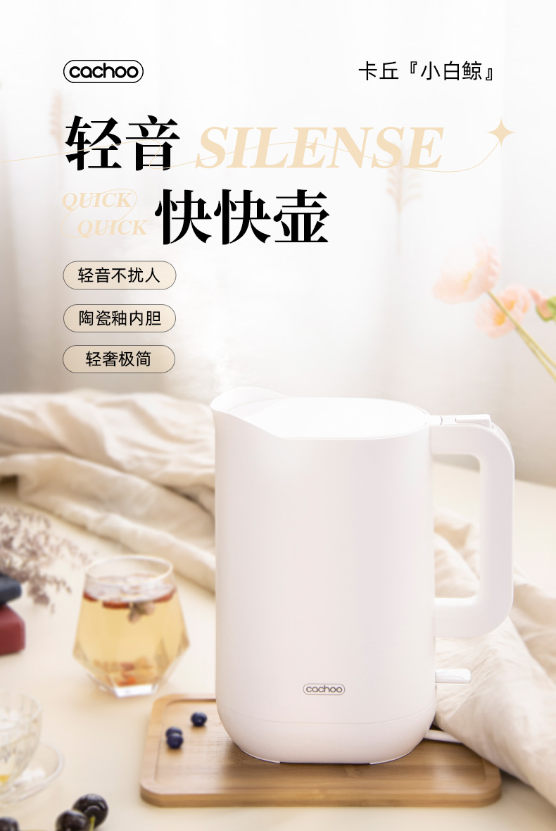 卡丘电热水壶轻音家用热水壶烧水壶双层防烫自动断电便携烧水壶
