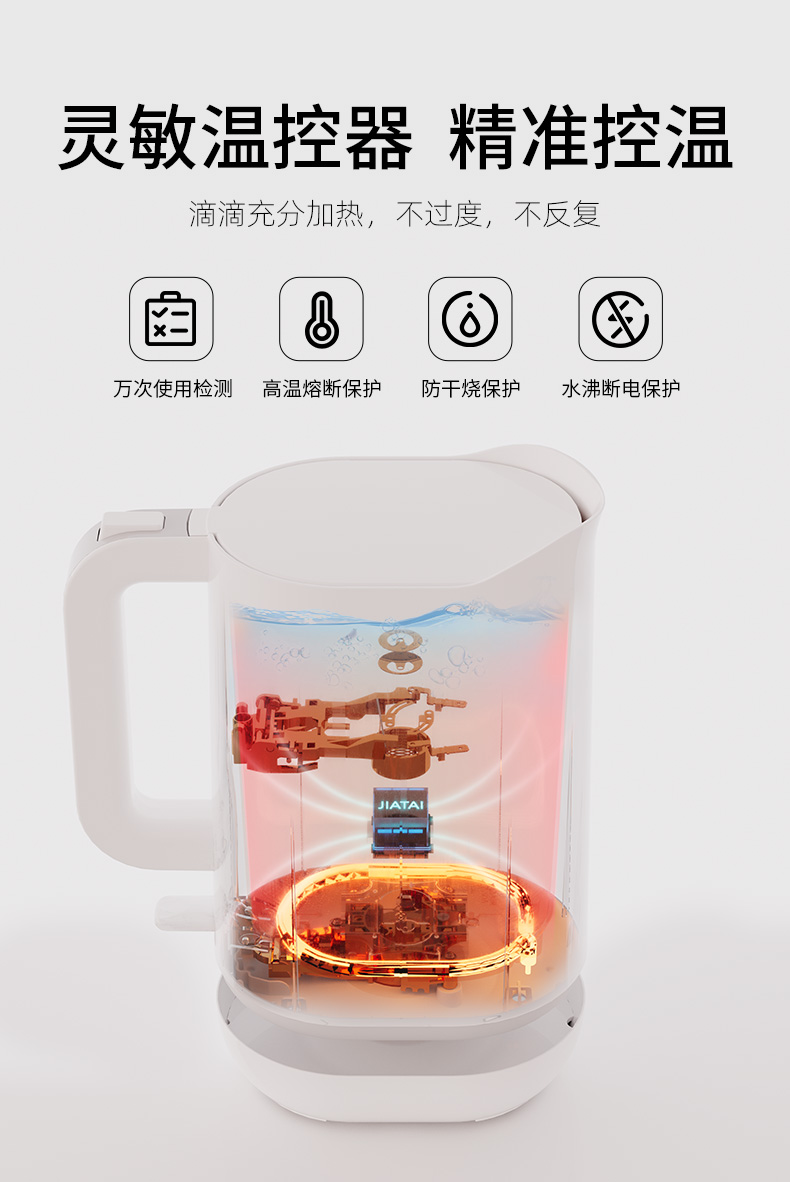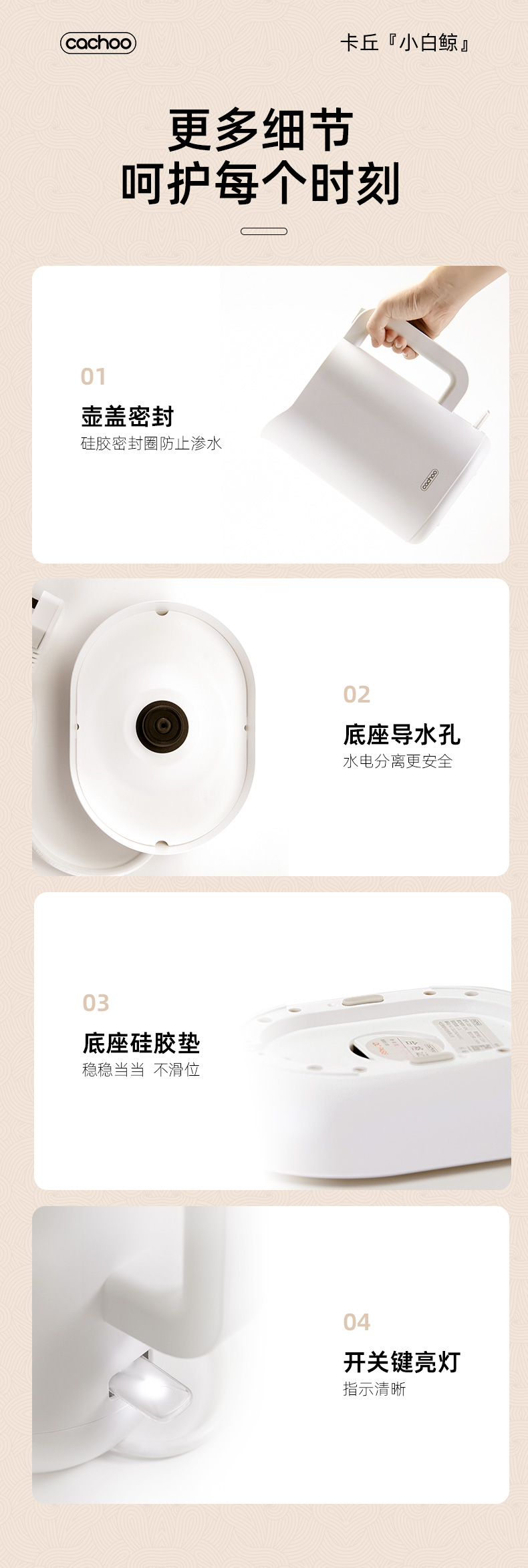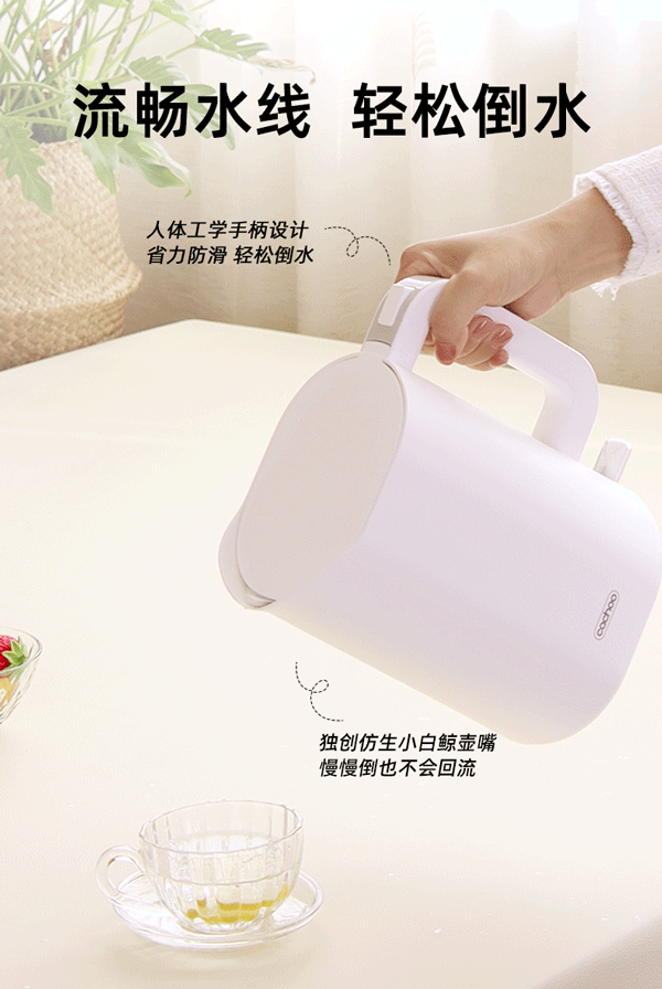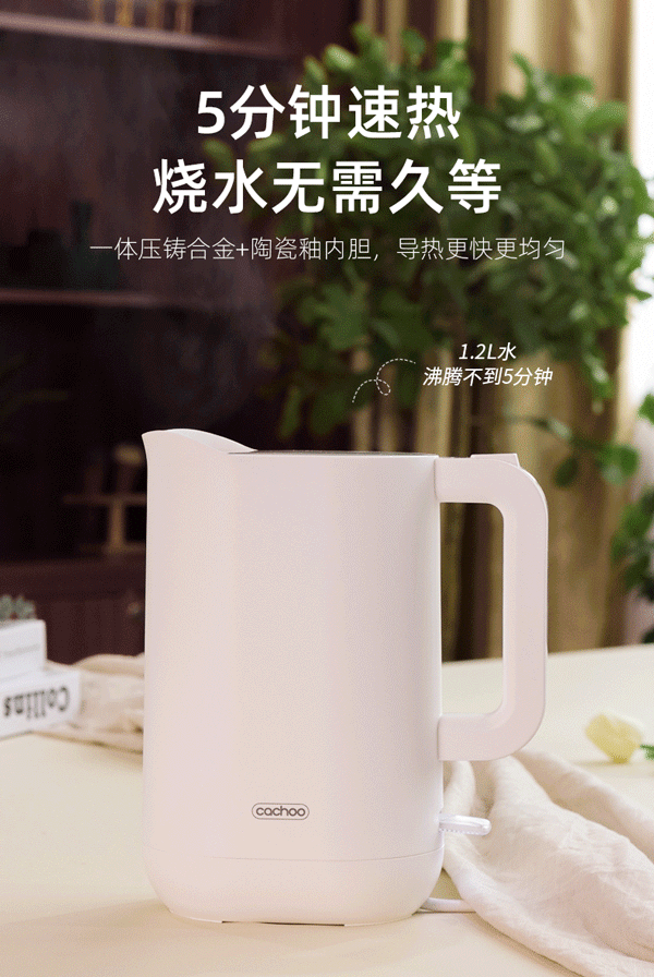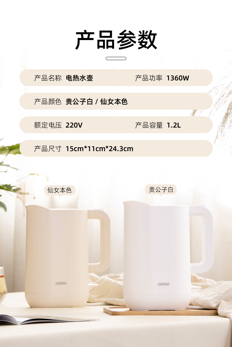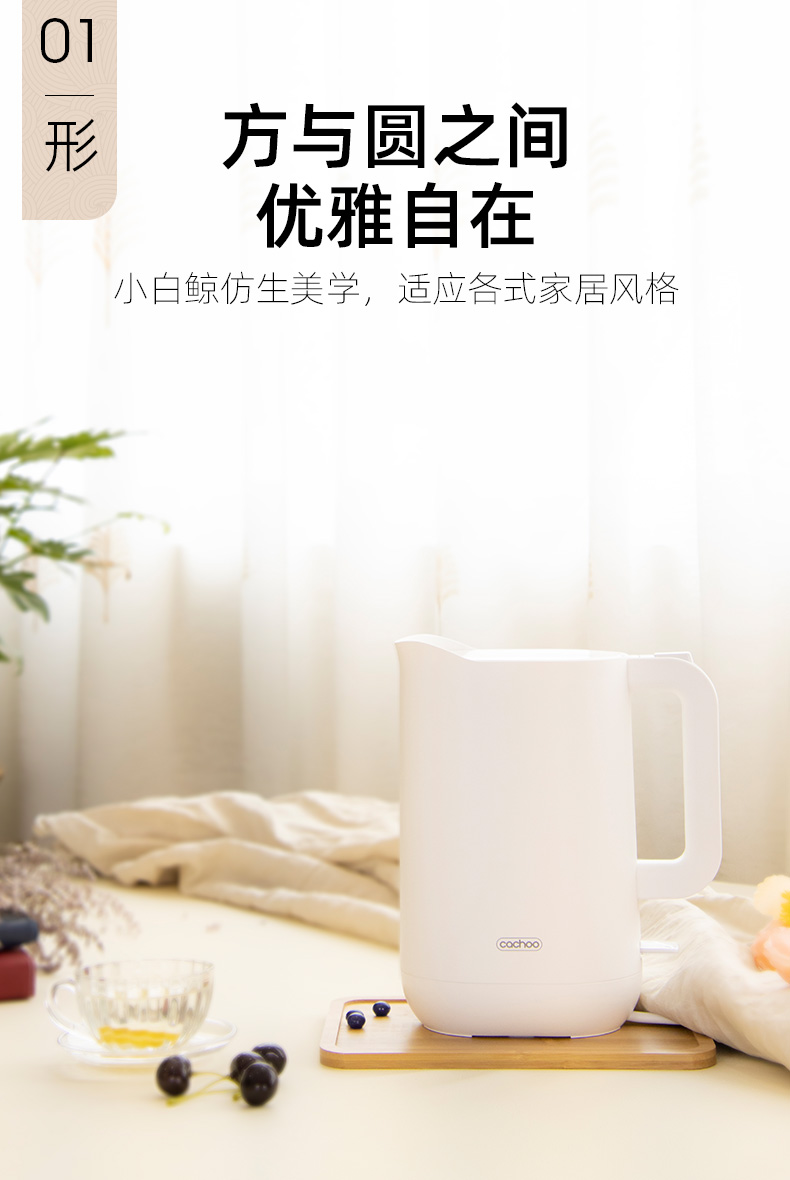 卡丘电热水壶轻音家用热水壶烧水壶双层防烫自动断电便携烧水壶