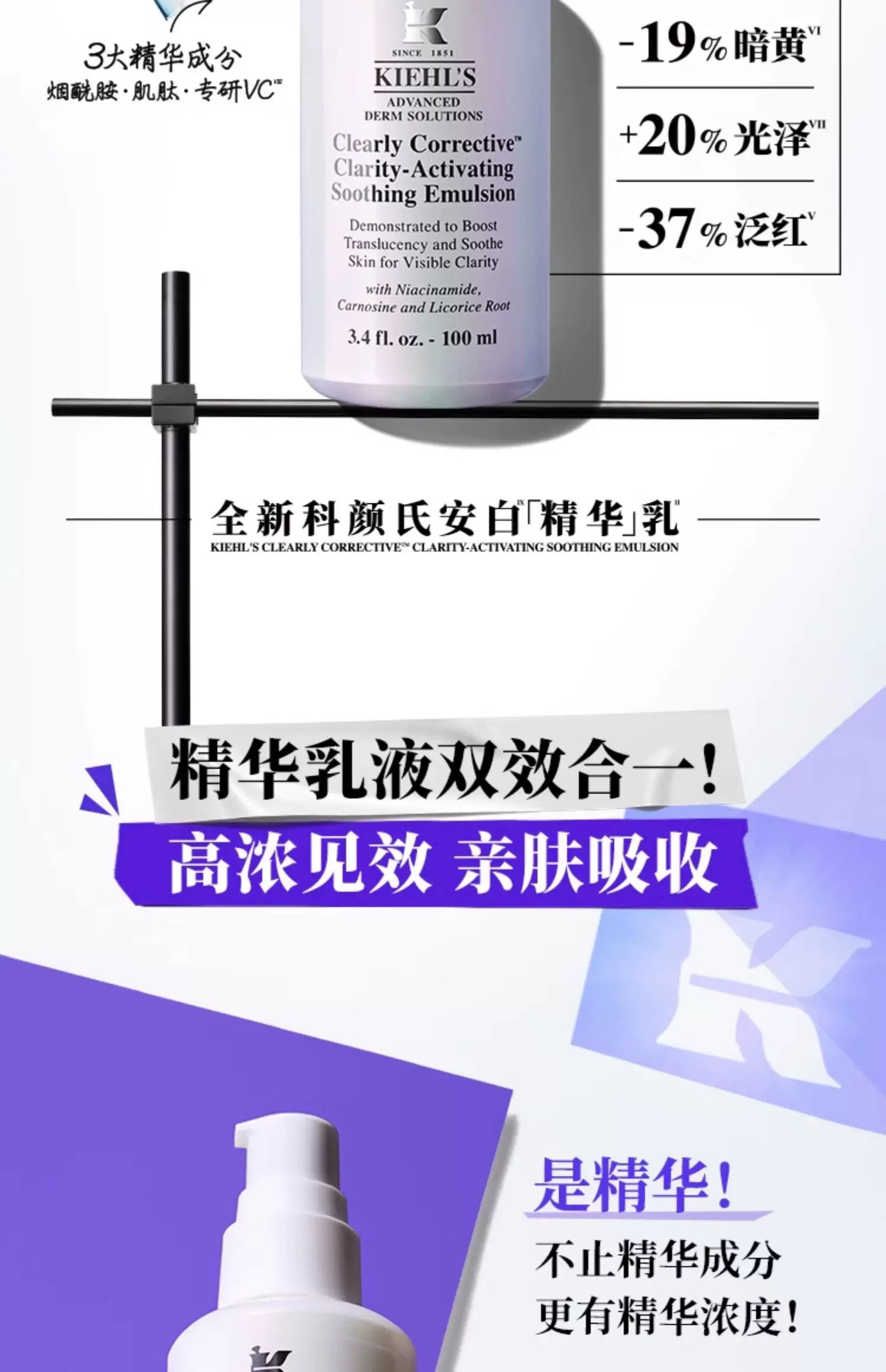 美国 Kiehl's科颜氏 安白精华乳液 100ml