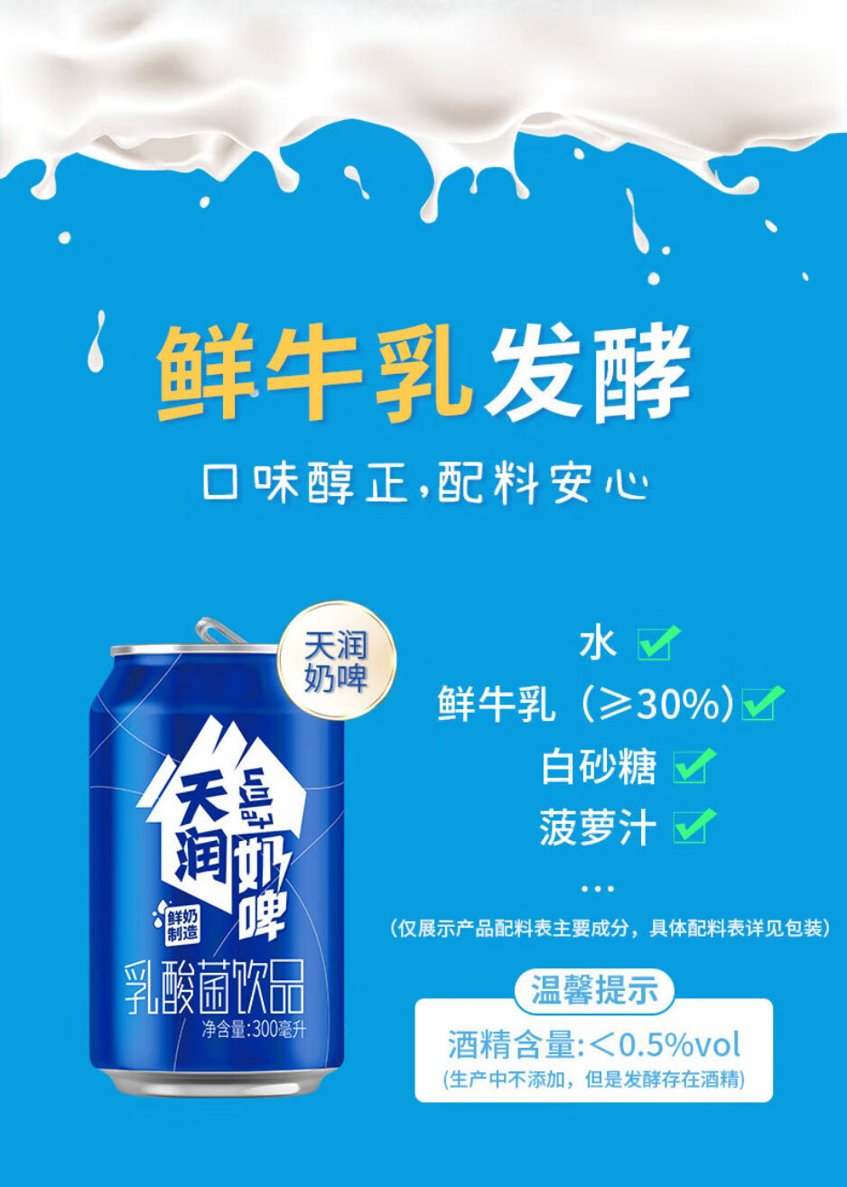 【新疆军垦】【天润】奶啤 300ml*12罐
