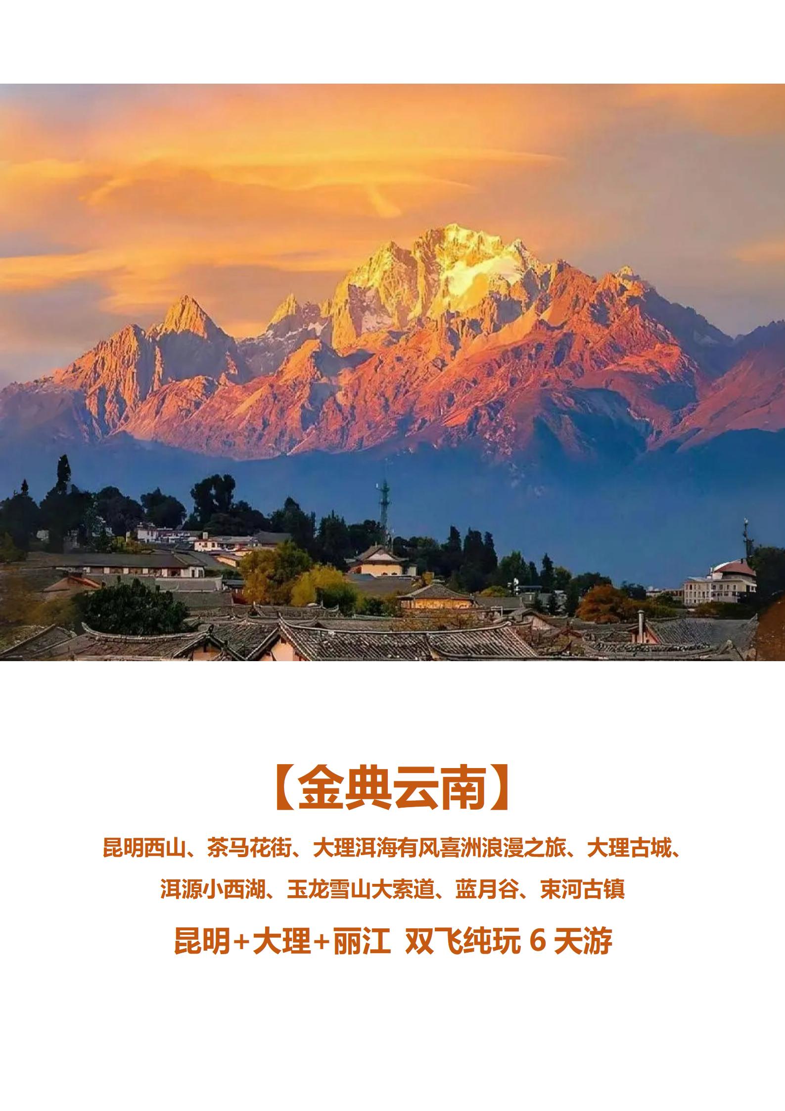 【金典云南】昆明+大理+丽江 双飞纯玩6天游