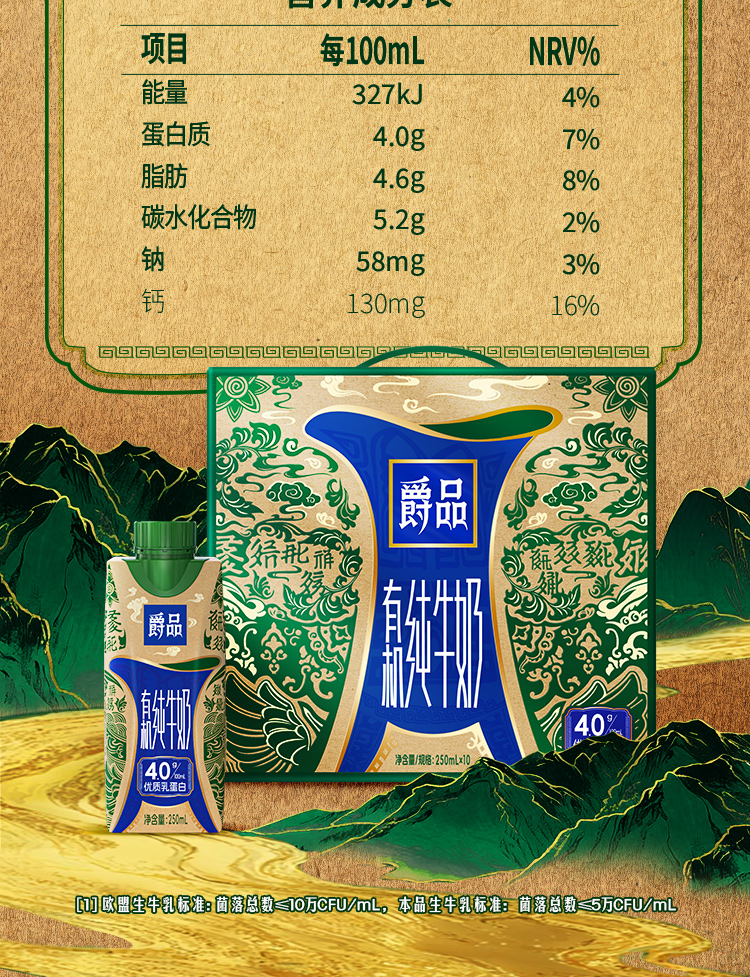 爵品有机纯牛奶250ml×10盒