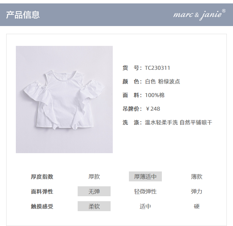 马克珍妮夏装新款 女童北欧风花边袖纯棉小衫儿童衬衫230311