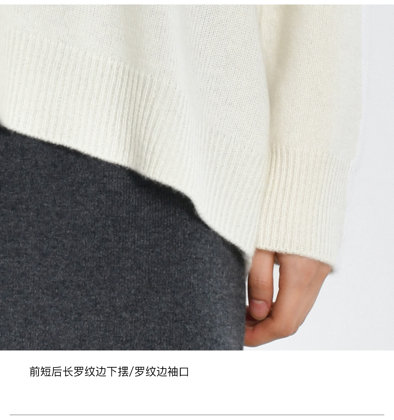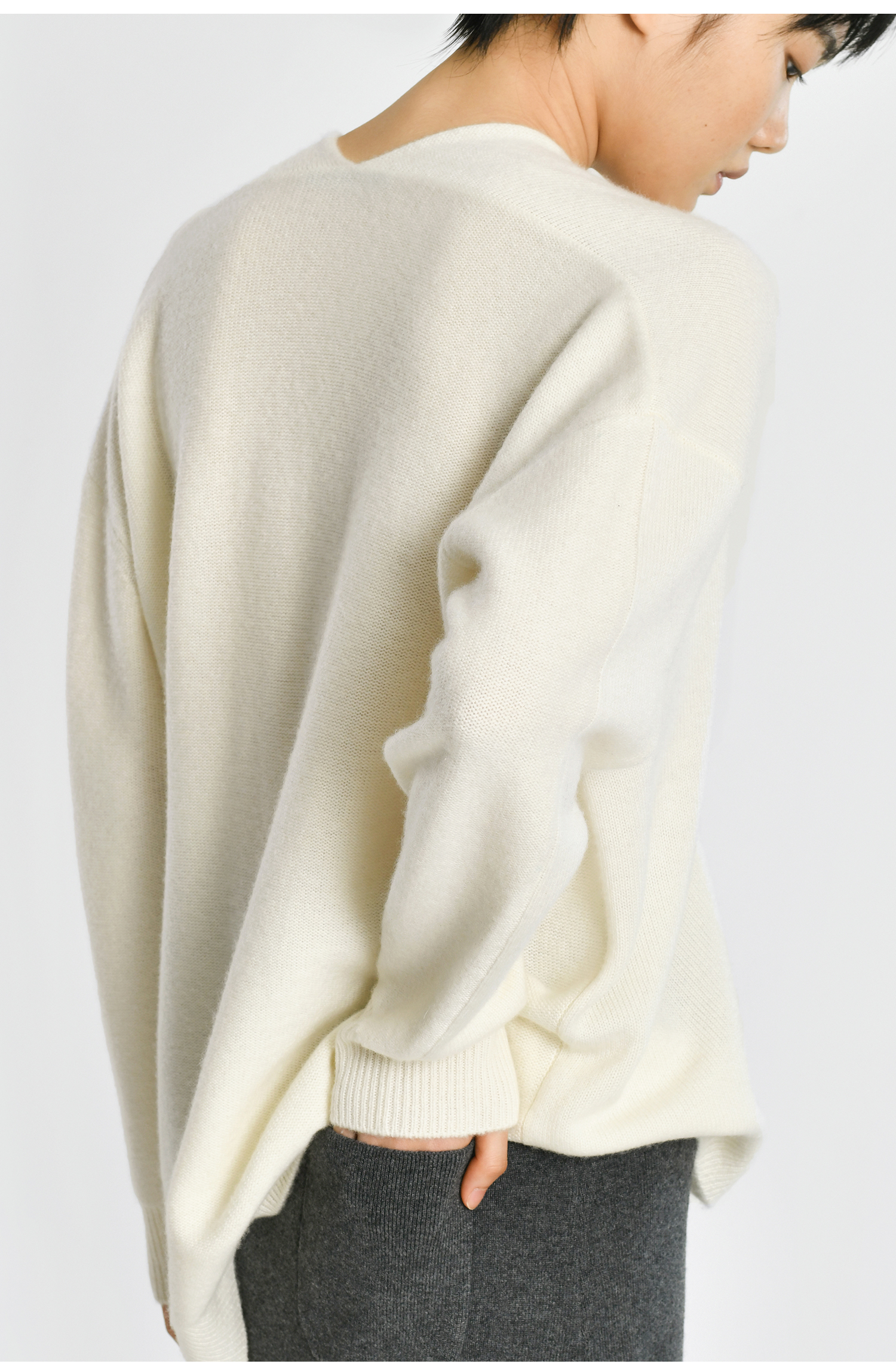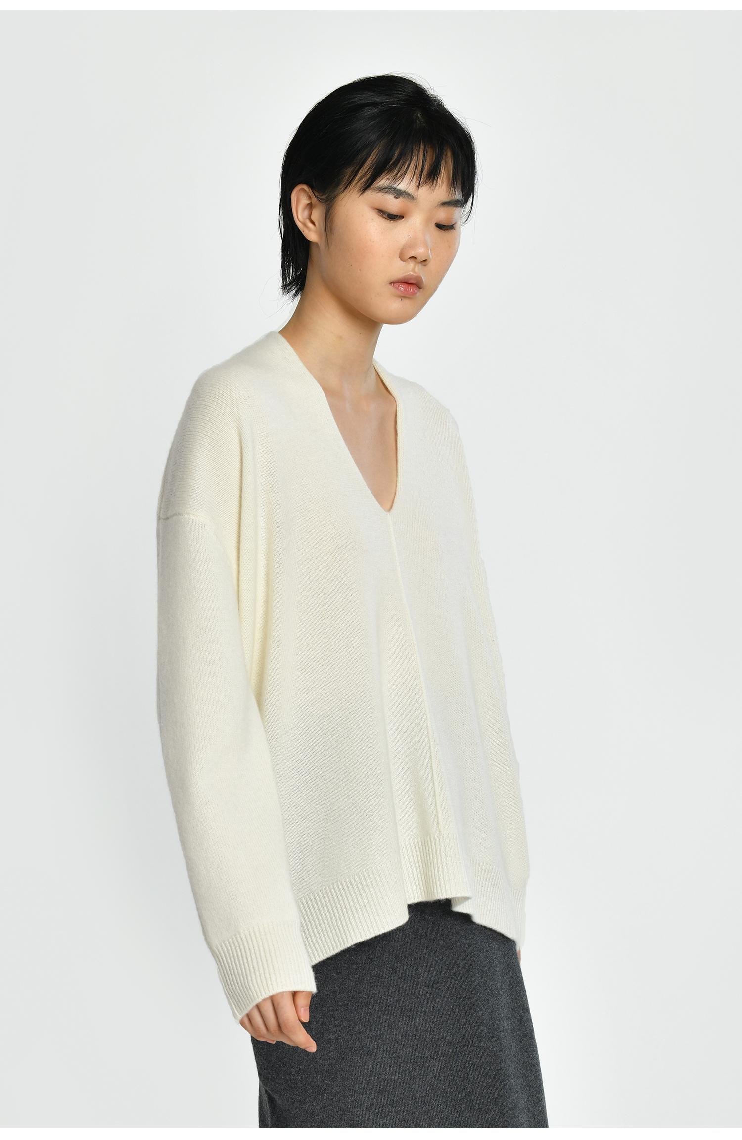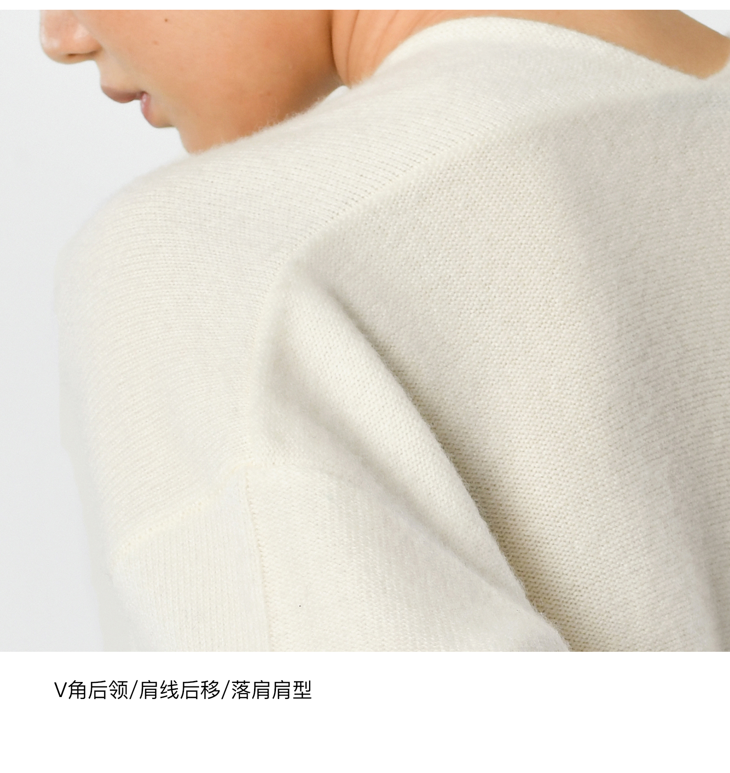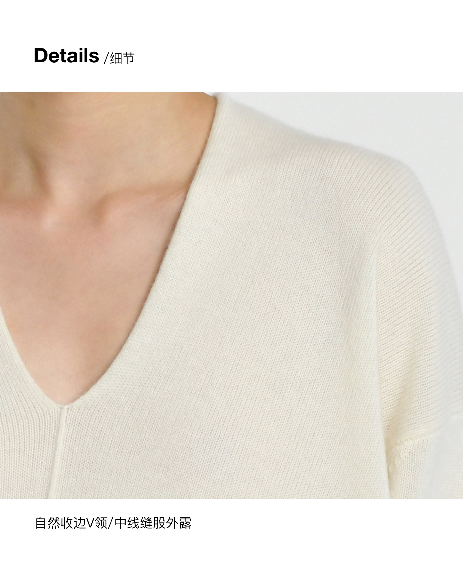 322工房纯喀什米尔羊毛衫女新款秋冬季长袖V领套头简约米白色针织打底衫