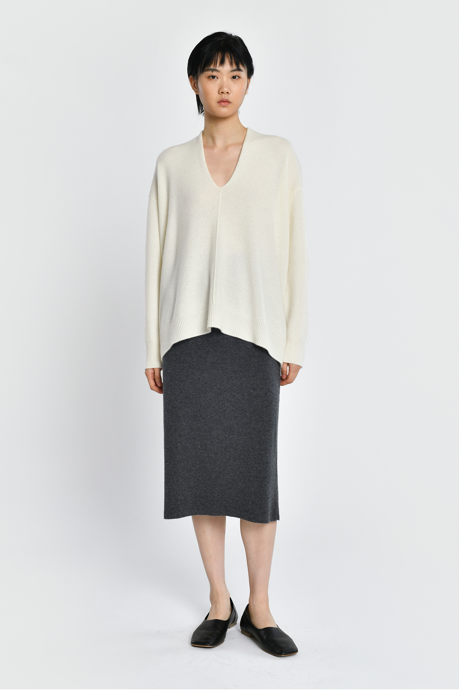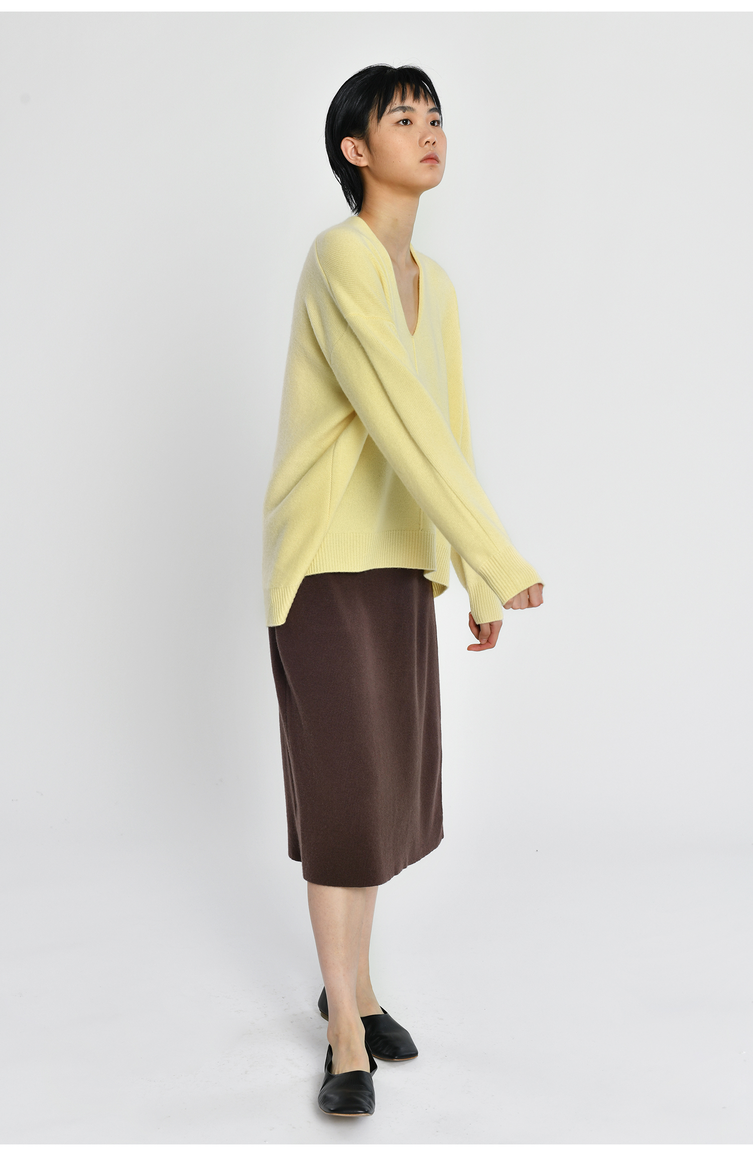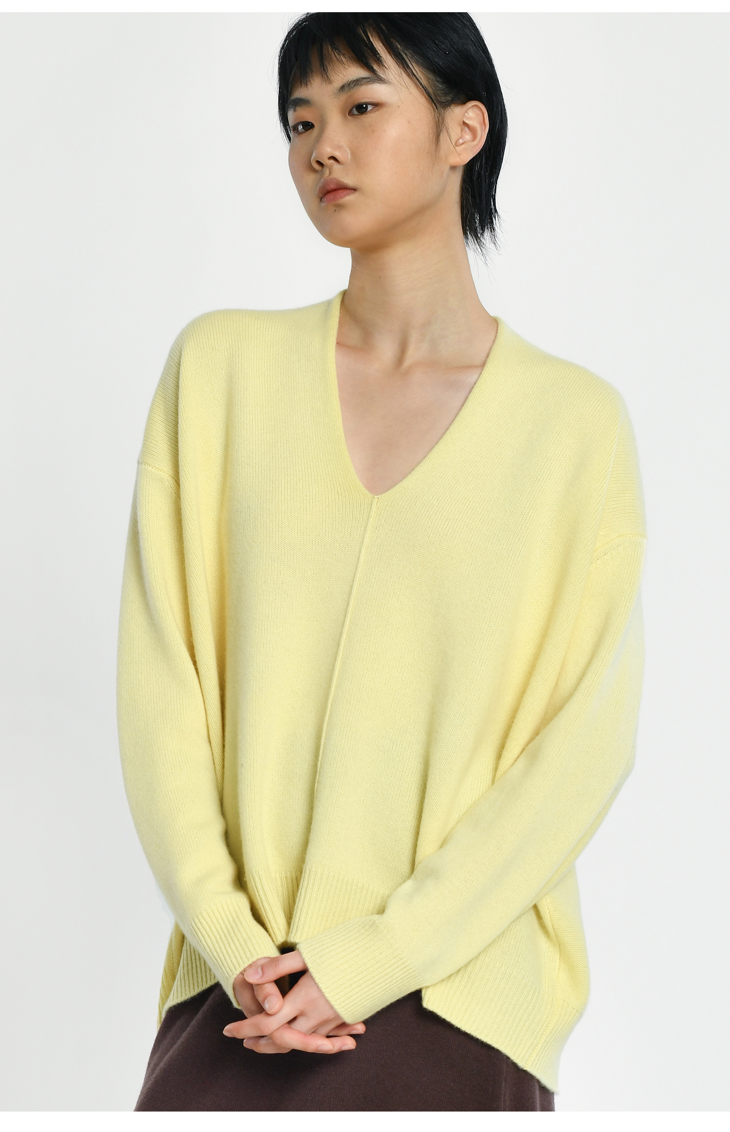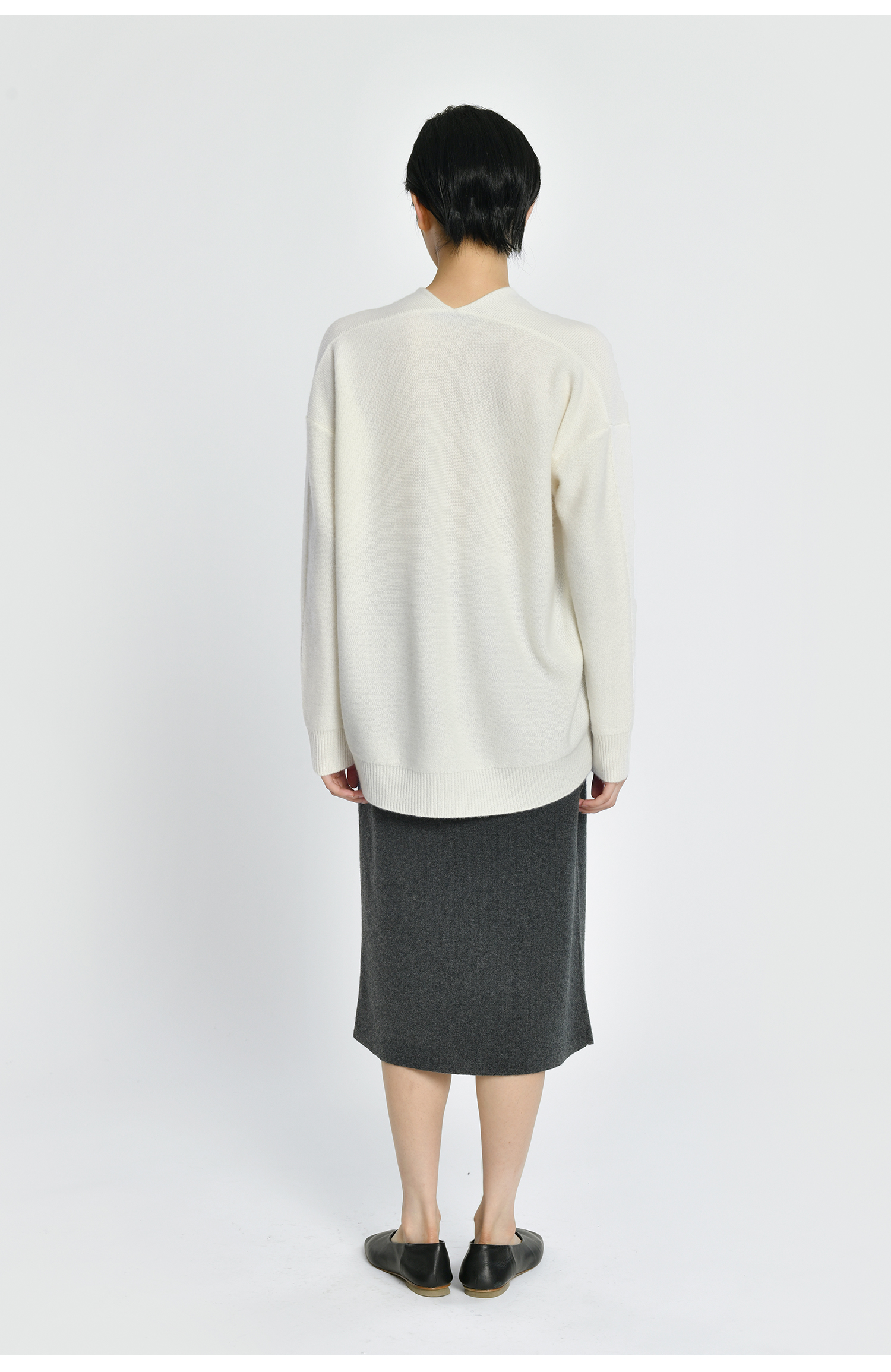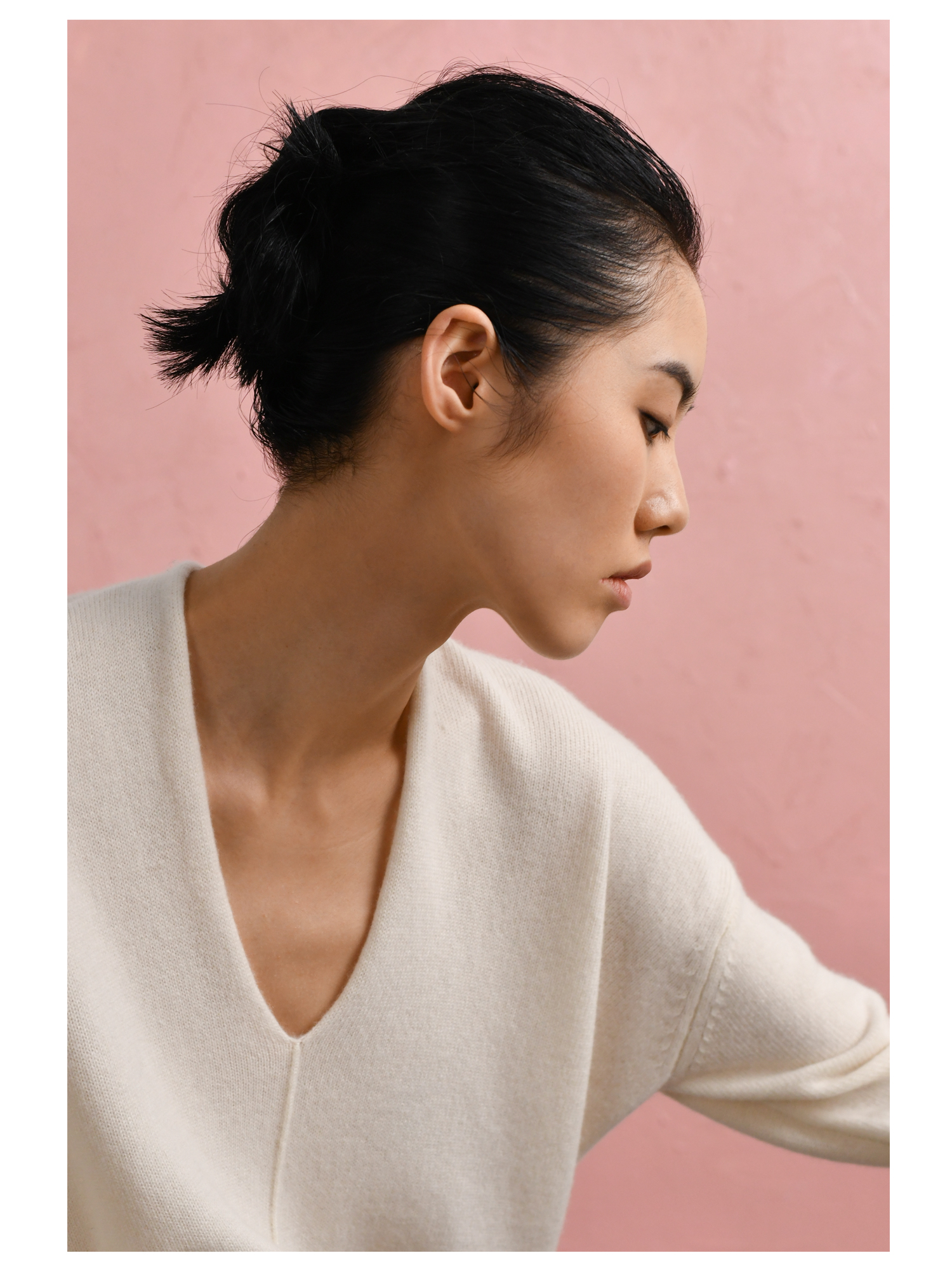 322工房纯喀什米尔羊毛衫女新款秋冬季长袖V领套头简约米白色针织打底衫