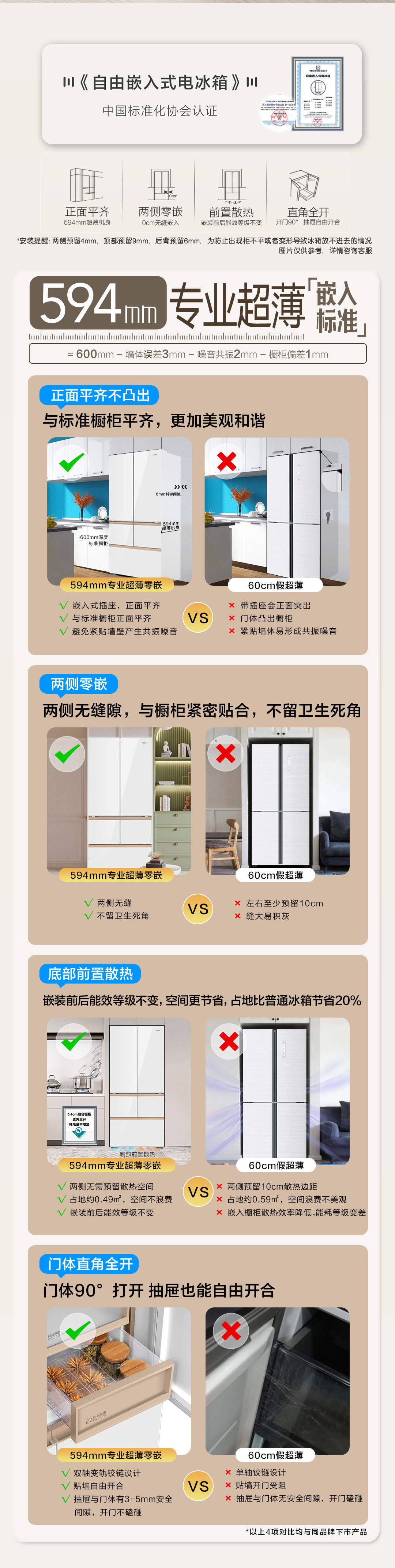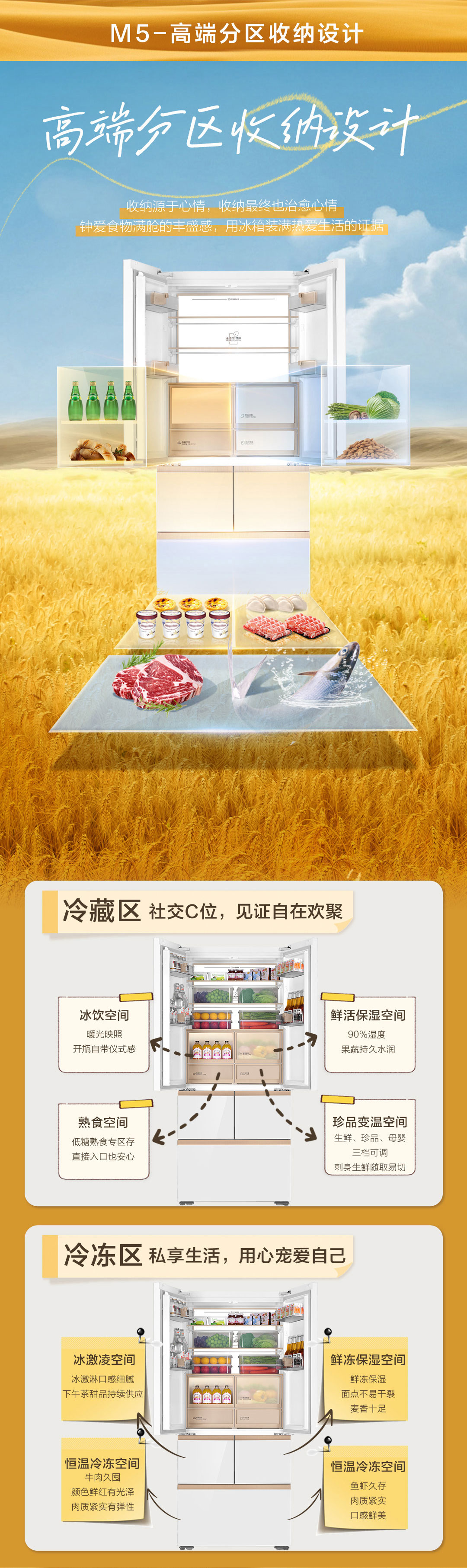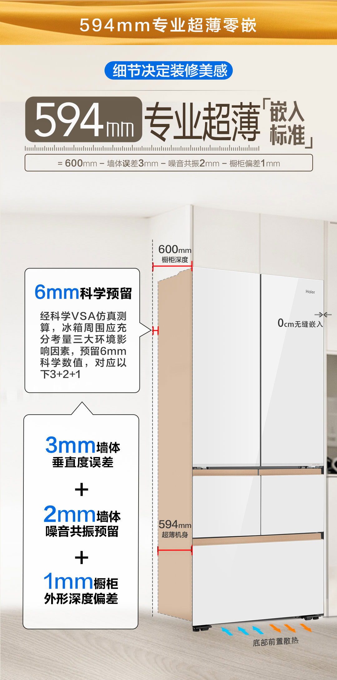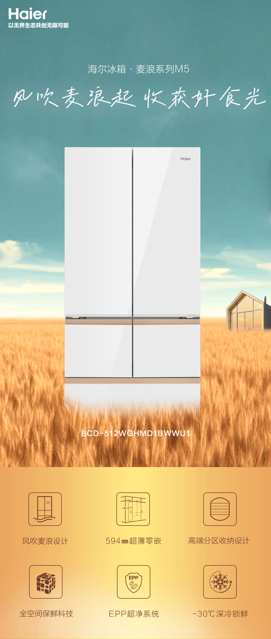 海尔(Haier)(202870)512升麦浪系列M5全空间保鲜594mm专业超薄零嵌入式多门家用电冰箱一级能效BCD-512WGHMD1BWLU1