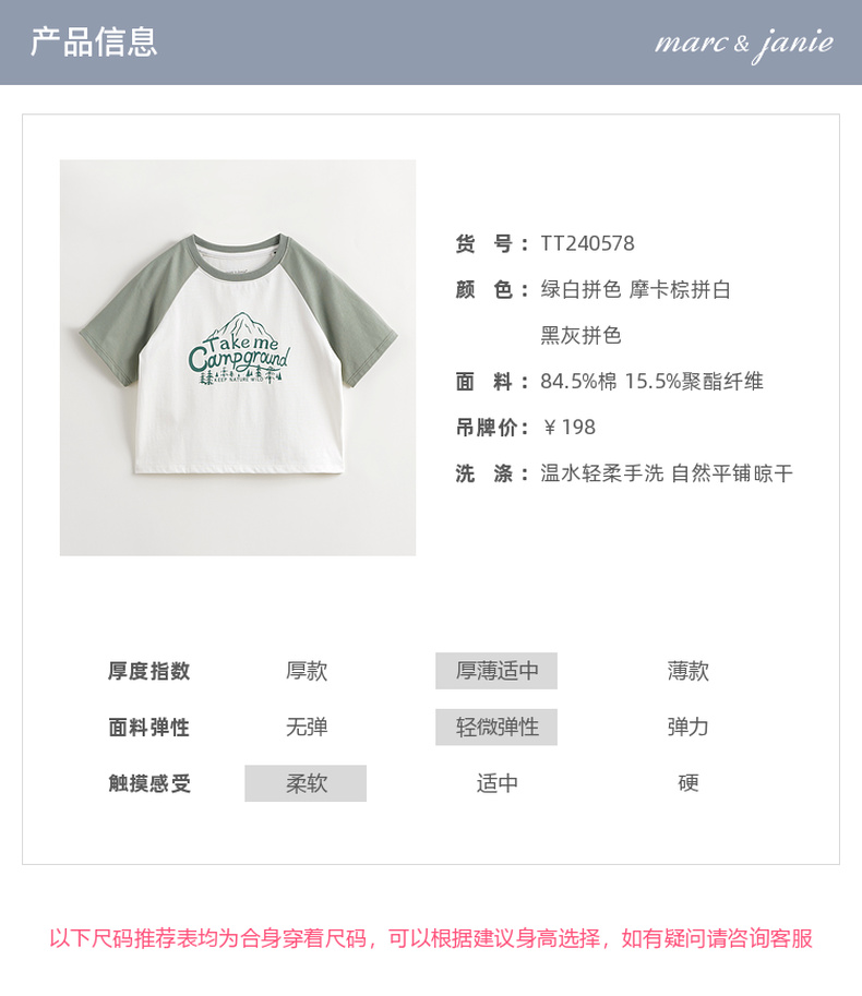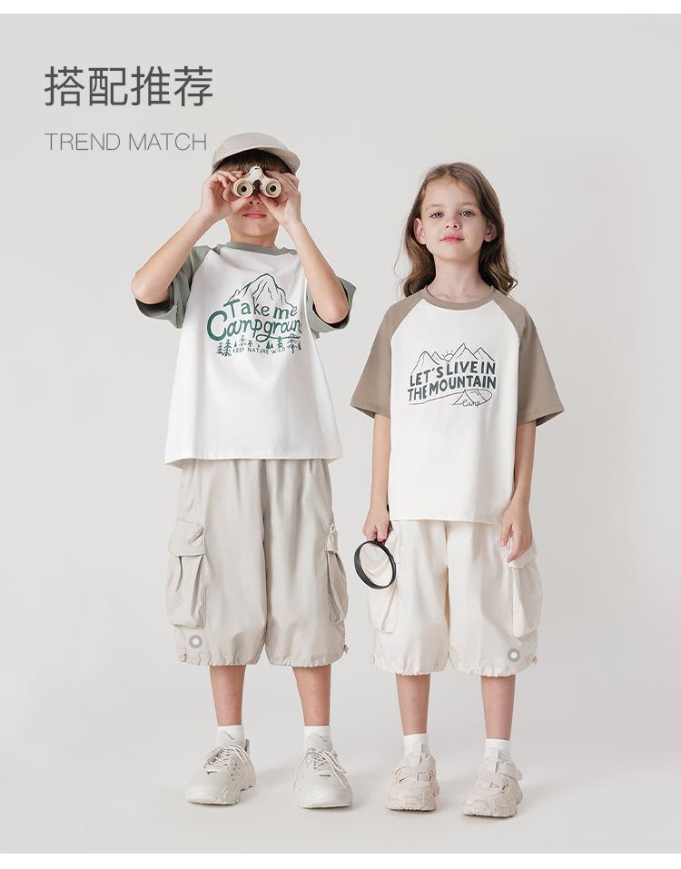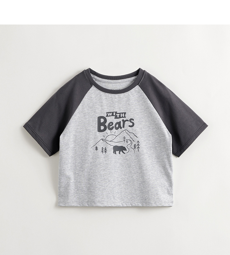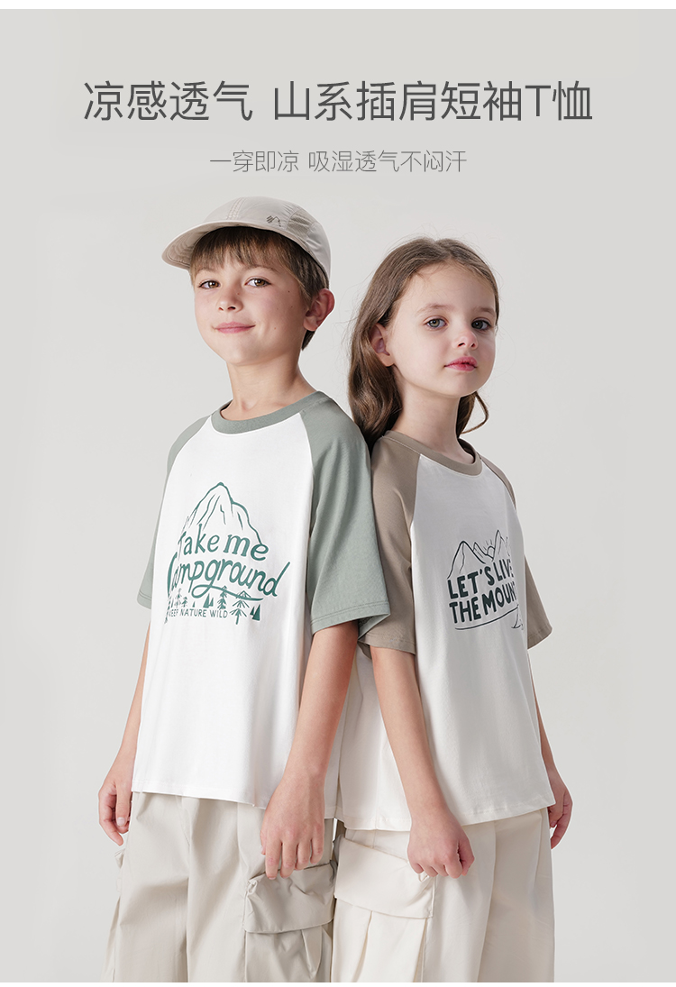[凉感透气]马克珍妮男童山系撞色插肩短袖T恤上衣夏装新款240578
