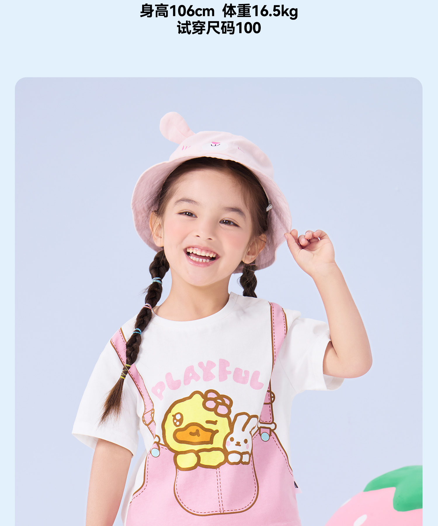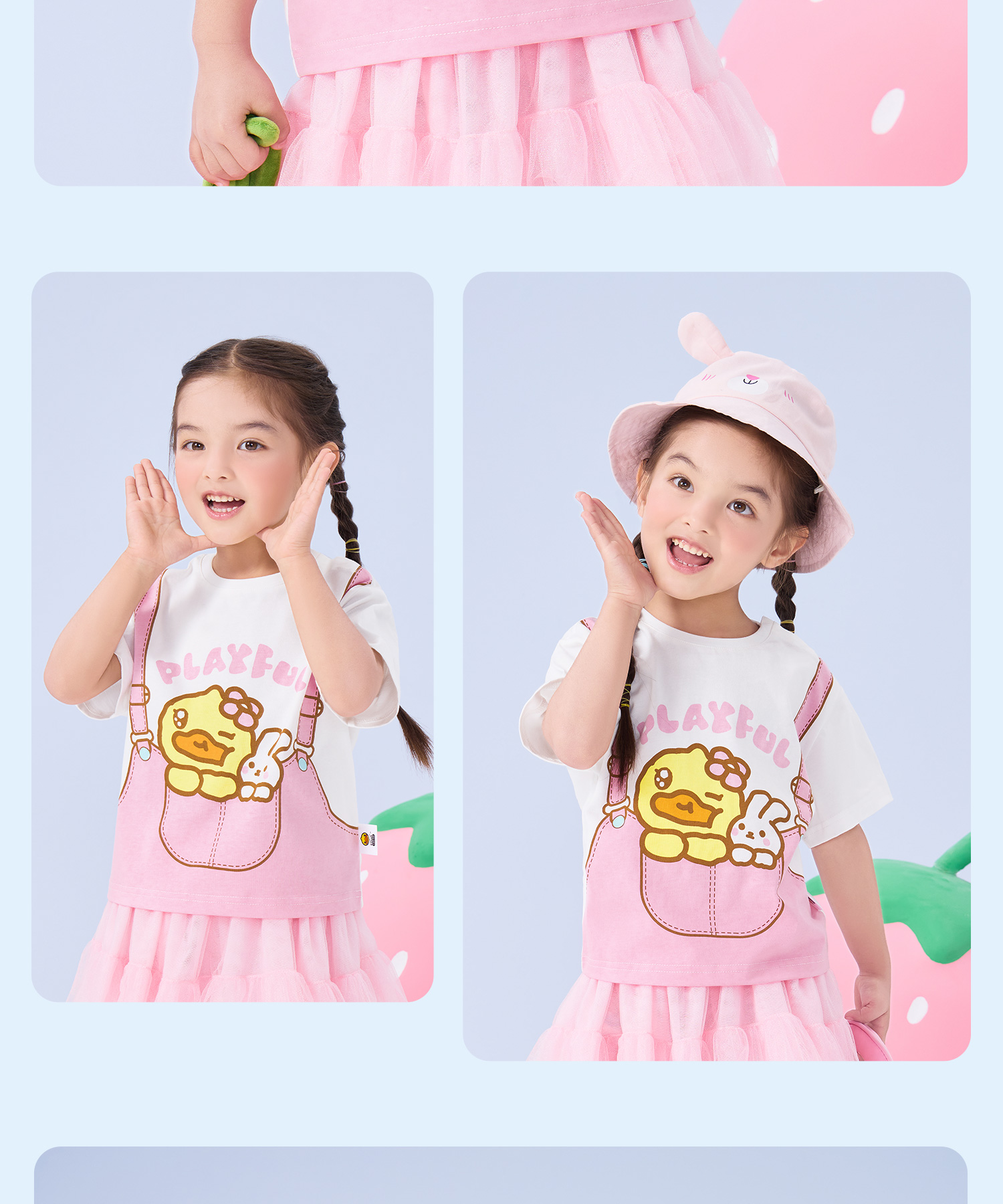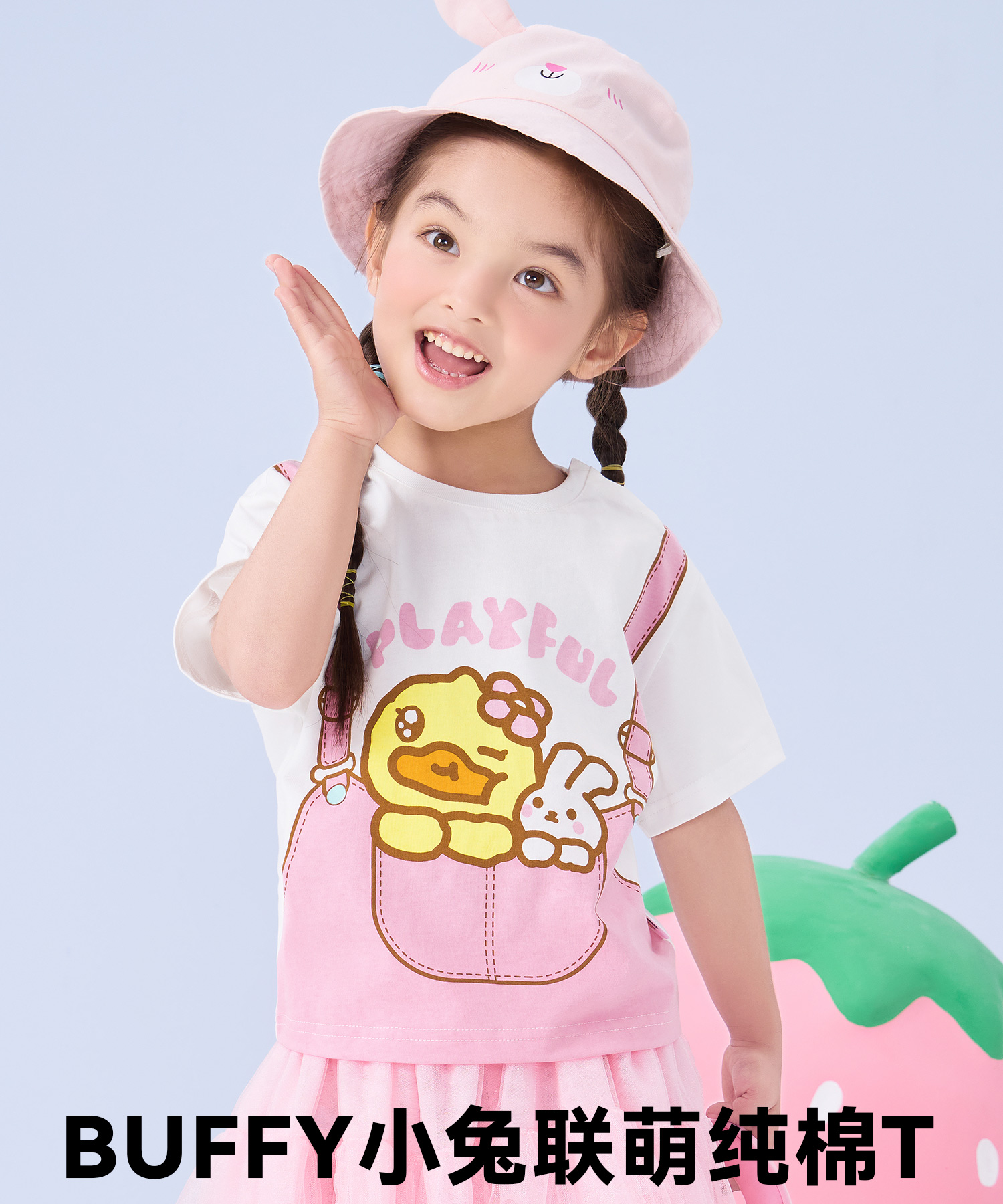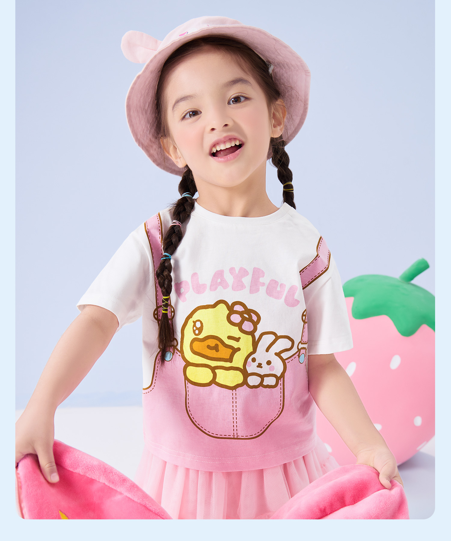bduck小黄鸭童装夏季女童短袖T恤宝宝上衣儿童夏装纯棉半袖上衣薄90-130 FF2601068