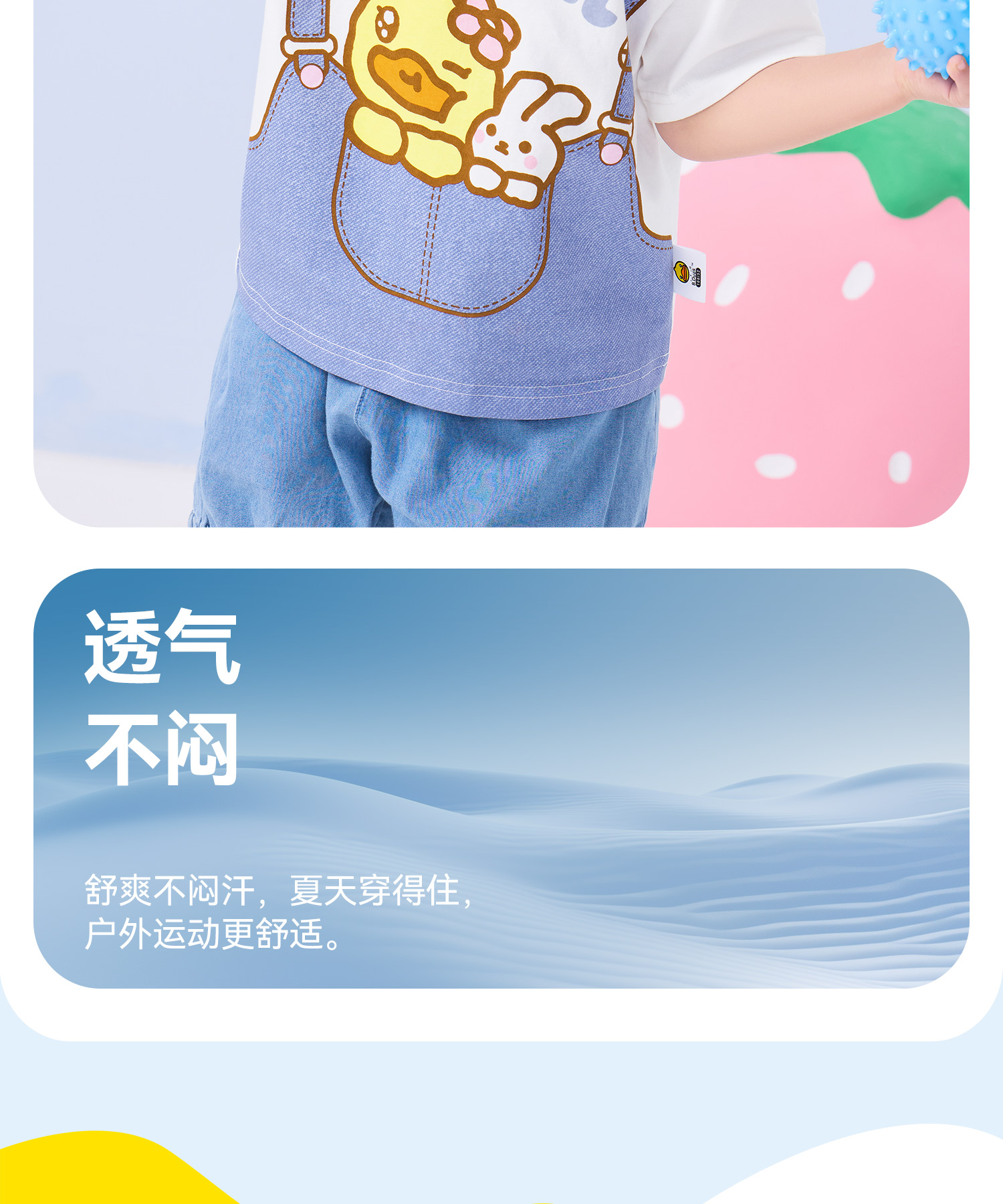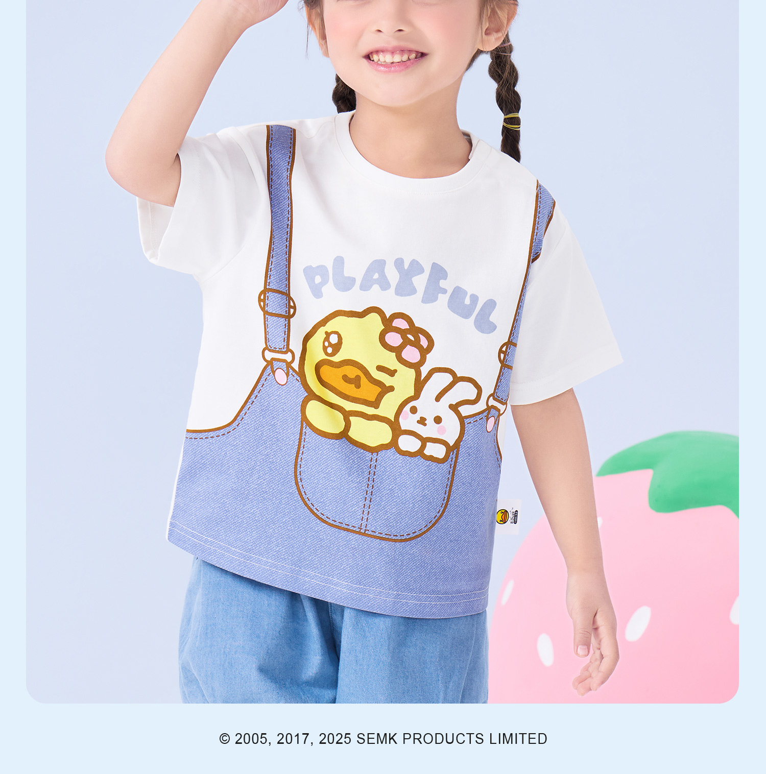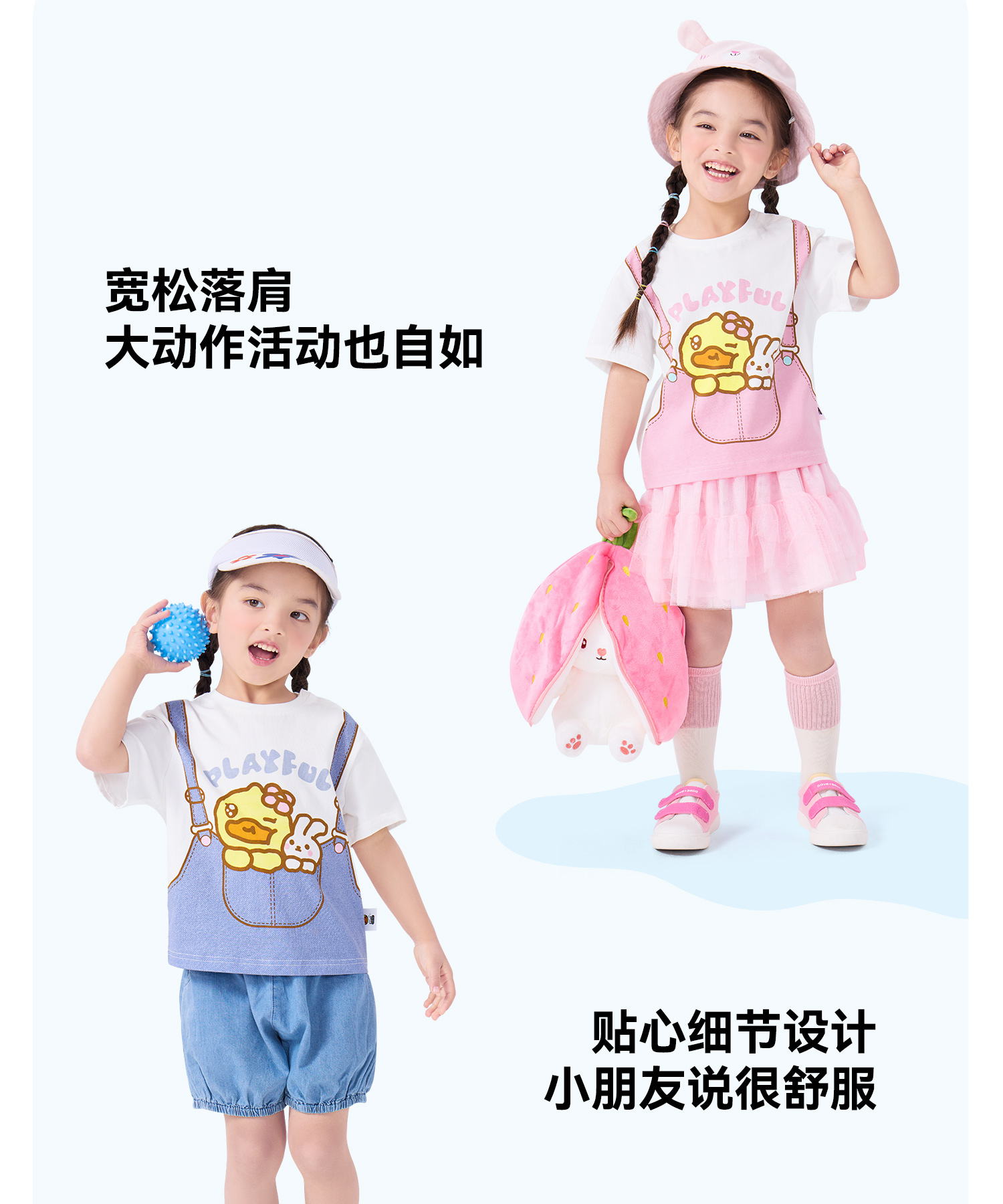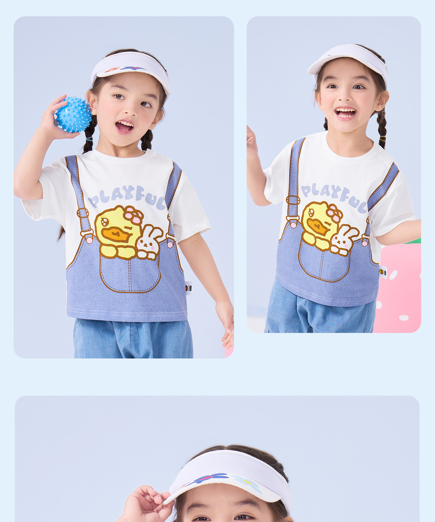 bduck小黄鸭童装夏季女童短袖T恤宝宝上衣儿童夏装纯棉半袖上衣薄90-130 FF2601068