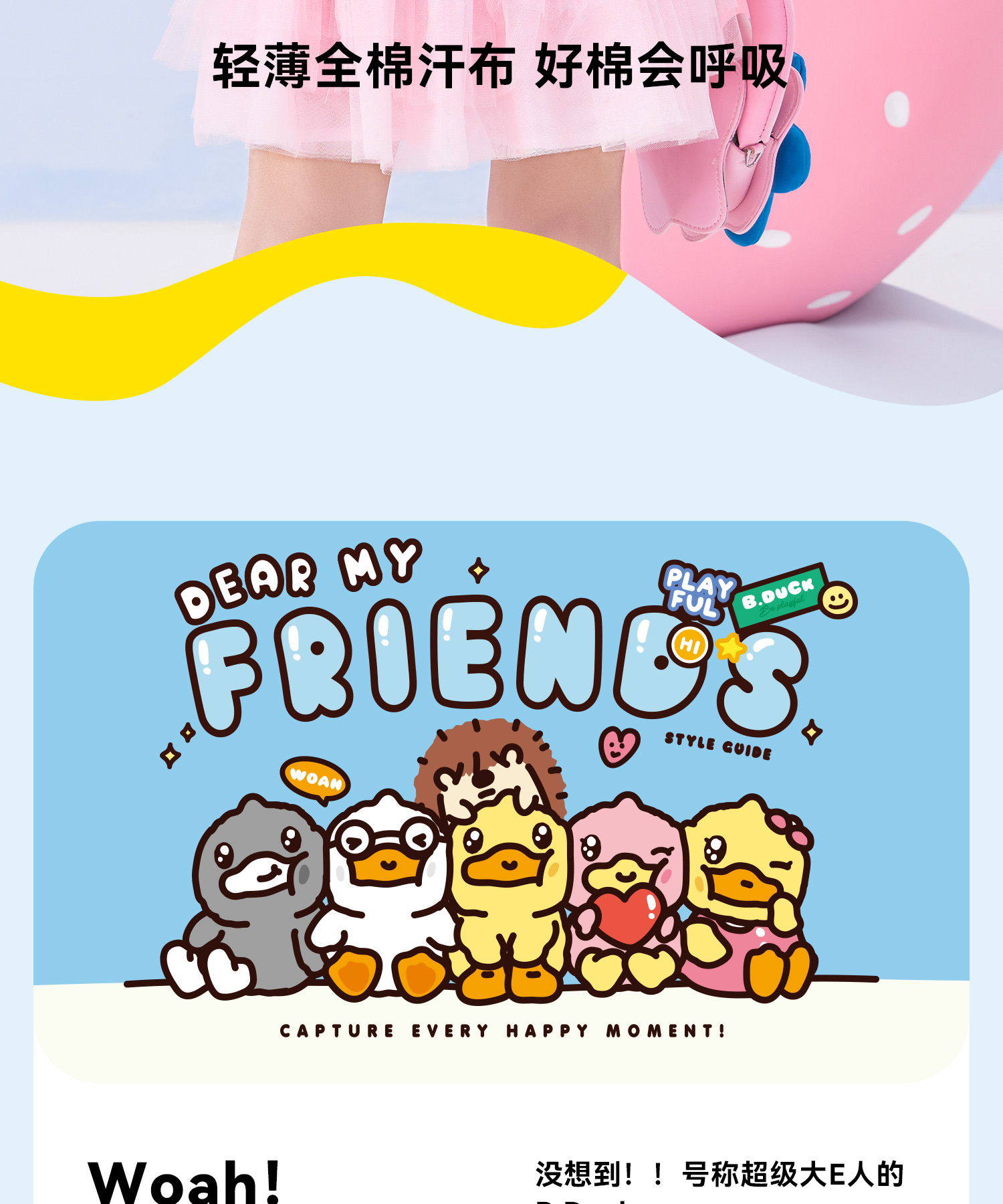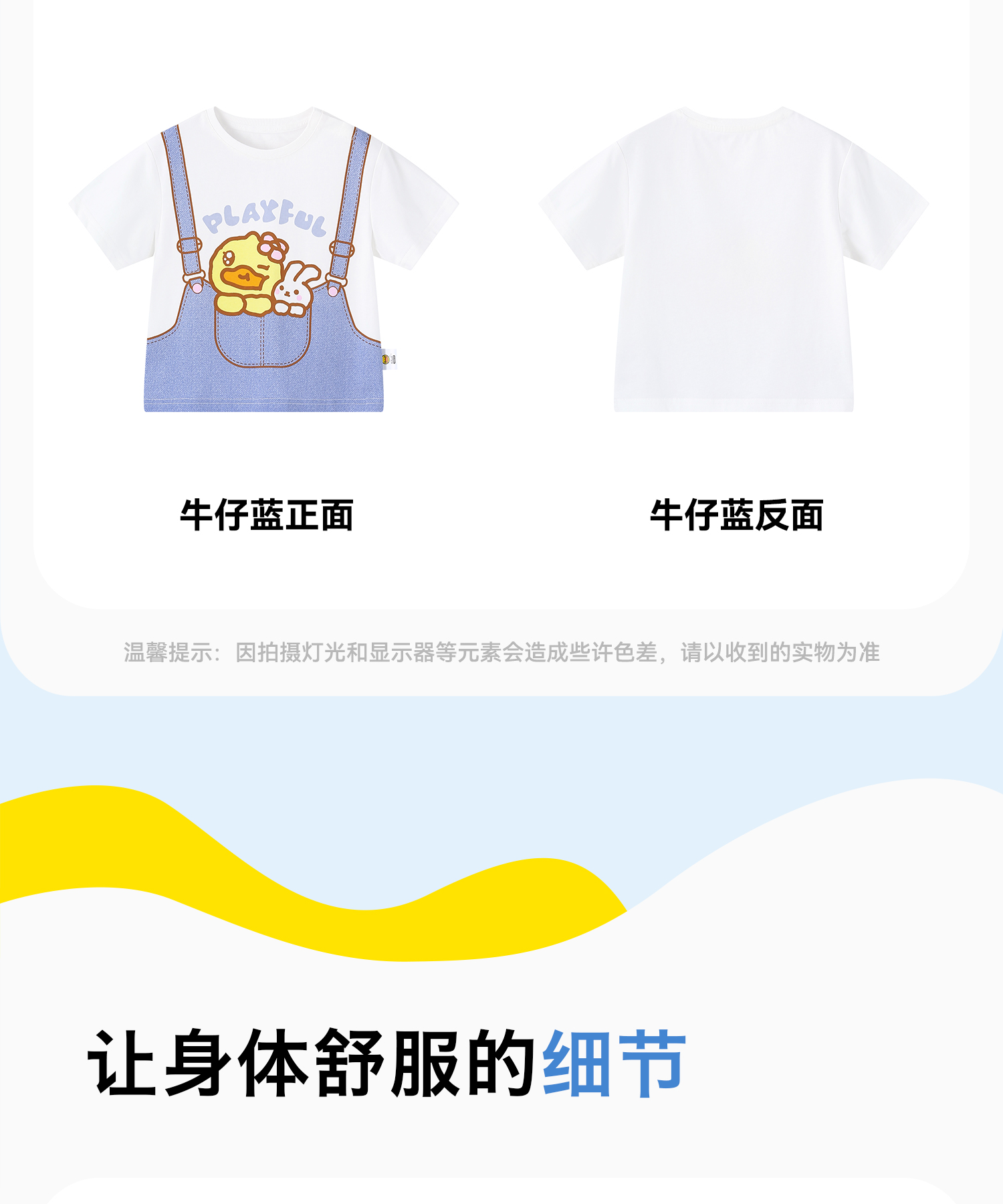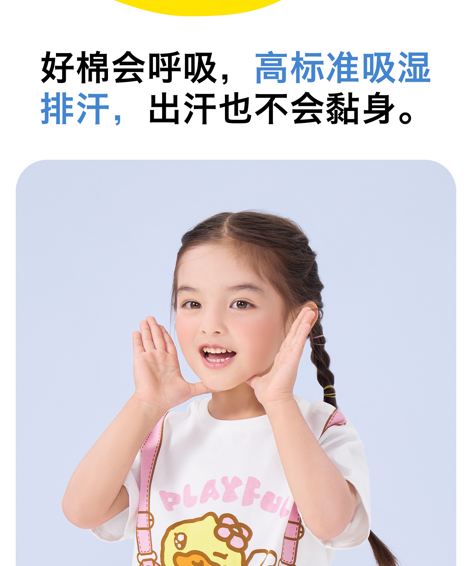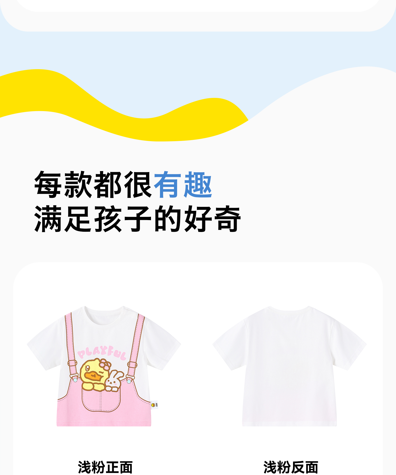 bduck小黄鸭童装夏季女童短袖T恤宝宝上衣儿童夏装纯棉半袖上衣薄90-130 FF2601068