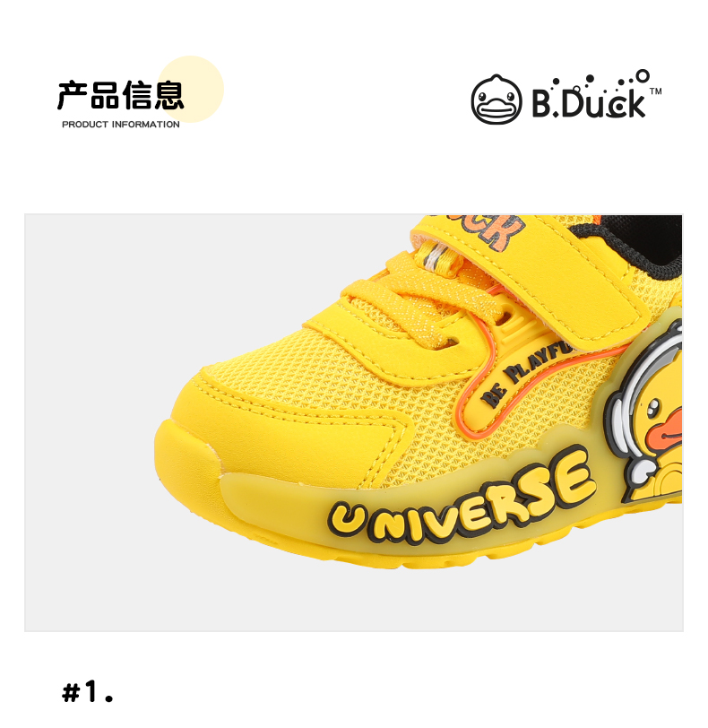 B.Duck小黄鸭童鞋男童运动鞋夏季儿童鞋子透气网面宝宝鞋24-30 B1686946