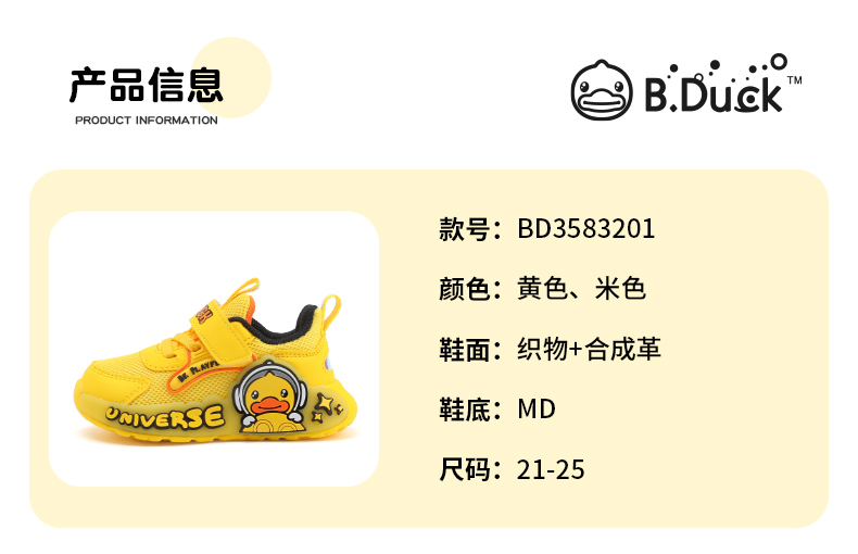 B.Duck小黄鸭童鞋春春秋儿童休闲鞋21-25 BD3583201