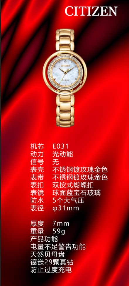 西铁城天然贝母盘29颗真钻光动能女表EM0902-53D