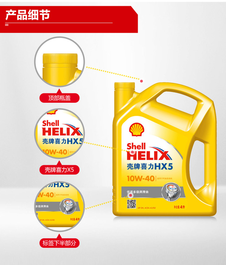 壳牌机油黄喜力HX5 4升
