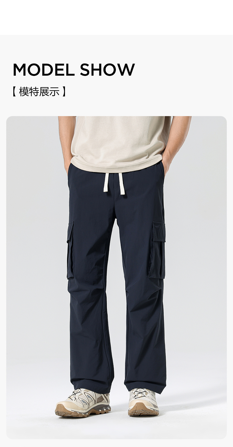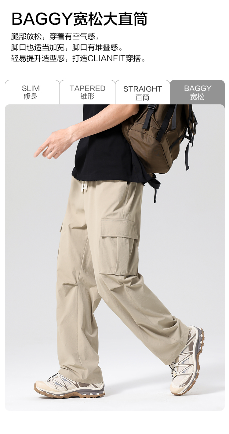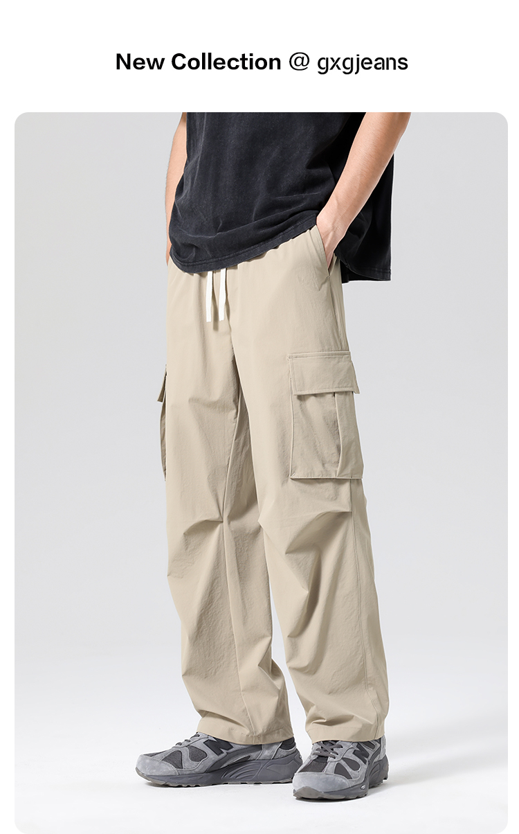 gxgjeans男装26夏款登山户外运动工装裤抽绳系带纯色男士休闲裤宽松阔腿裤K&C