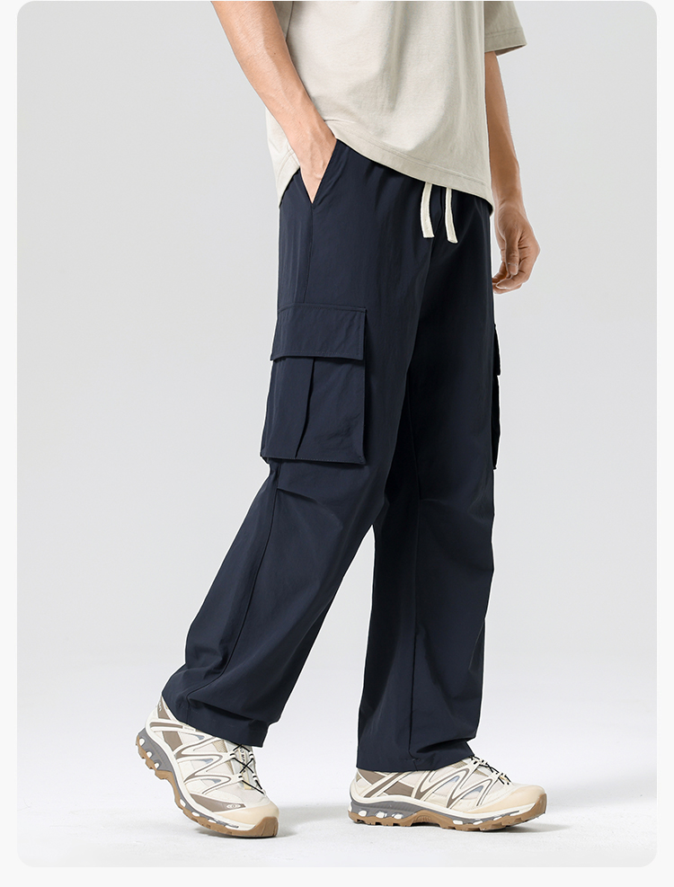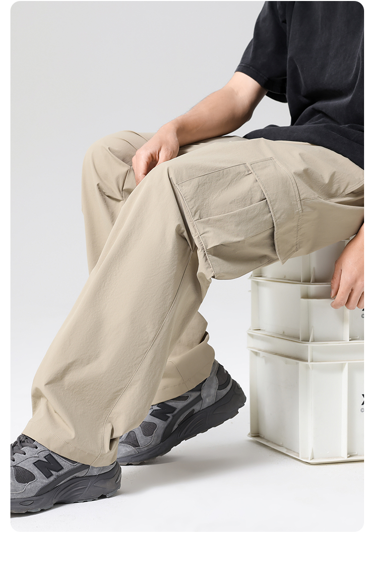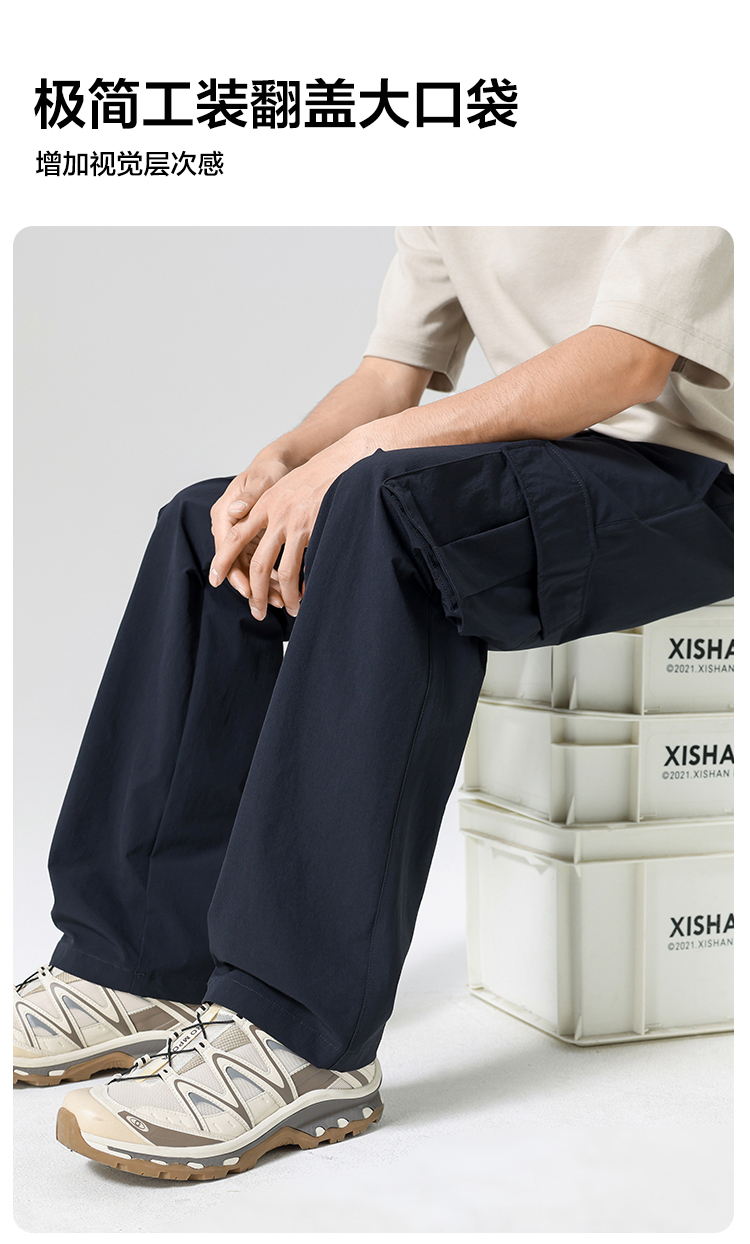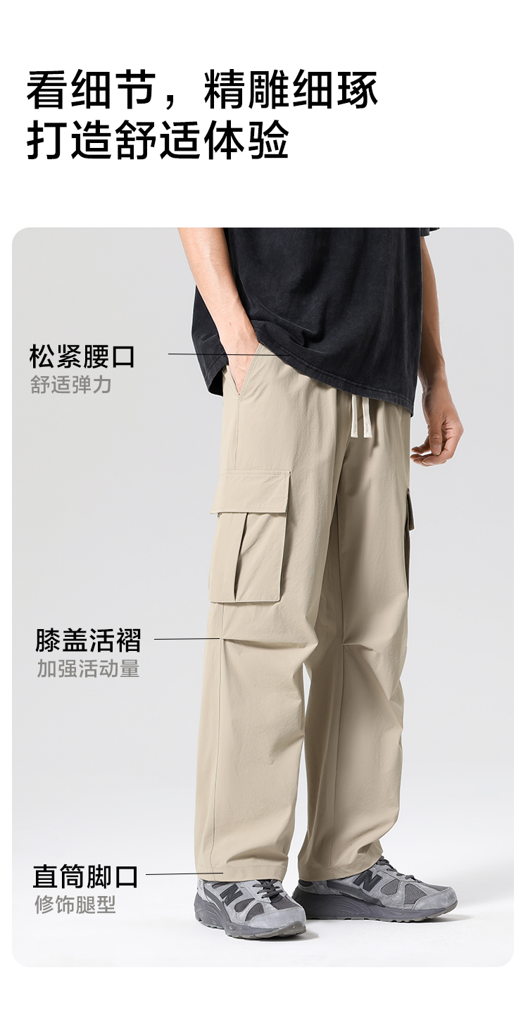gxgjeans男装26夏款登山户外运动工装裤抽绳系带纯色男士休闲裤宽松阔腿裤K&C