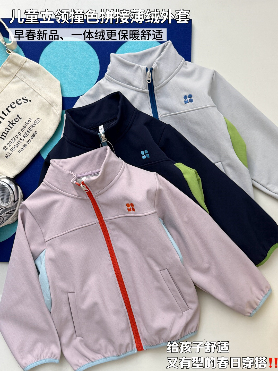 🌿 早春必备儿童薄绒外套撞色拼接设计,简约又耐看