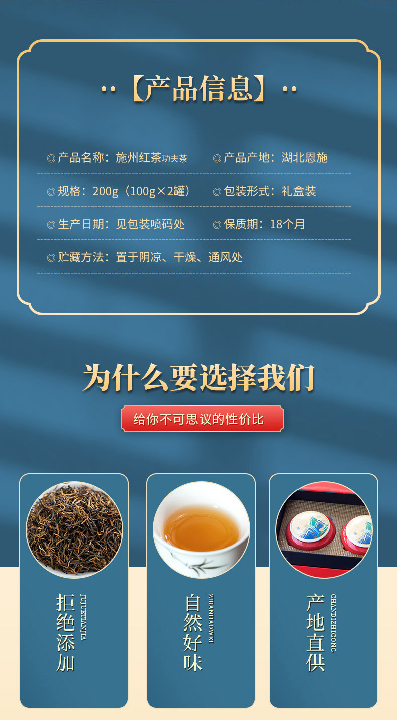 【严选】施州红茶礼盒 湖北恩施高山种植新茶叶功夫红茶100g袋装 瓷罐装200g/盒(厂家直发)